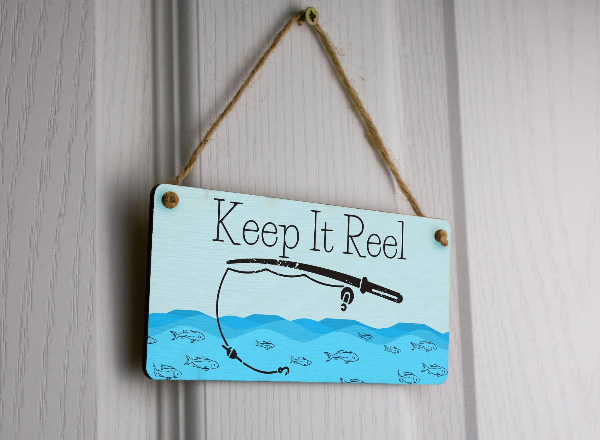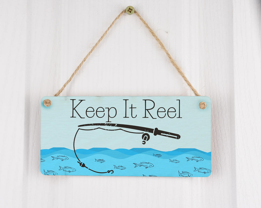 Introduce a touch of nature into your home decor with this Reel-In the Perfect Catch Plywood Wall Hanging Sign. Made from high-quality plywood, this hanging sign features a vibrant fishing theme design in full color. It is the perfect gift for fishing enthusiasts, dads, and him. The sign reads 'Keep It Reel' and is sure to bring a smile to any fishing lover's face. Hang it on any wall to add a rustic and charming touch to your space. This fishing theme wall decor is a unique and personalized gift that will be cherished for years to come.