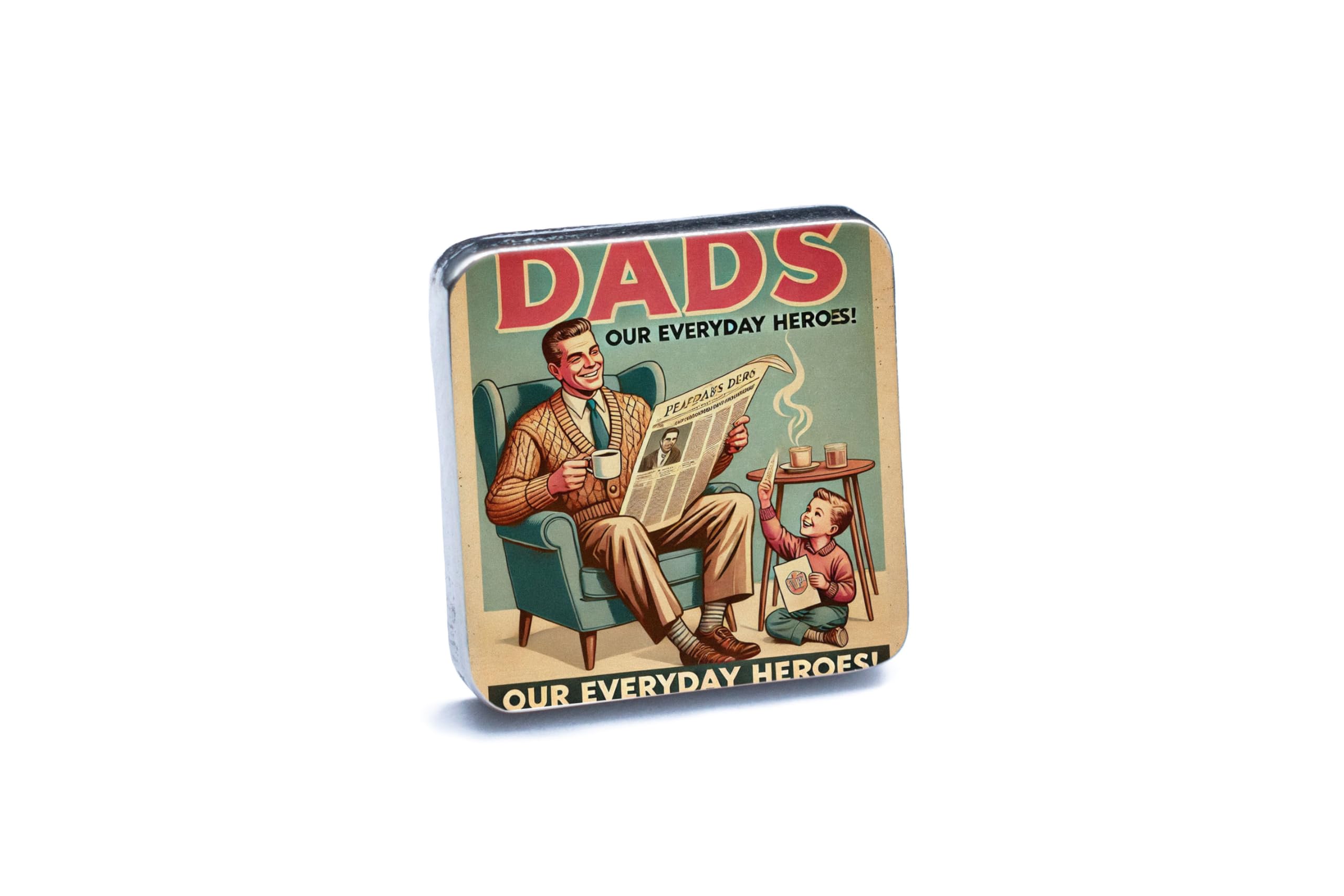 - Charming Retro Design: Features a vintage-style illustration with the message âDads, Our Everyday Heroes,â perfect for celebrating fathers.