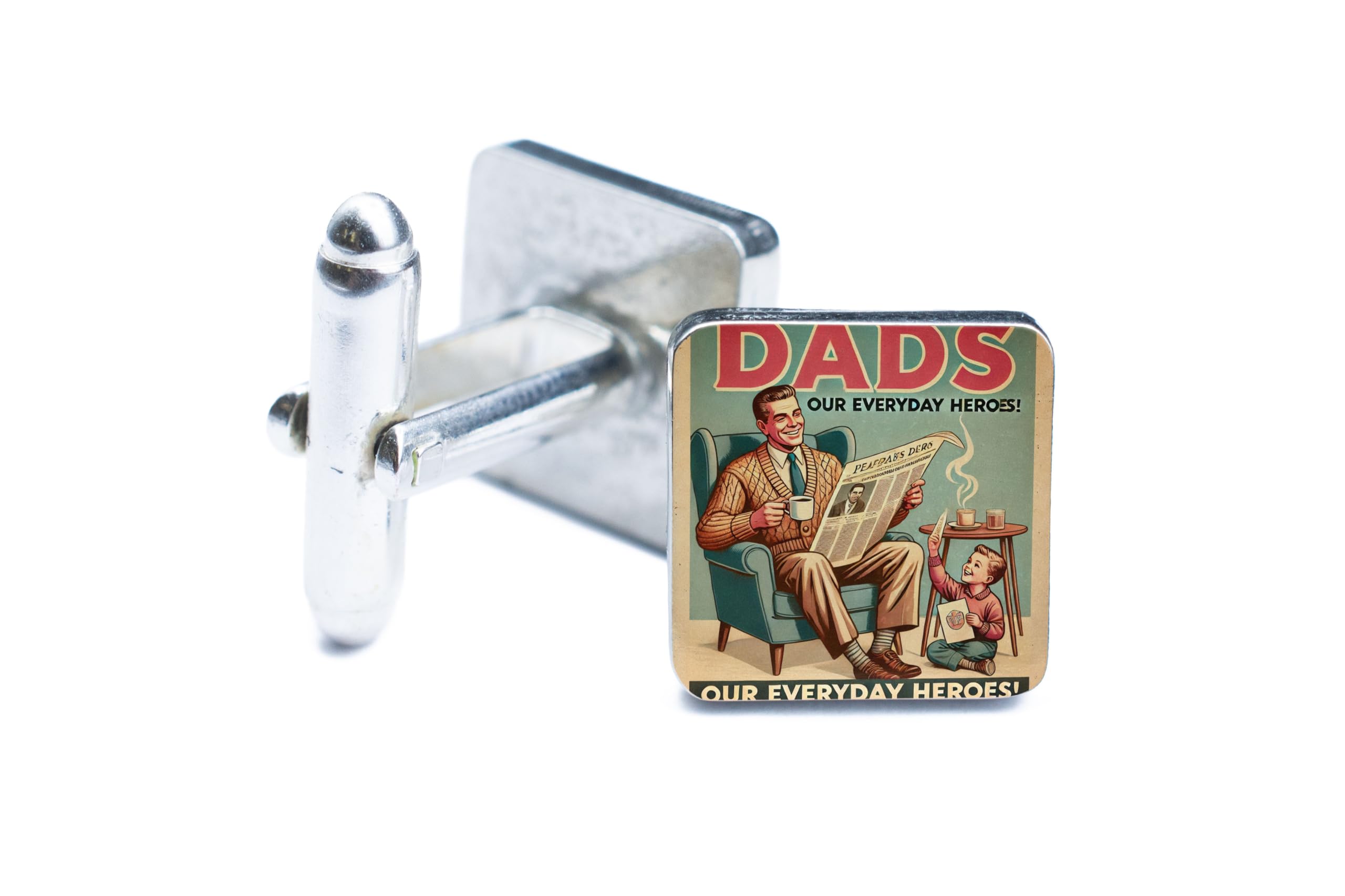 Celebrate the everyday hero in your life with these Retro Dad Cufflinks. Featuring a nostalgic vintage-style design and the heartfelt message ?Dads, Our Everyday Heroes,? these cufflinks are a perfect tribute to all the amazing fathers out there. Crafted with premium materials and a polished finish, these cufflinks are both durable and stylish, making them suitable for any occasion. Whether it?s a formal event or a casual outing, they add a unique and meaningful touch to your attire. Looking for the perfect gift? These cufflinks are a fantastic choice for Father?s Day, birthdays, or any moment you want to honor and appreciate your dad. Show your love and gratitude with these timeless and thoughtful cufflinks!