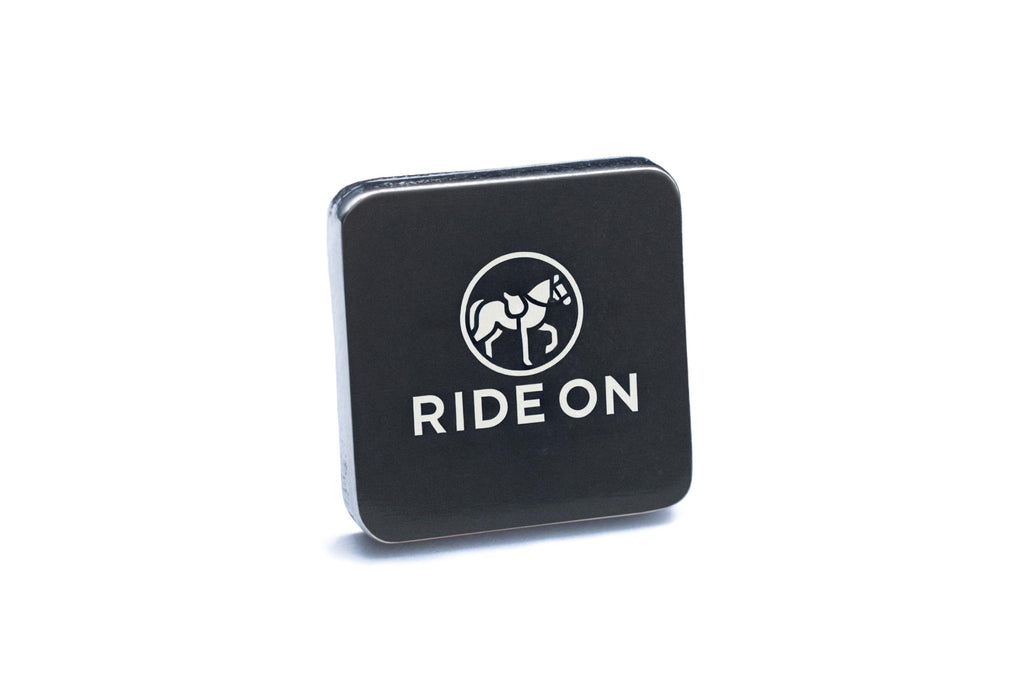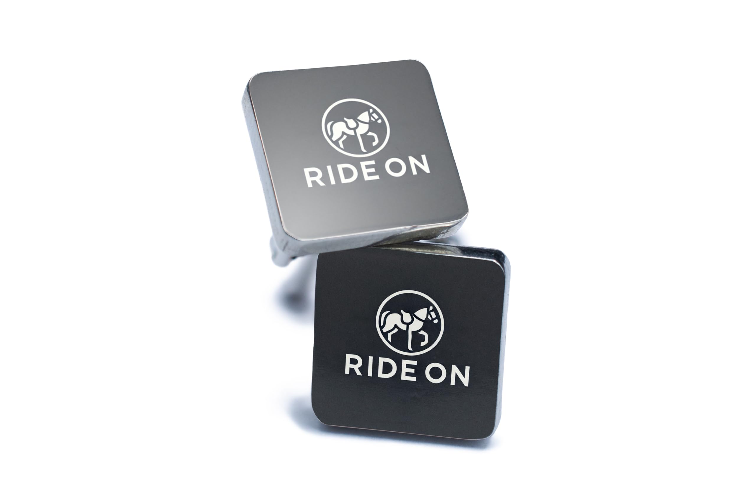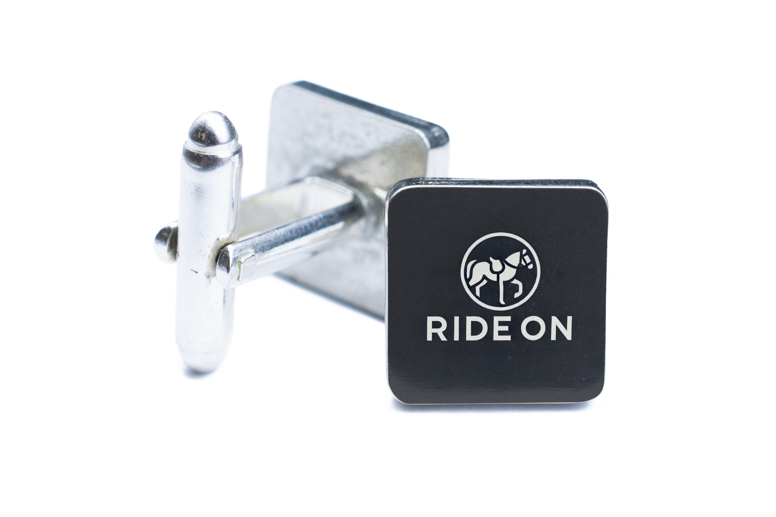- Minimalist cufflinks with the slogan 'Ride On'