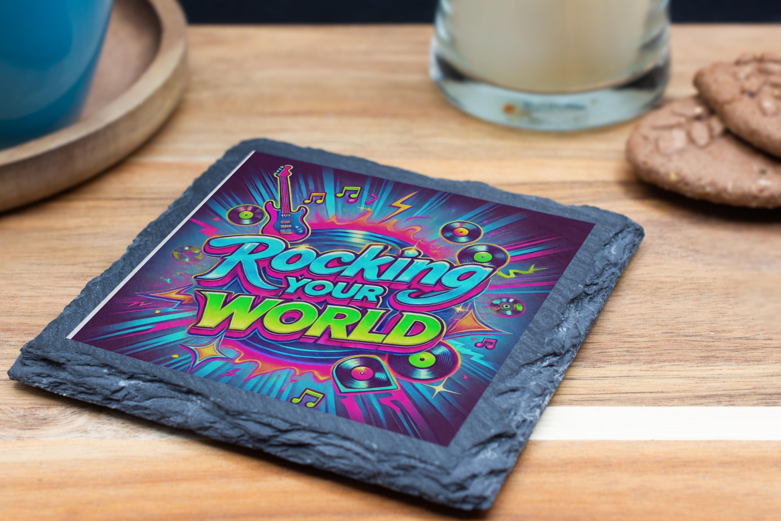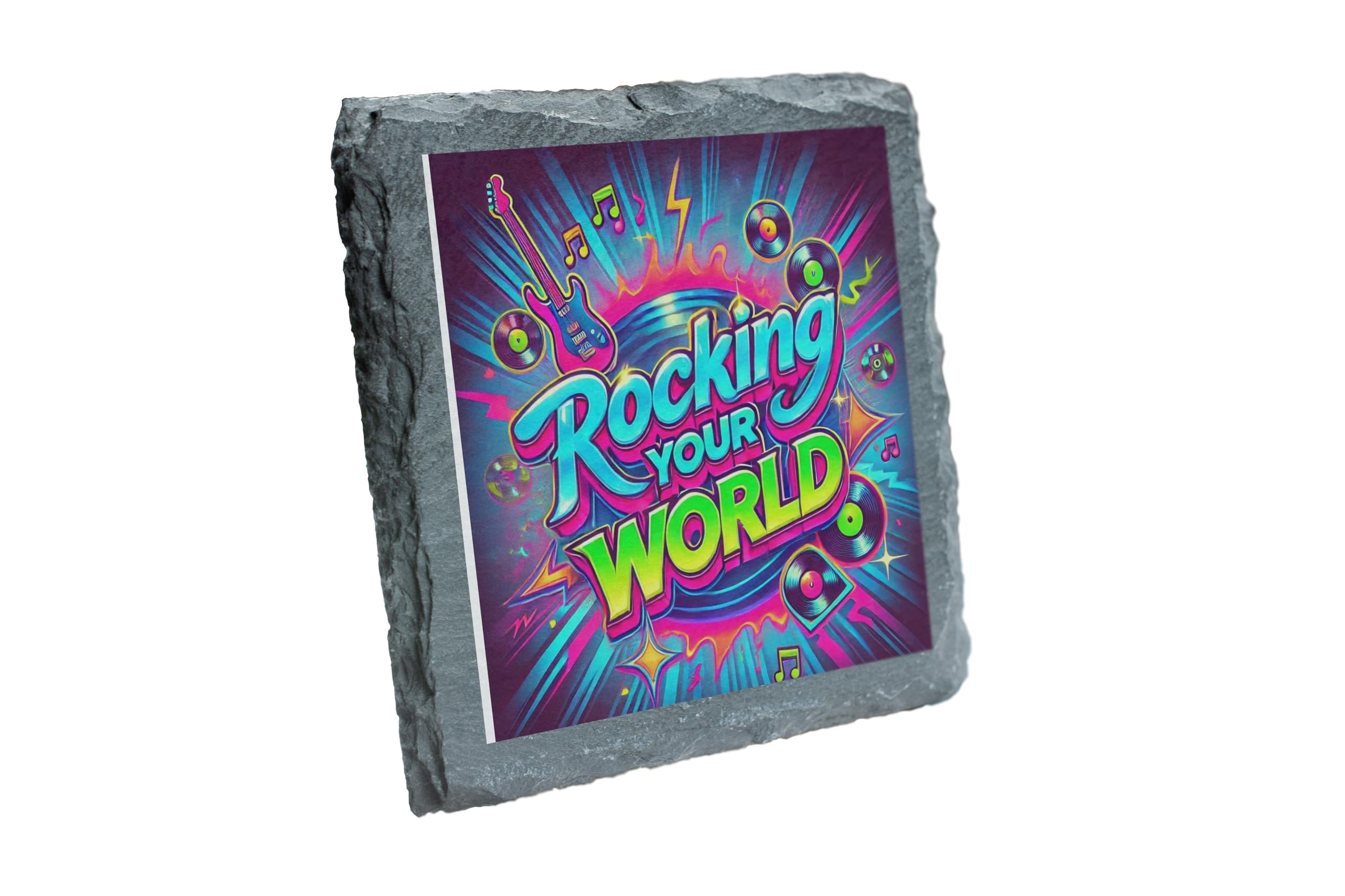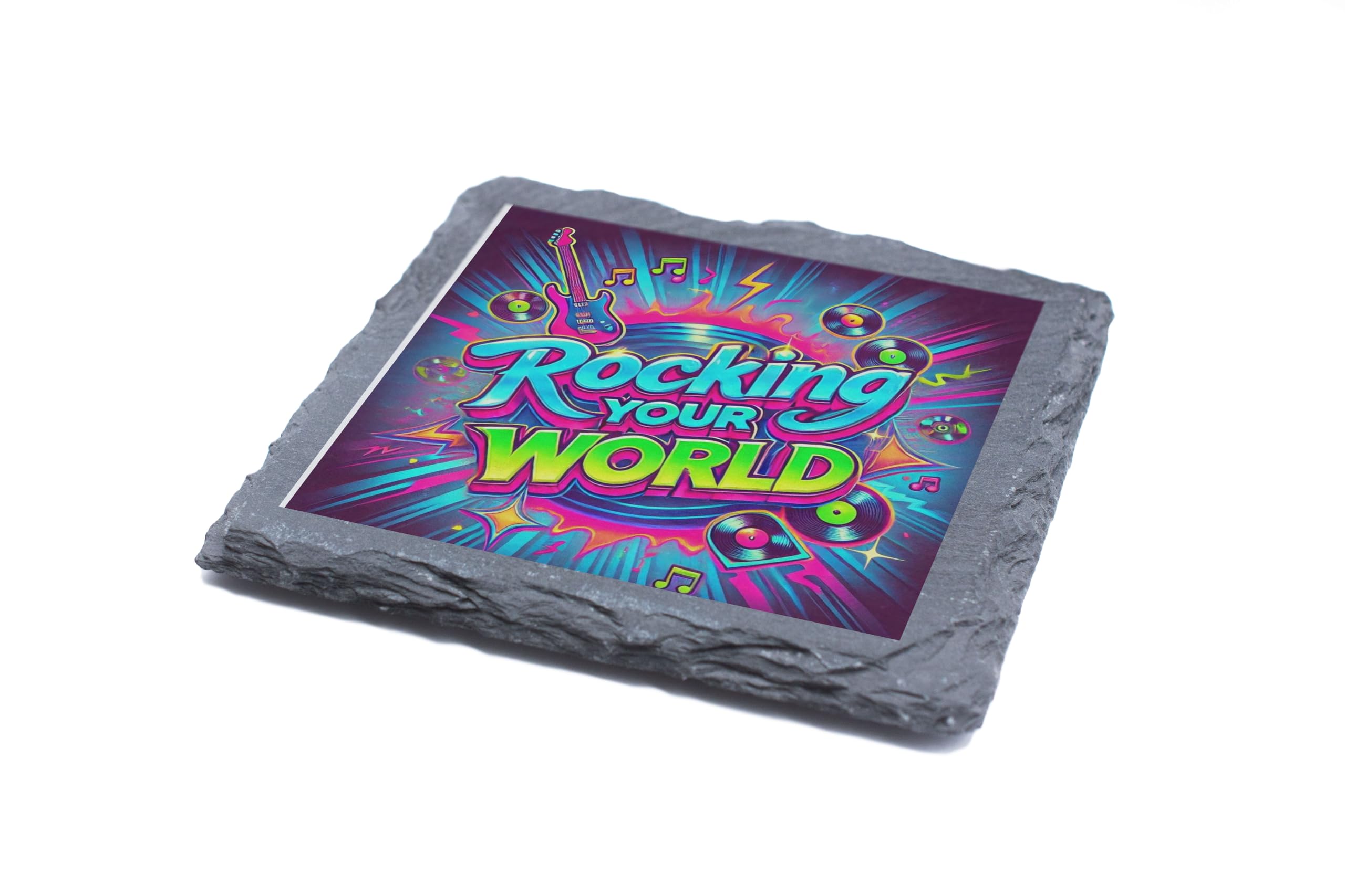'Rocking Your World' Slate Coaster | Neon Music-Themed D?cor for Music Lovers (slco-ds24-rockingrg)