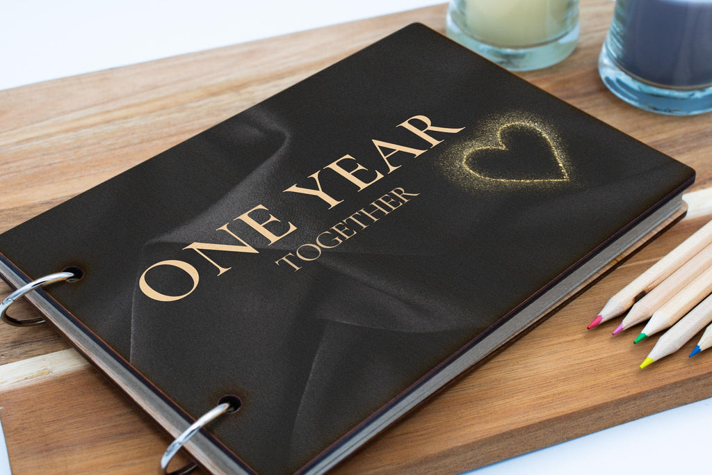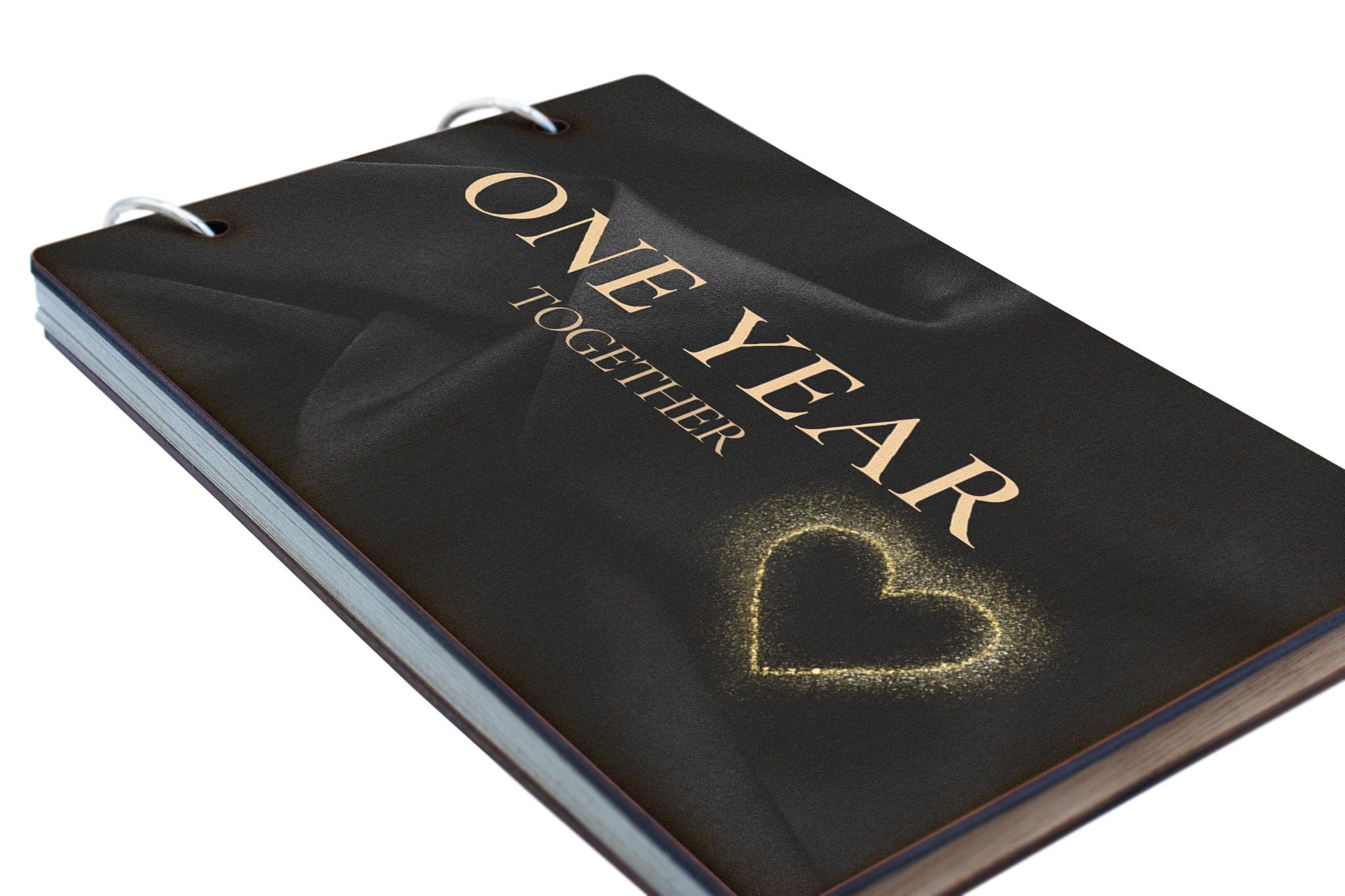 Celebrate your first year together with this beautifully handcrafted Romantic Love Story Anniversary Keepsake Memory Album. This sentimental and elegant album features a wooden cover with a stylish ring binder, making it the perfect couple's scrapbook to commemorate your love story. The decorative heart motif on the full colour front cover adds a touch of romance to this celebration album. Inside, you'll find 25 recycled pages where you can document your memories and milestones from the past year. The wooden cover reads 'One Year Together', making it a perfect first year anniversary gift for your significant other. Capture all the special moments and memories in this stylish and unique album that you can cherish for years to come.