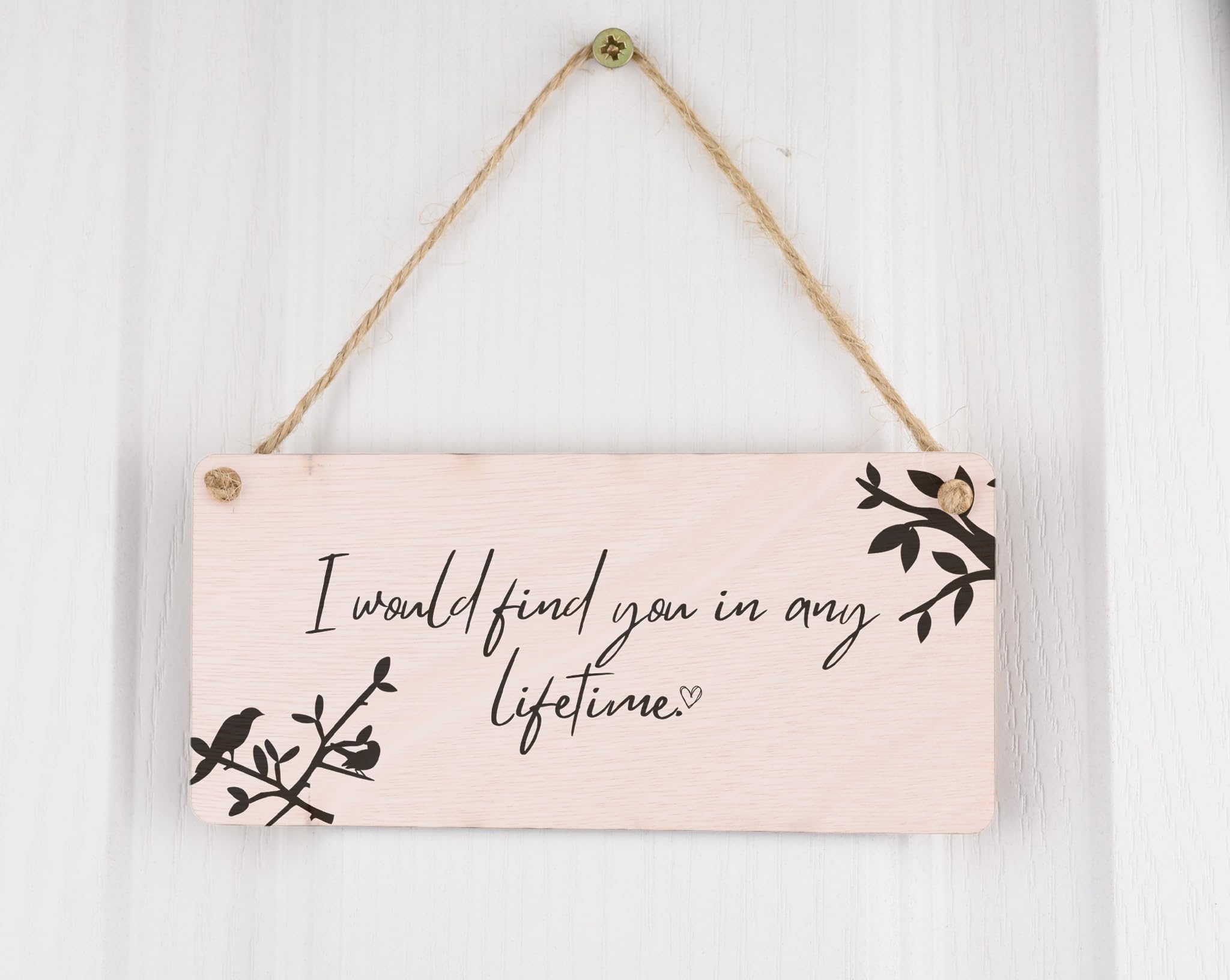 Romantic Plywood Hanging Sign for Living Room, Bedroom Decor - Reads 'I Would Find You in Any Lifetime'