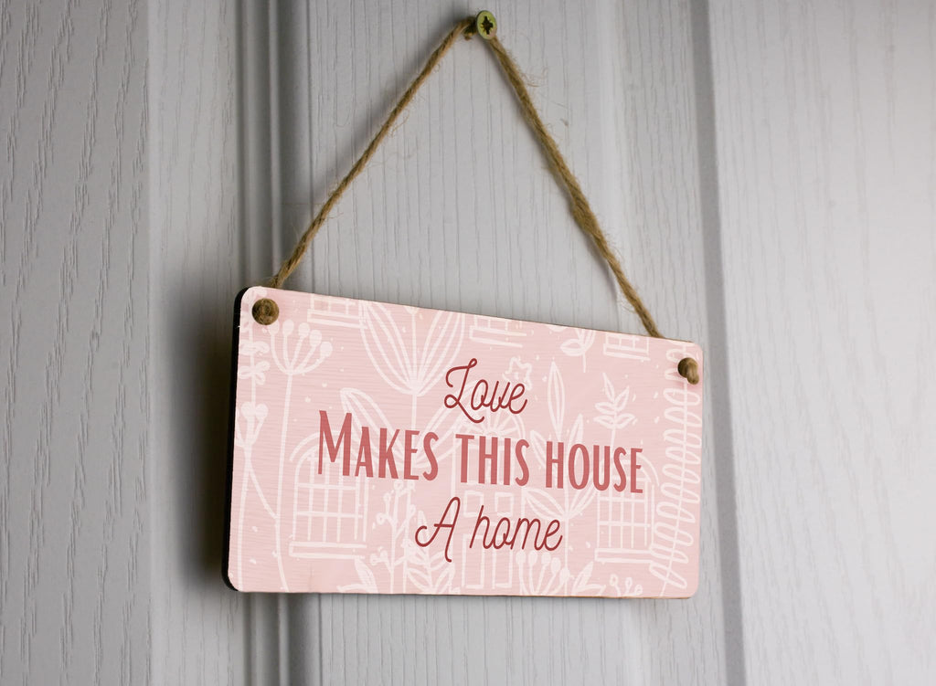 • Full colour design with the heartfelt message 'Love Makes This House a Home'