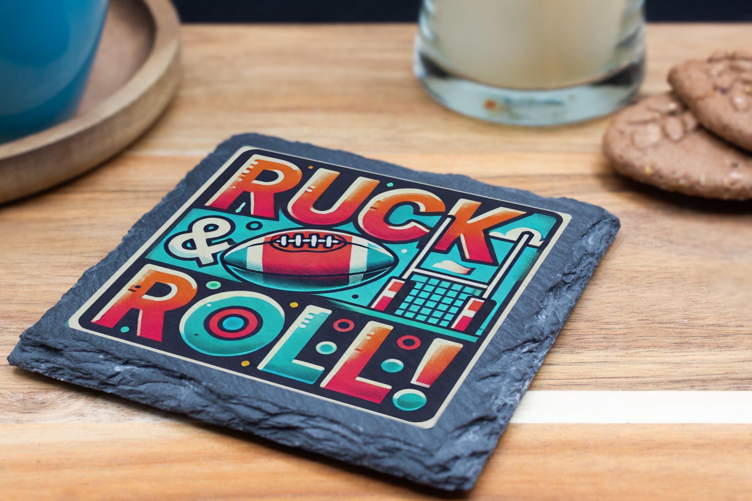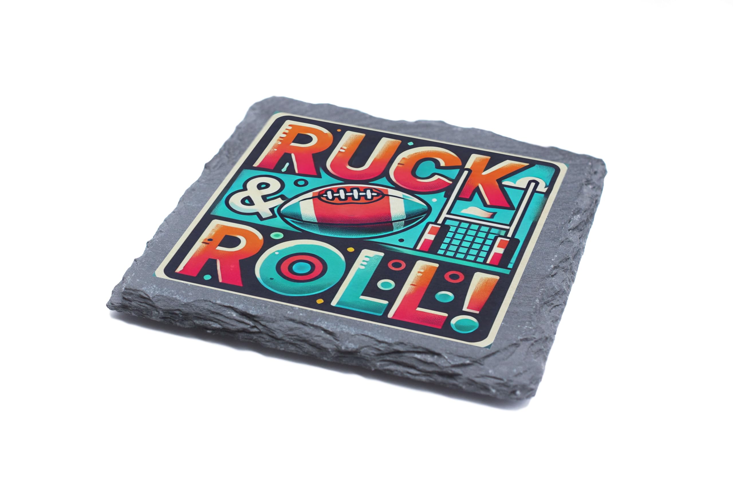 'Ruck & Roll!' Rugby-Themed Slate Coaster | Fun Drinkware Accessory (slco-ds24-ruckrg)