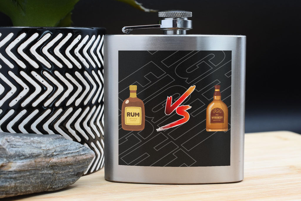 - Alcohol showdown: Settle the debate between Rum vs Whiskey with this unique flask