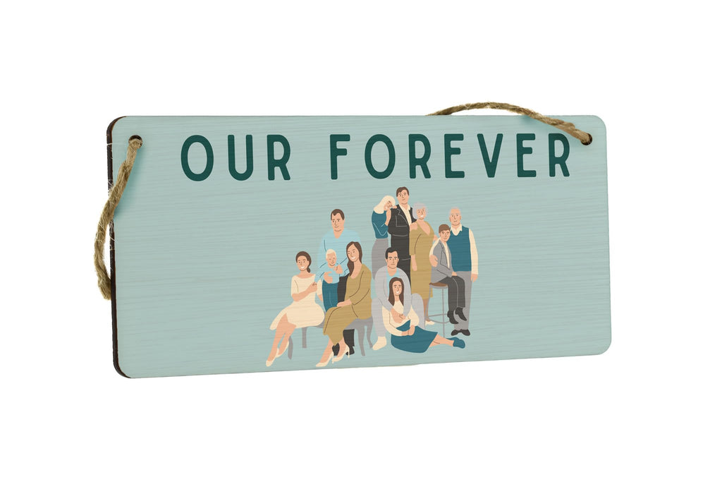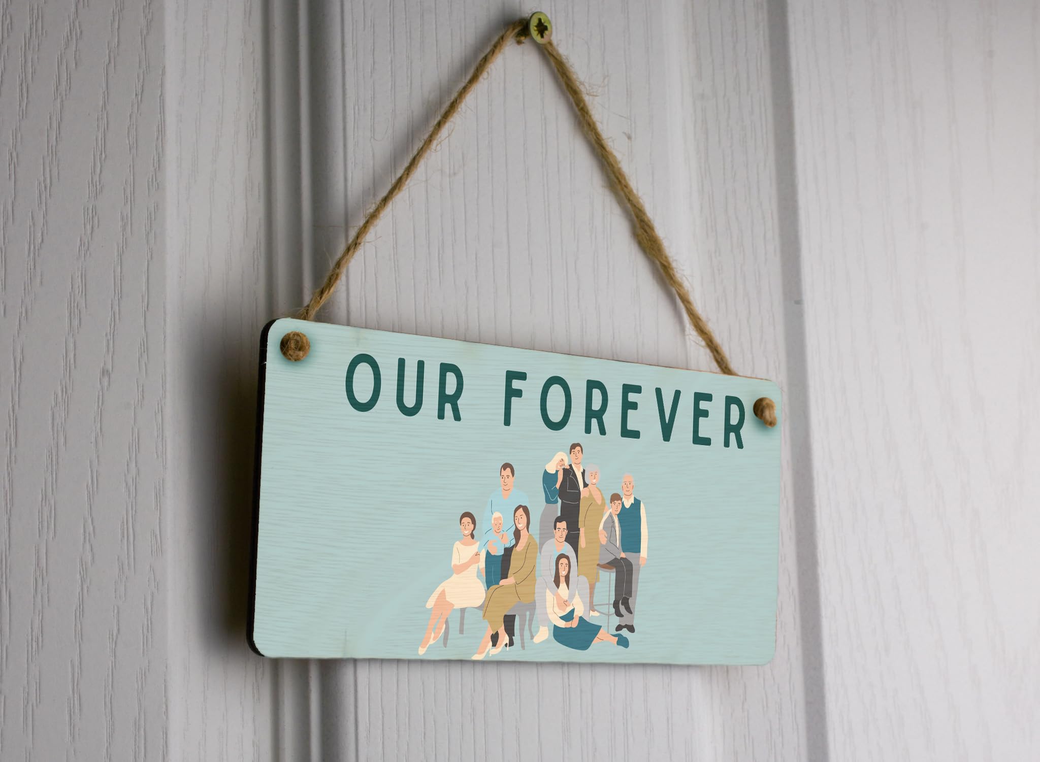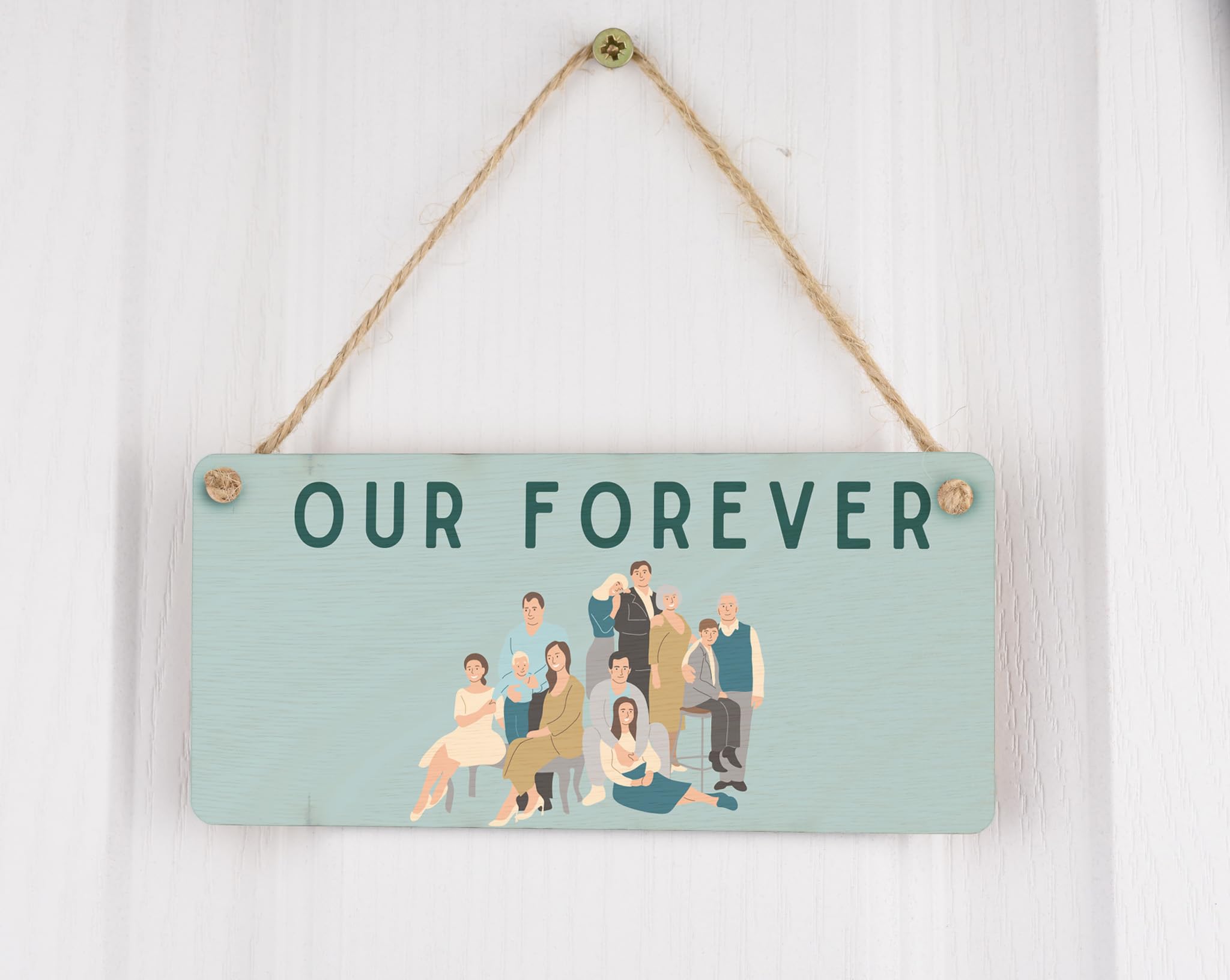 Add a touch of rustic charm to your home and living room decor with our Forever Wooden Plywood Hanging Sign. Made from high-quality plywood, this hanging sign is designed to bring warmth and character to any space. The full-color design showcases the phrase 'Our Forever' in elegant typography, making it a perfect family wall sign or a thoughtful gift for your loved ones. The sign is easy to hang and can be displayed on walls, doors, or anywhere you want to create a cozy ambiance. Bring the beauty of nature indoors with this beautiful wooden sign.