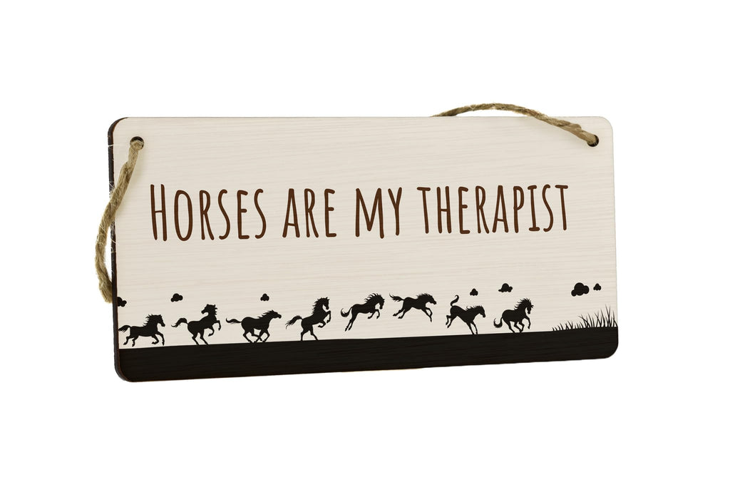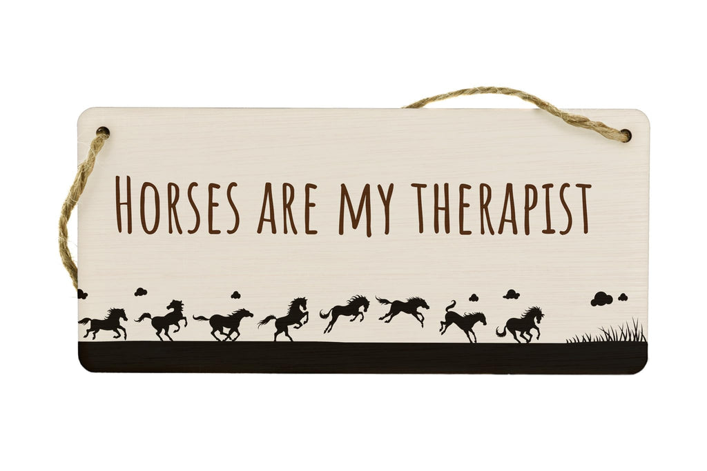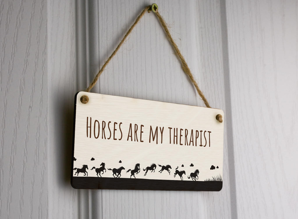 - Features a heartfelt message that reads 'Horses are my therapist'