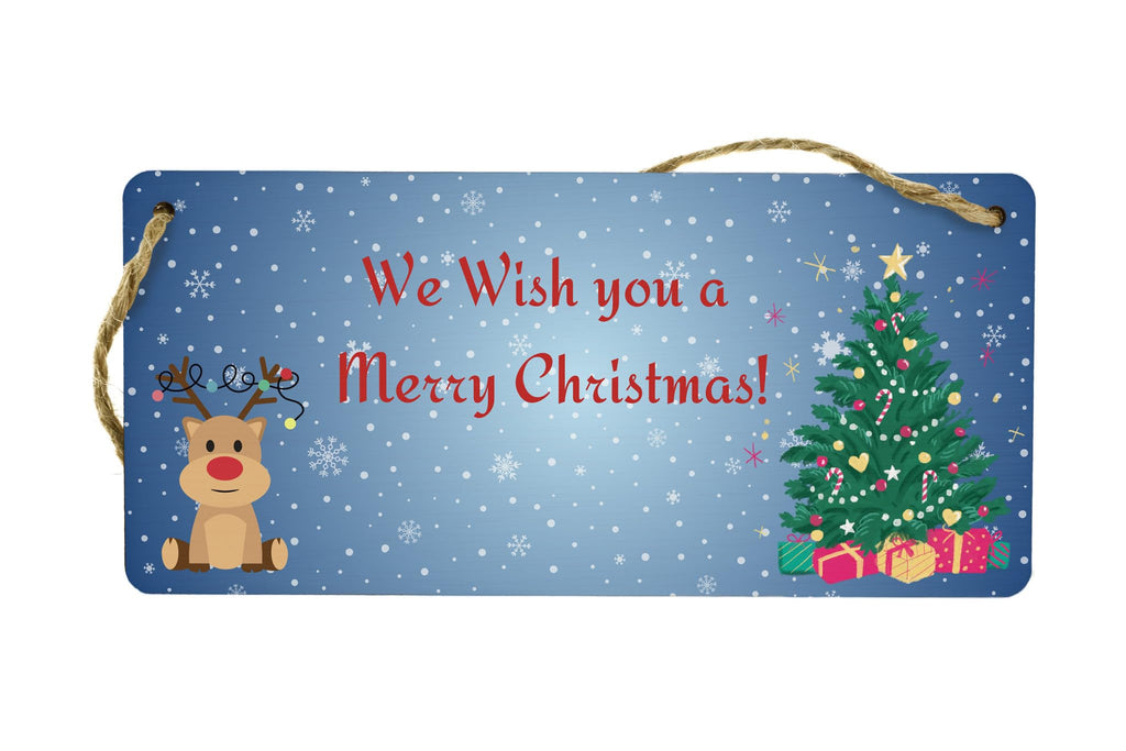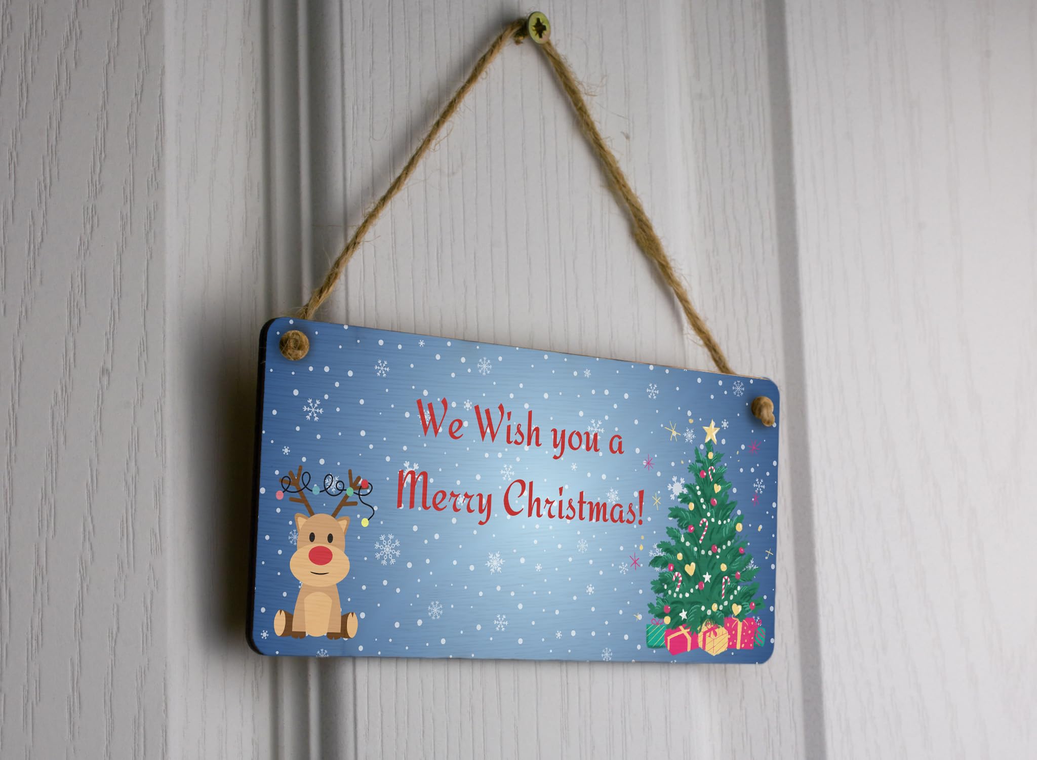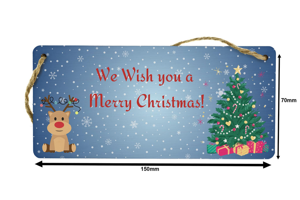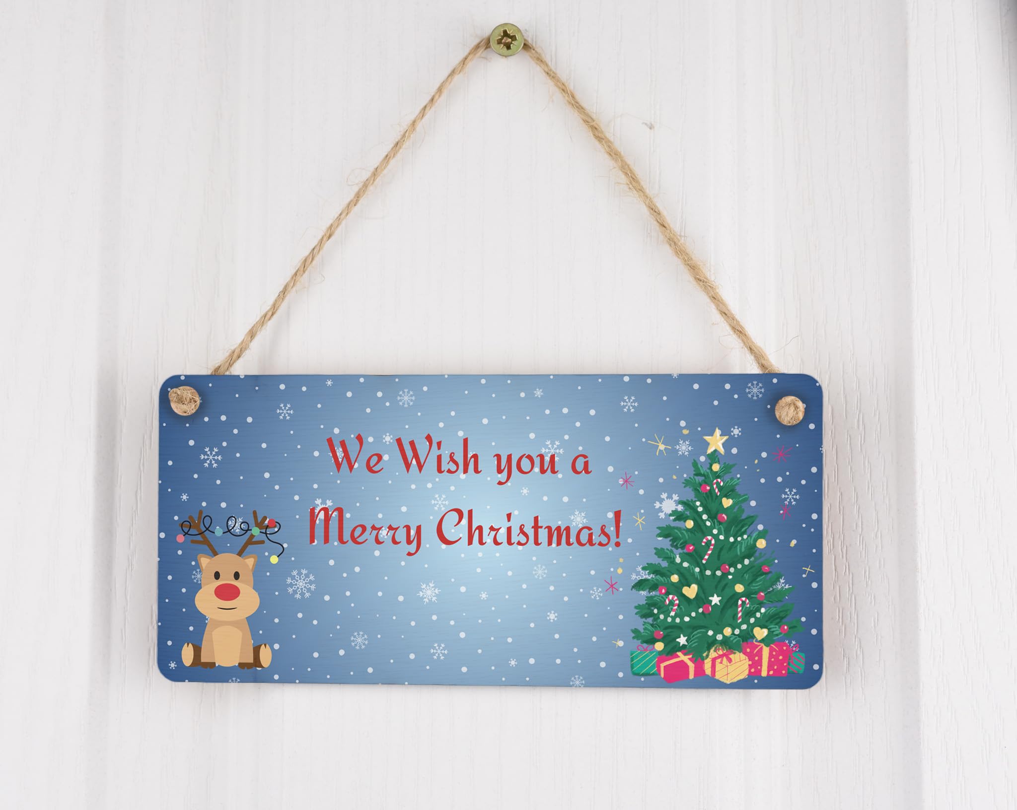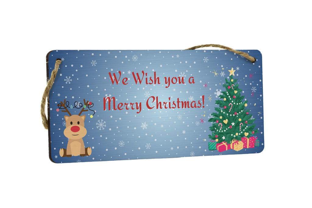 Add a touch of rustic charm to your home this Christmas with our Hanging Plywood Christmas Sign. Featuring a beautiful reindeer and snowflake design, this sign reads 'We Wish You a Merry Christmas' in elegant lettering. Made from quality plywood, this sign is durable and designed to last. Hang it on your door or anywhere in your home to create a warm and festive atmosphere. It also makes a perfect gift for your loved ones., making it a great size for any space. Get into the holiday spirit with this lovely Christmas sign!