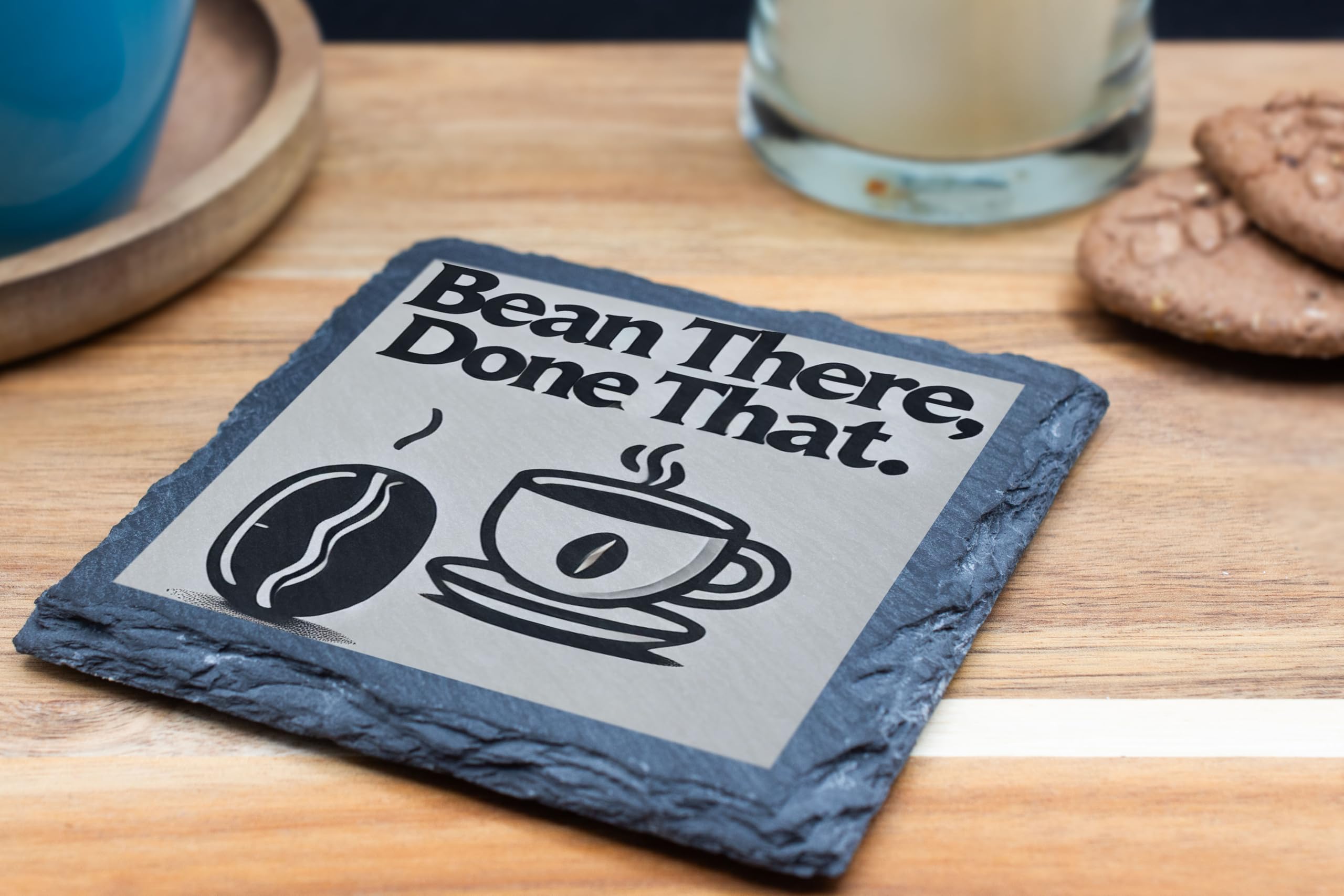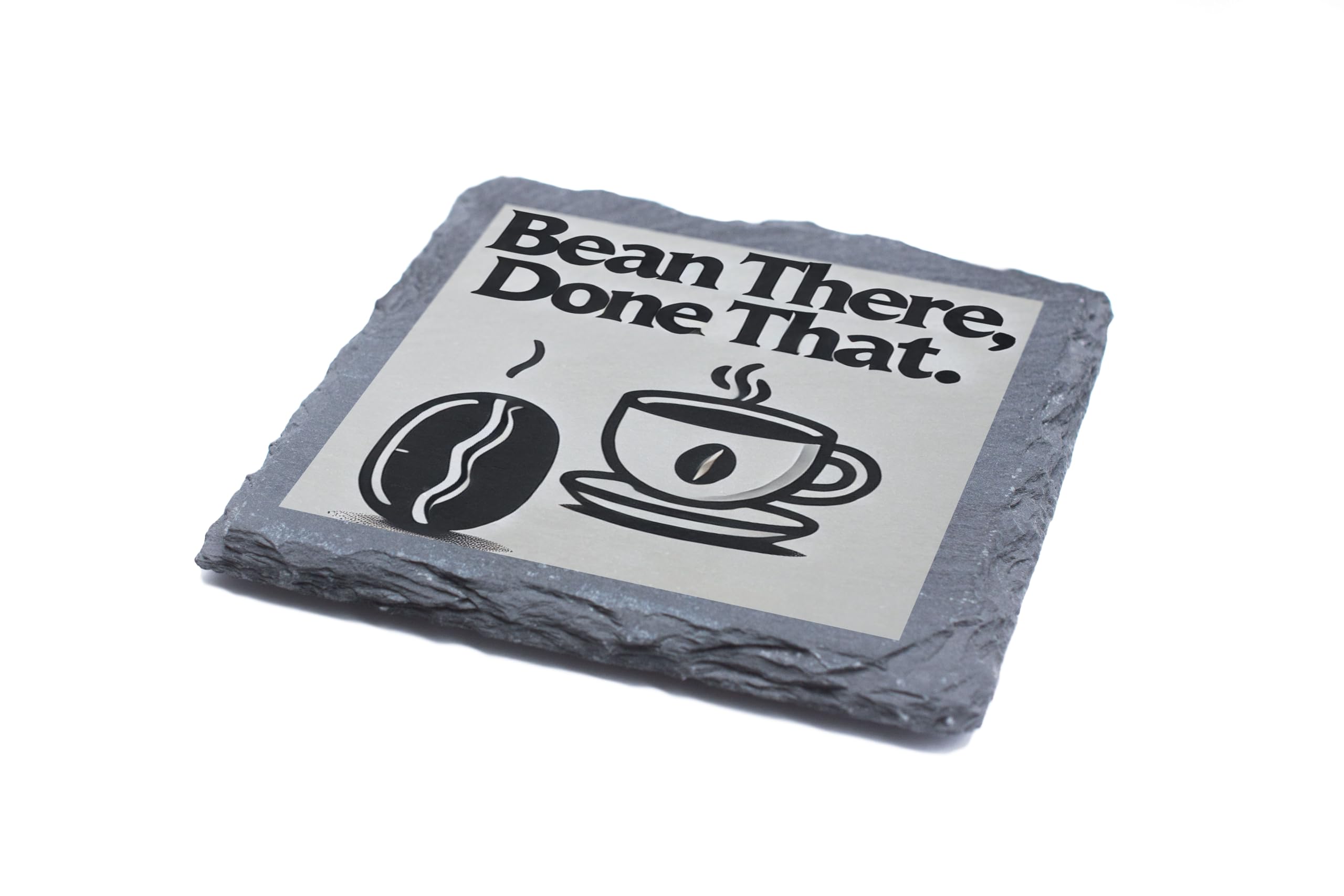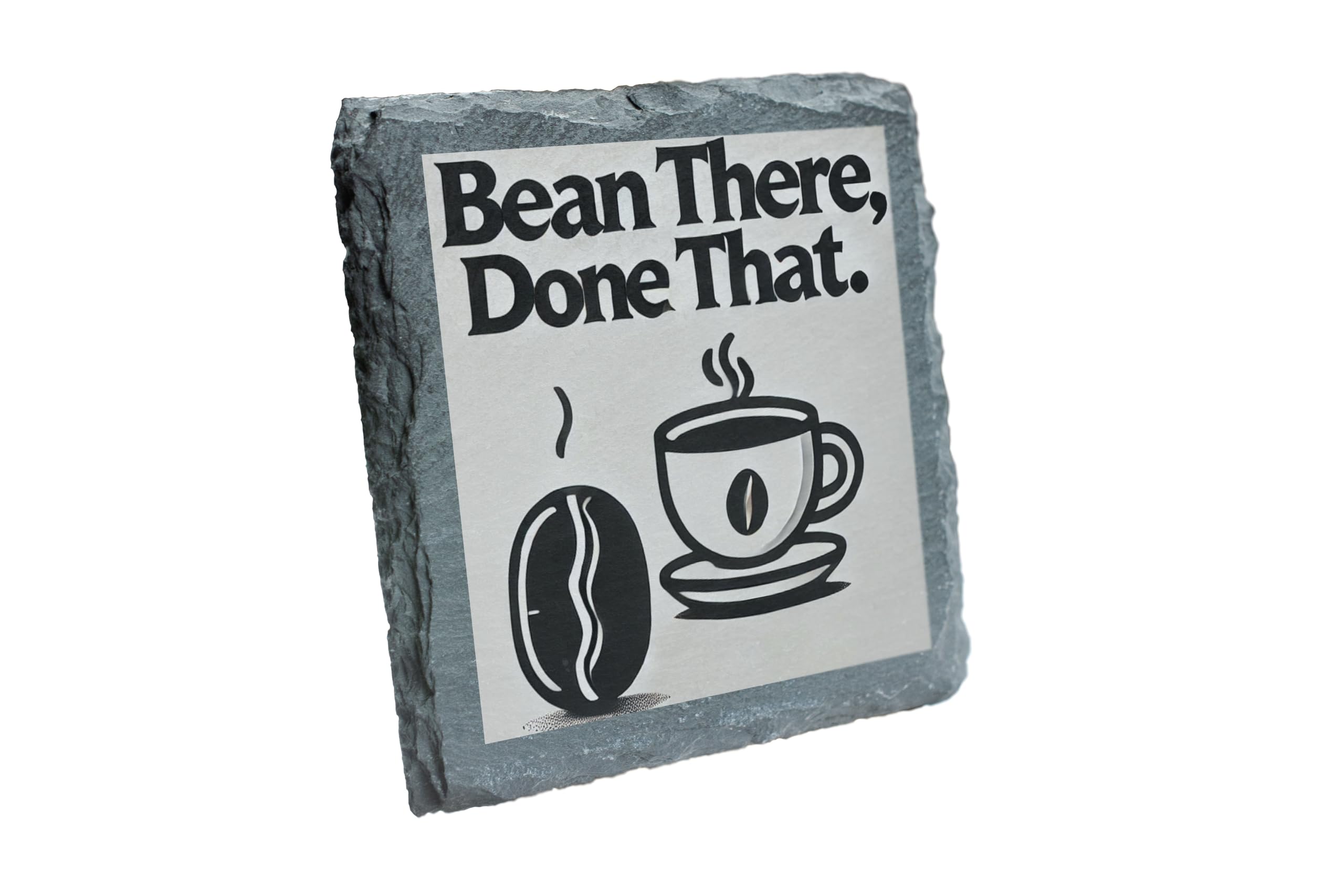 Rustic Slate Coaster with 'Bean There, Done That' Design - Fun and Decorative Coffee-Themed Coaster for Home or Gift (slco-ds24-beanrg (Amazon 1)