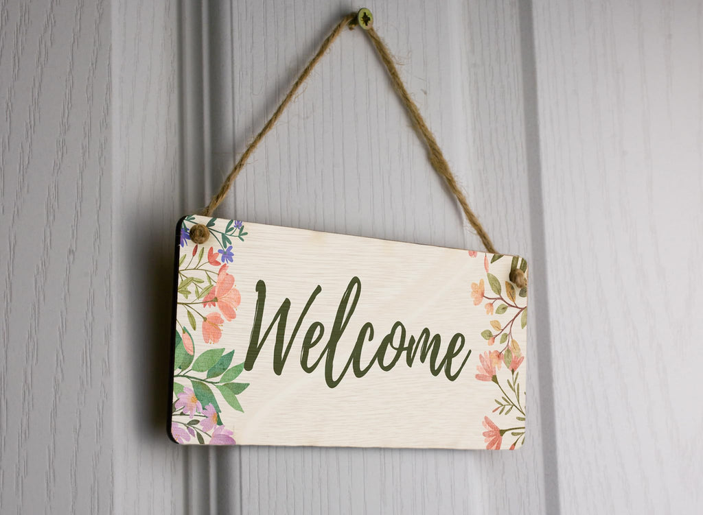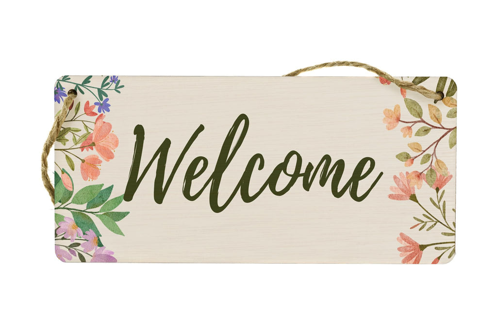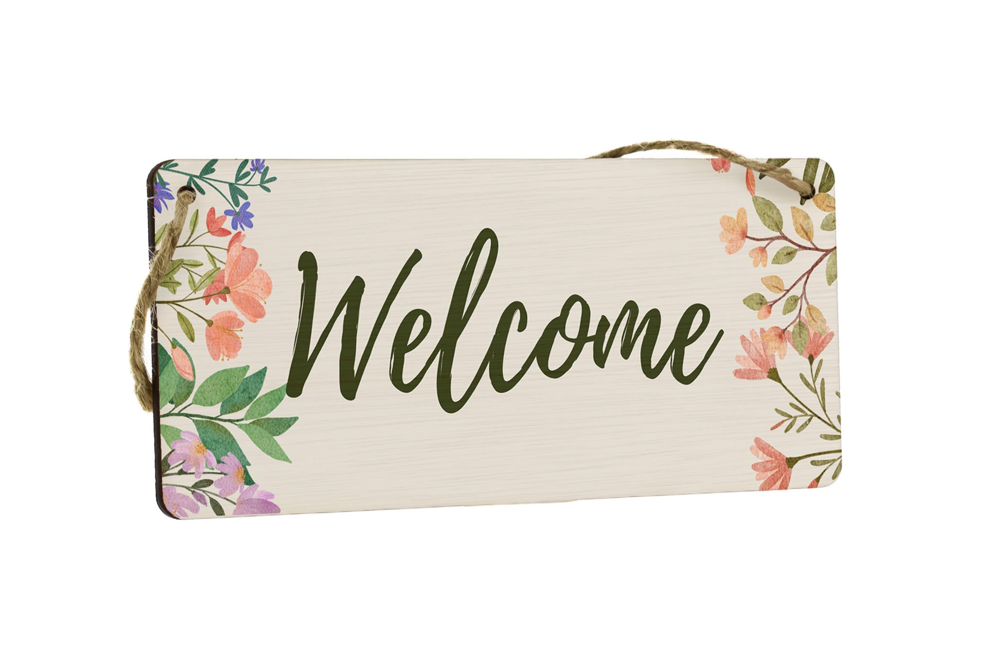 Enhance the charm of your farmhouse home decor with this rustic welcome floral plywood sign. Crafted from high-quality plywood, this hanging sign is designed to add a warm and inviting touch to your front door. The full-color floral design beautifully complements any interior or exterior. Made to last, this wooden sign is durable and resistant to wear and tear. Hang it on your front door or display it on a wall to create a welcoming atmosphere in your home. Embrace the beauty of farmhouse decor with this full-color, wooden sign that proudly reads 'Welcome'.
