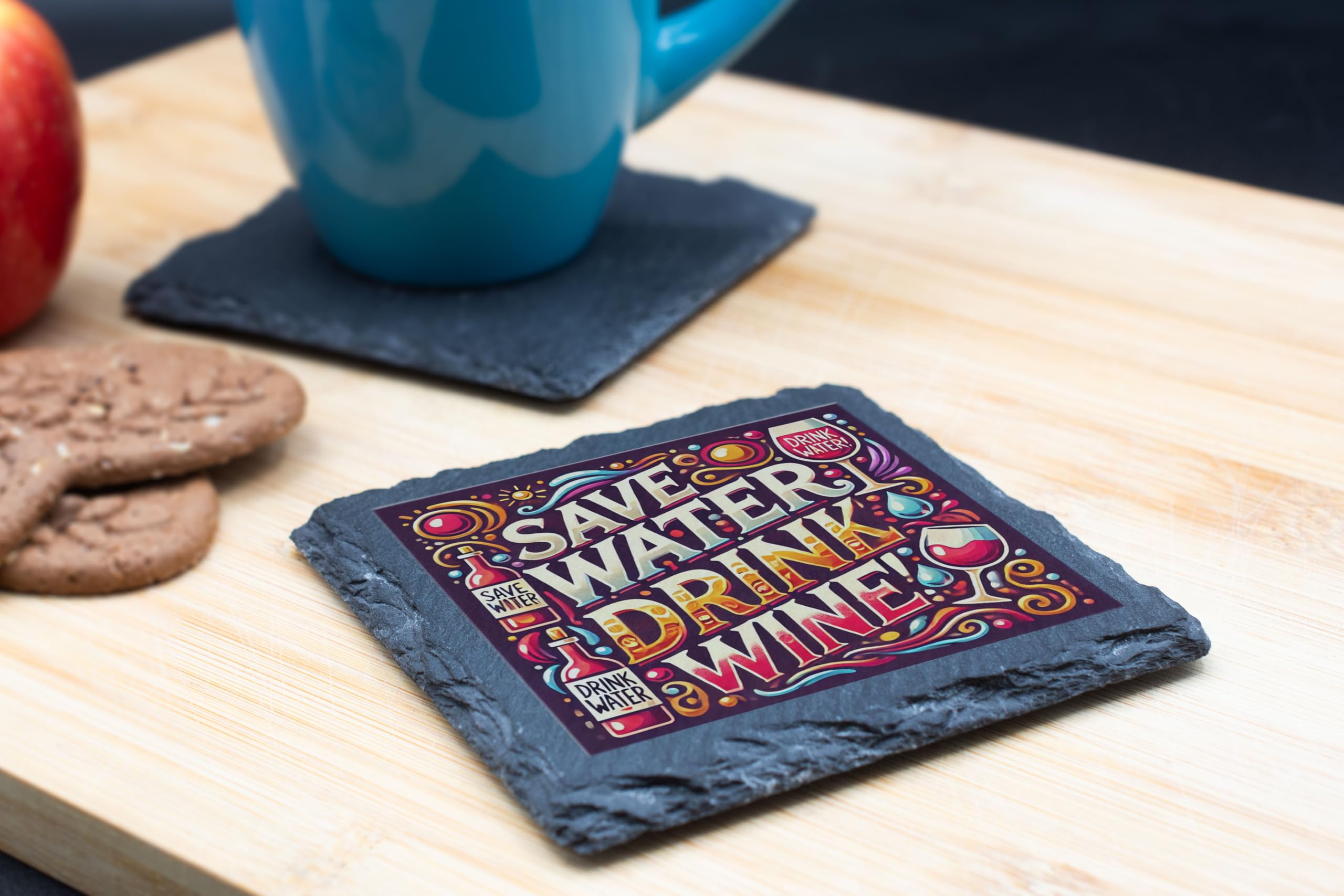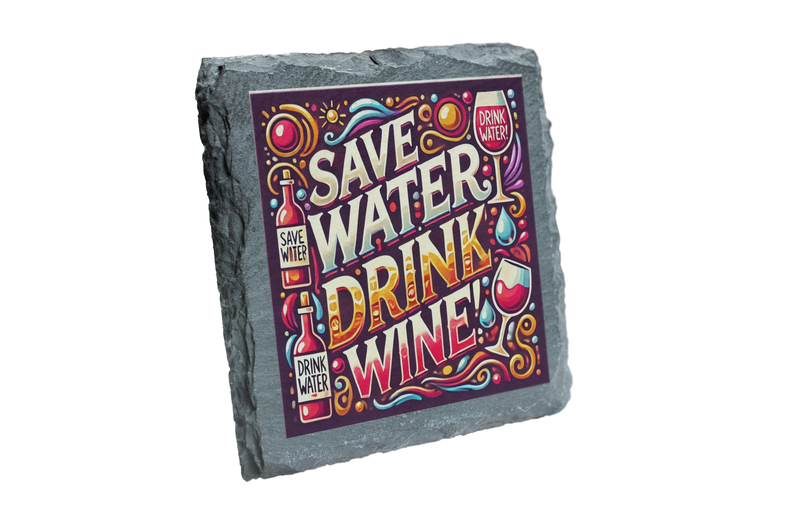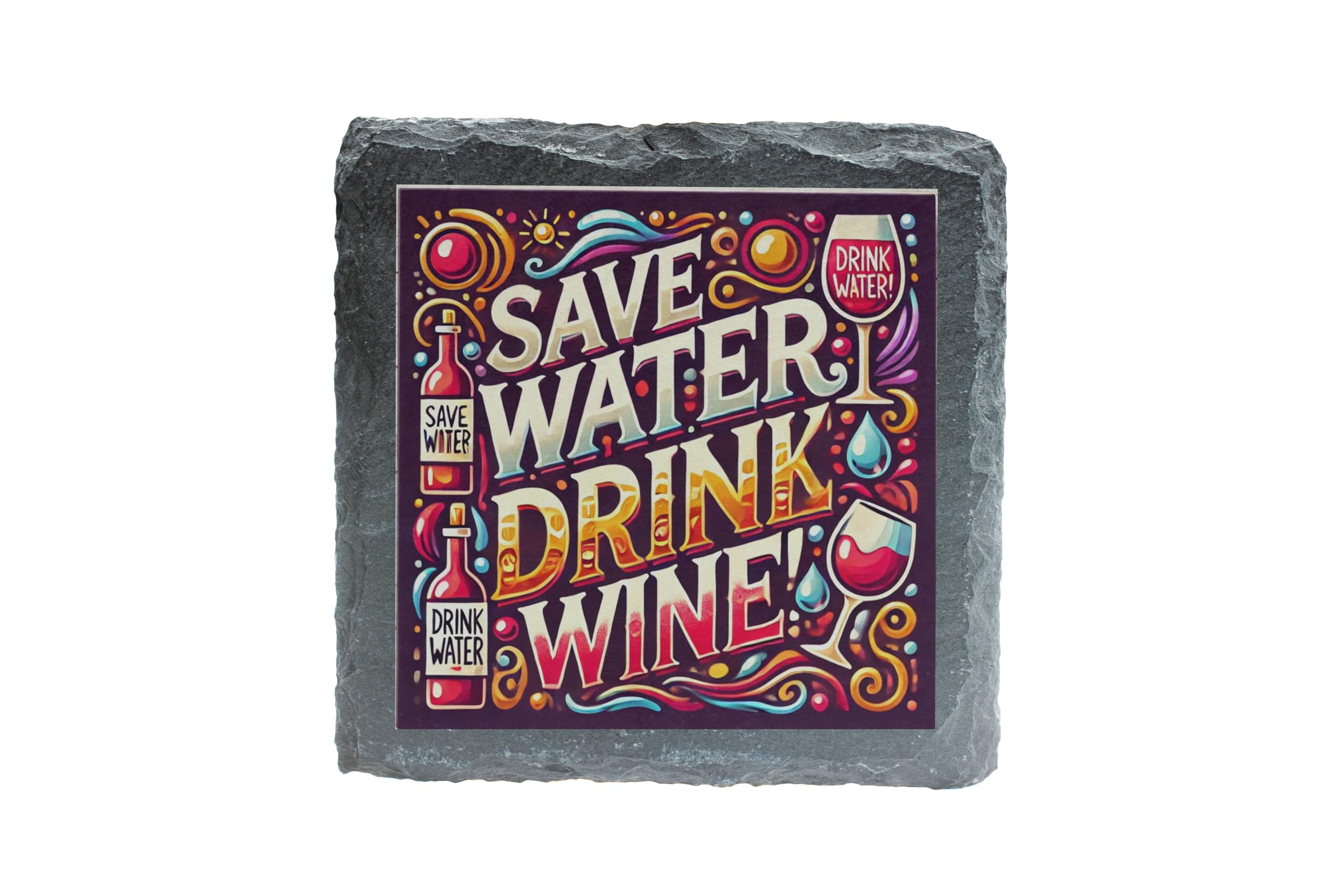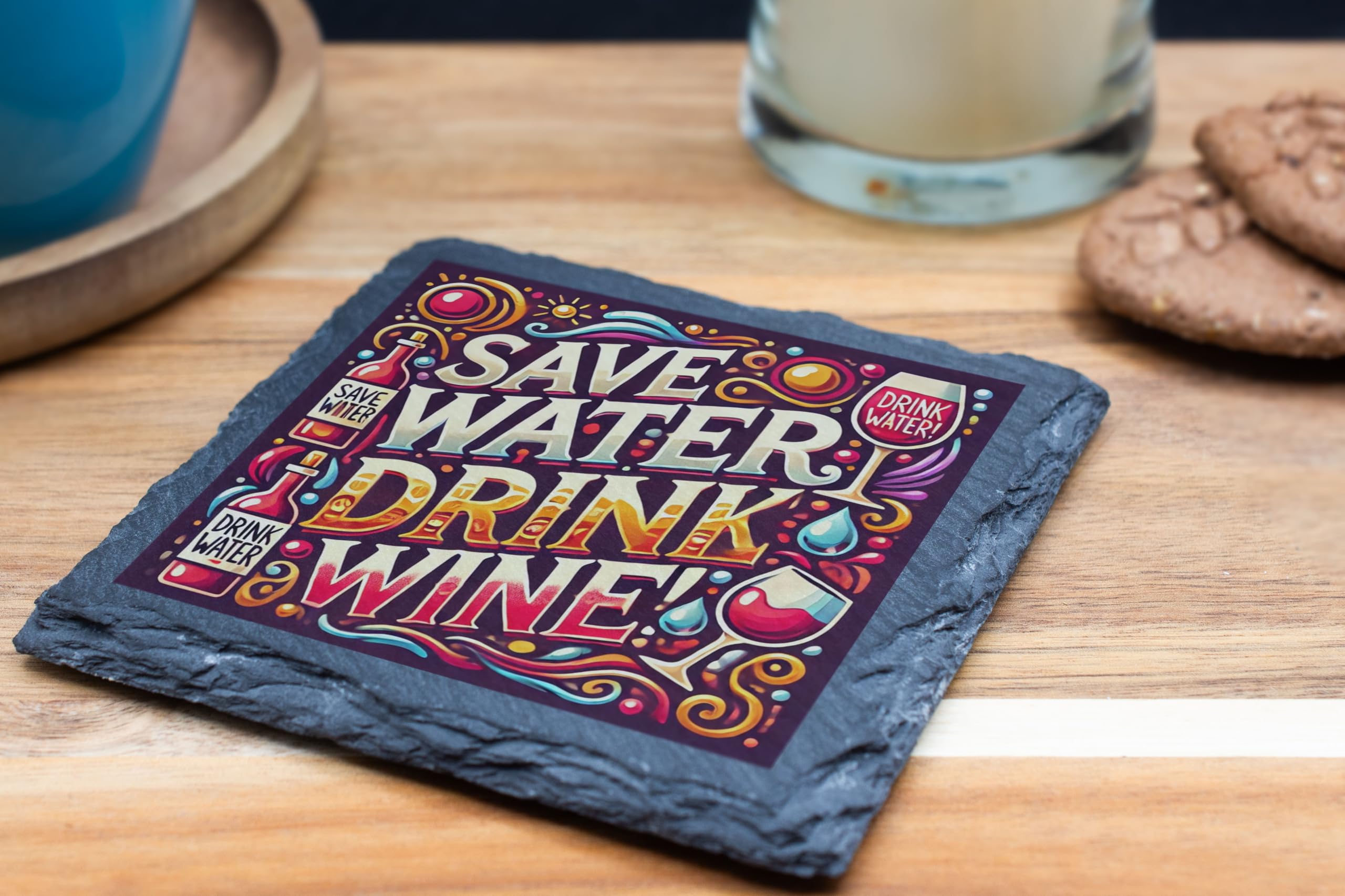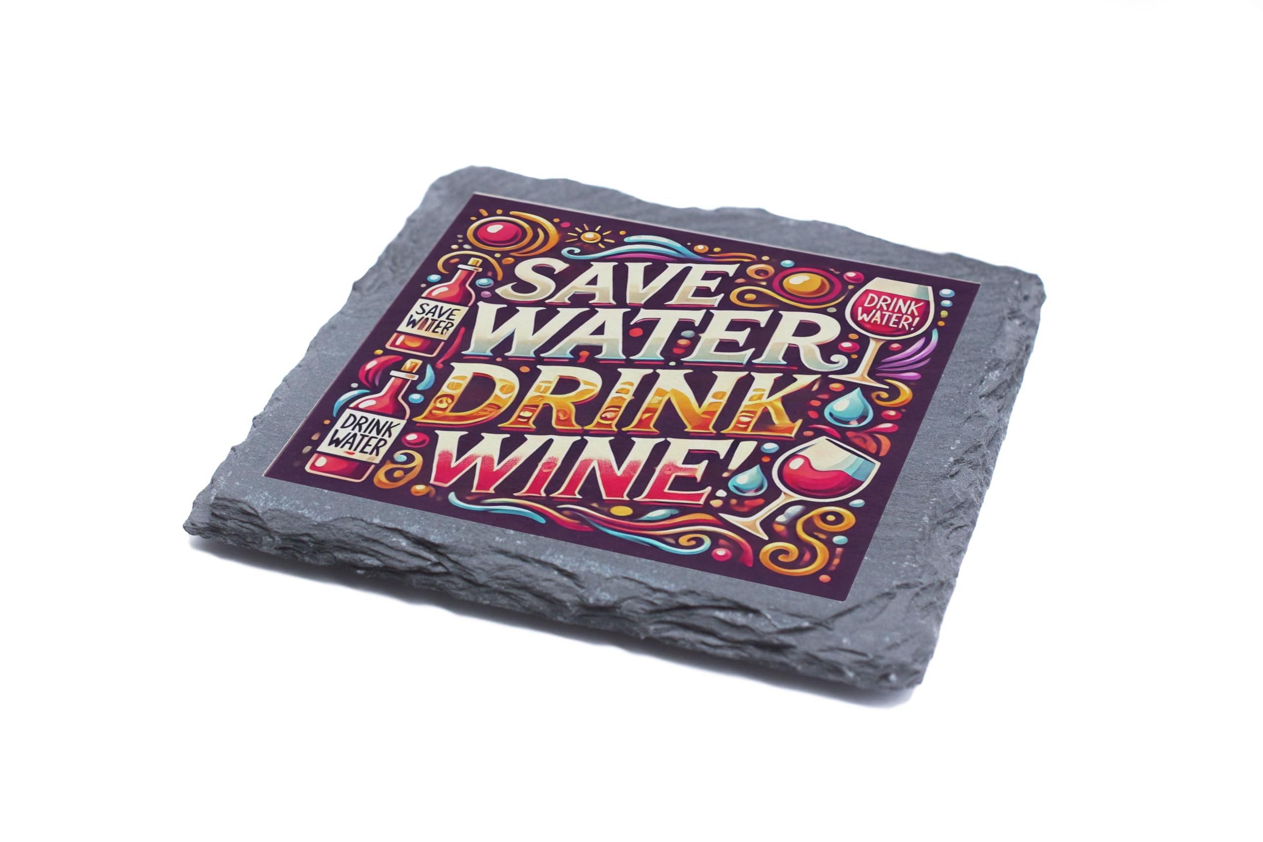Add a touch of humor and charm to your wine-drinking experience with this "Save Water, Drink Wine" Slate Coaster. Crafted from premium natural slate, this coaster combines functionality with a whimsical design that showcases your love for wine in style. The vibrant, playful graphic adds character to your home bar, dining table, or kitchen counter, while the durable slate material ensures long-lasting protection for your surfaces. Whether you're hosting a wine night with friends, enjoying a quiet evening with your favorite bottle, or looking for a standout gift for a fellow wine enthusiast, this coaster is the perfect choice. It's not just a practical item but also a delightful conversation starter that pairs well with your favorite vintages. Make every sip special and give your space a decorative boost with this one-of-a-kind coaster. Cheers to good times and great wine!