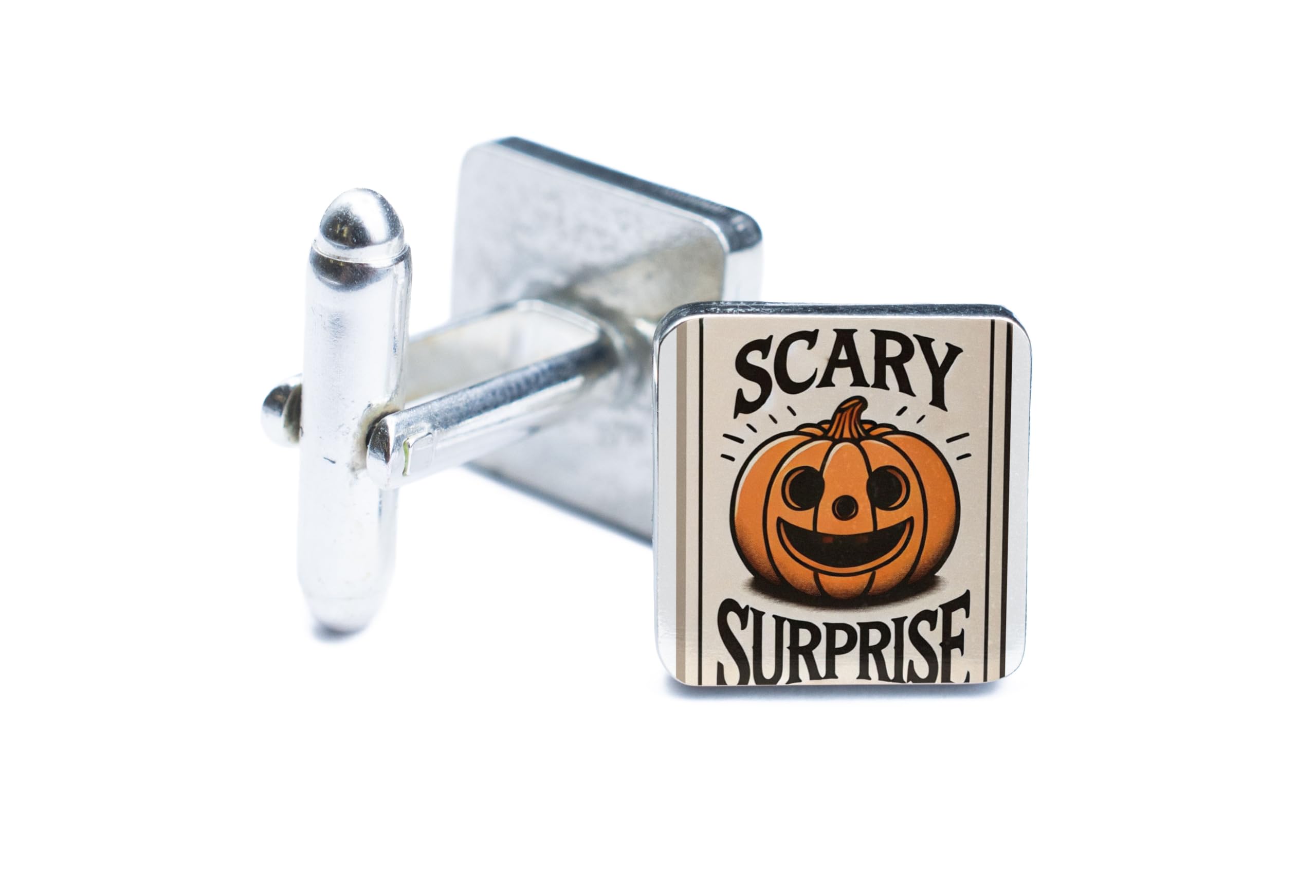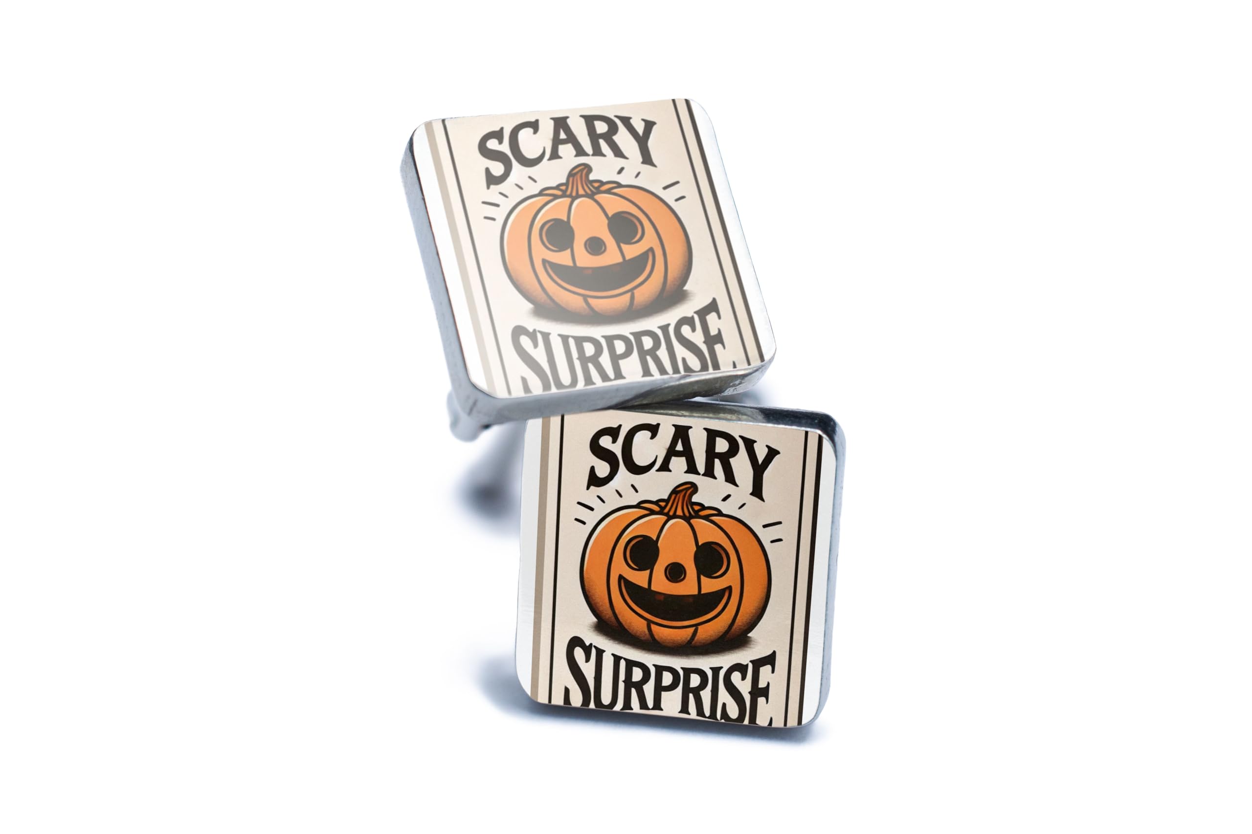 Add a touch of Halloween magic to your outfit with these "Scary Surprise" pumpkin cufflinks. Featuring a smiling jack-o'-lantern design, these cufflinks are the perfect way to embrace the spooky spirit of the season. Made from durable, high-quality materials, they are built to last for many Halloweens to come. Whether you're dressing up for a costume party, attending a themed dinner, or simply spreading festive cheer, these cufflinks are sure to make a statement. Presented in a beautiful gift box, they make a thoughtful and unique gift for Halloween lovers of all ages.