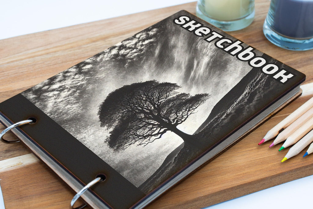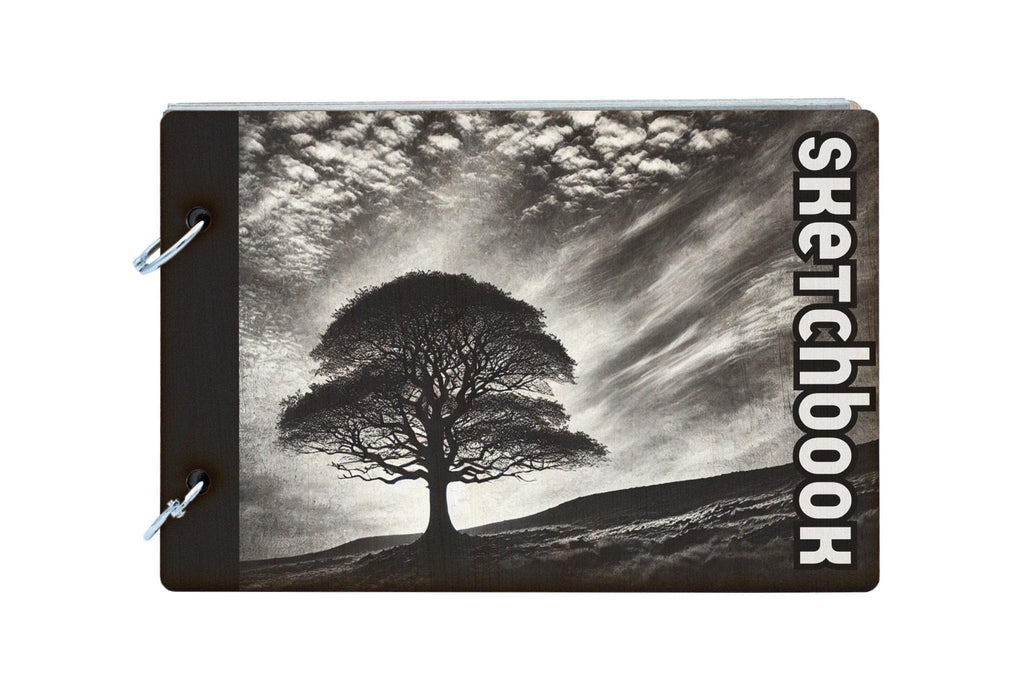 Immerse yourself in the beauty of nature with our 'Serenity Sketchbook: Lone Tree Landscape in Monochrome Art'. This nature-inspired sketchbook features a striking black and white design, with a minimalist cover showcasing a tranquil lone tree silhouette against a scenic view of a cloudy sky. The artistic illustration captures the essence of solitude and the timeless appeal of nature, creating a sense of peace and serenity with every page. The full colour front cover of a lone tree in a monochrome style sets the tone for your outdoor inspiration and creative exploration. Our sketchbook is perfect for capturing the beauty of the natural world and creating stunning monochrome art that evokes a sense of calm and tranquillity. Each page is AI generated and printed on 25 recycled pages, making it a sustainable choice for environmentally conscious artists. Let the Serenity Sketchbook inspire your creativity and bring a sense of peace to your artistic journey.