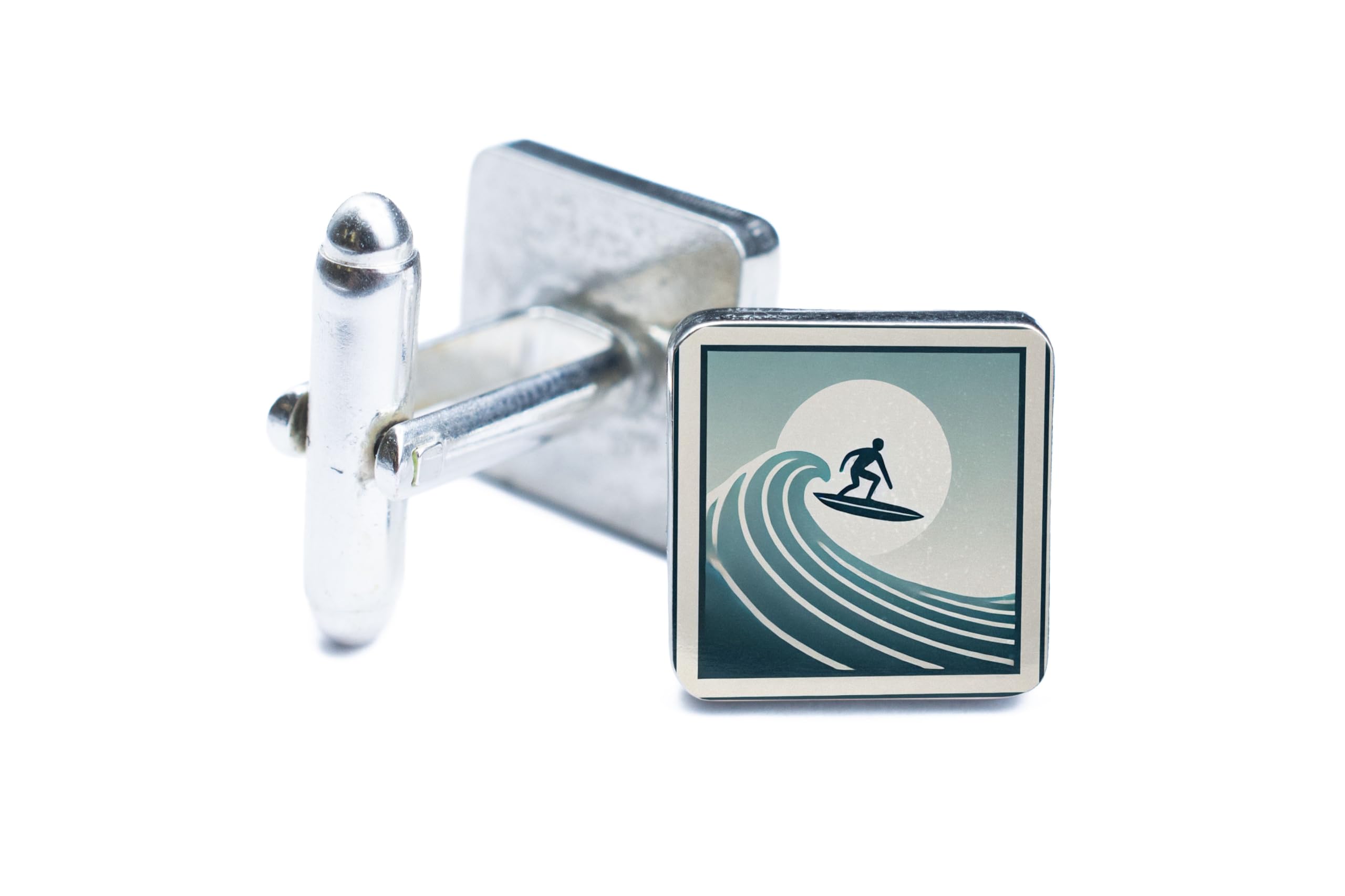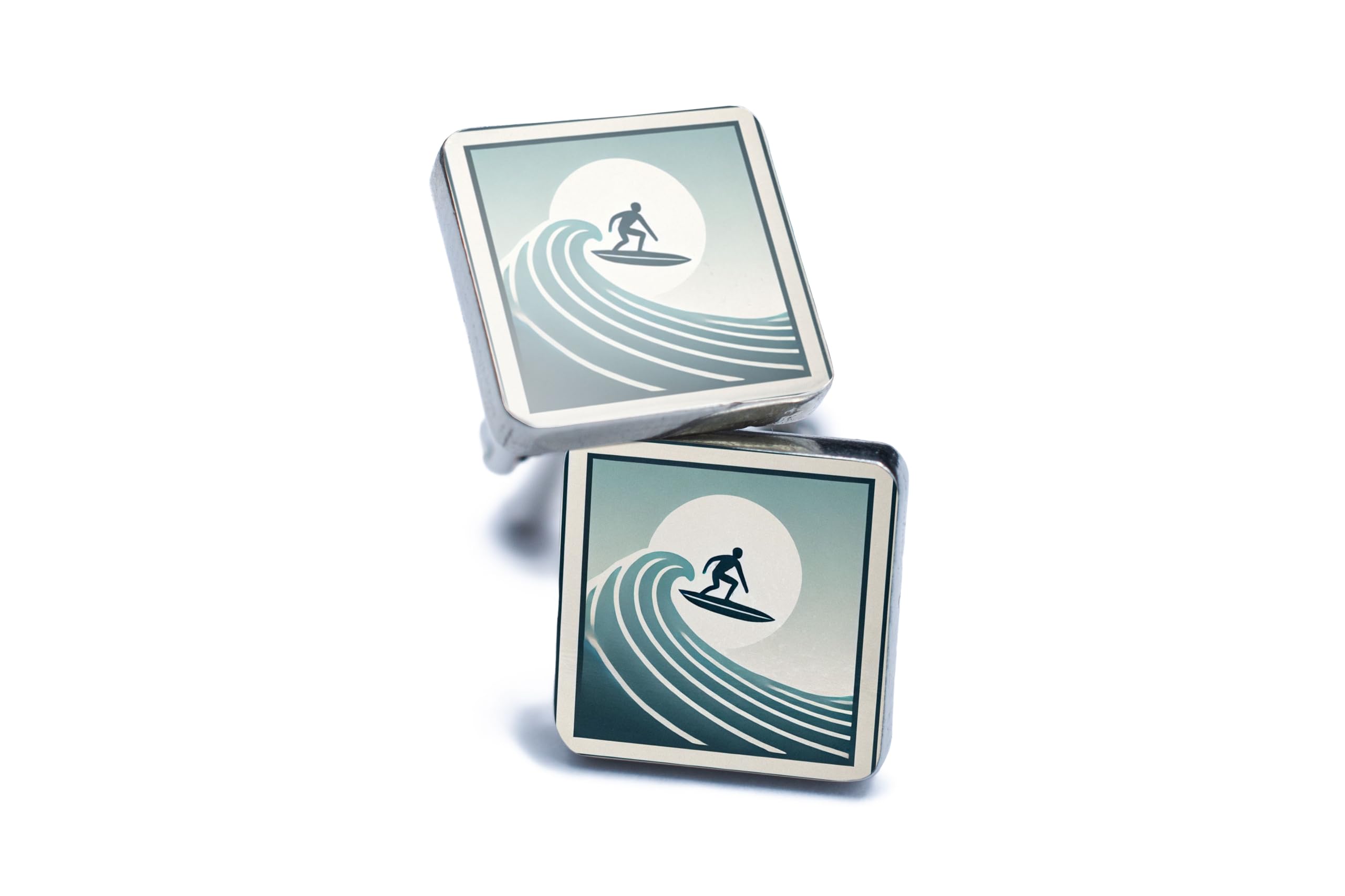 Channel the spirit of the ocean with these "Silver Surfer" cufflinks, showcasing a timeless design of a surfer catching a wave under the moonlight. Whether you're a surfing enthusiast or just someone who admires the beauty of the sea, these cufflinks are the perfect accessory to elevate your wardrobe. Crafted with durability and elegance in mind, these cufflinks are ideal for both formal and casual occasions. They make a thoughtful gift for surfers, beach lovers, or anyone who appreciates unique and artistic designs. Packaged in a stylish gift box, they're ready to make waves as the perfect present.