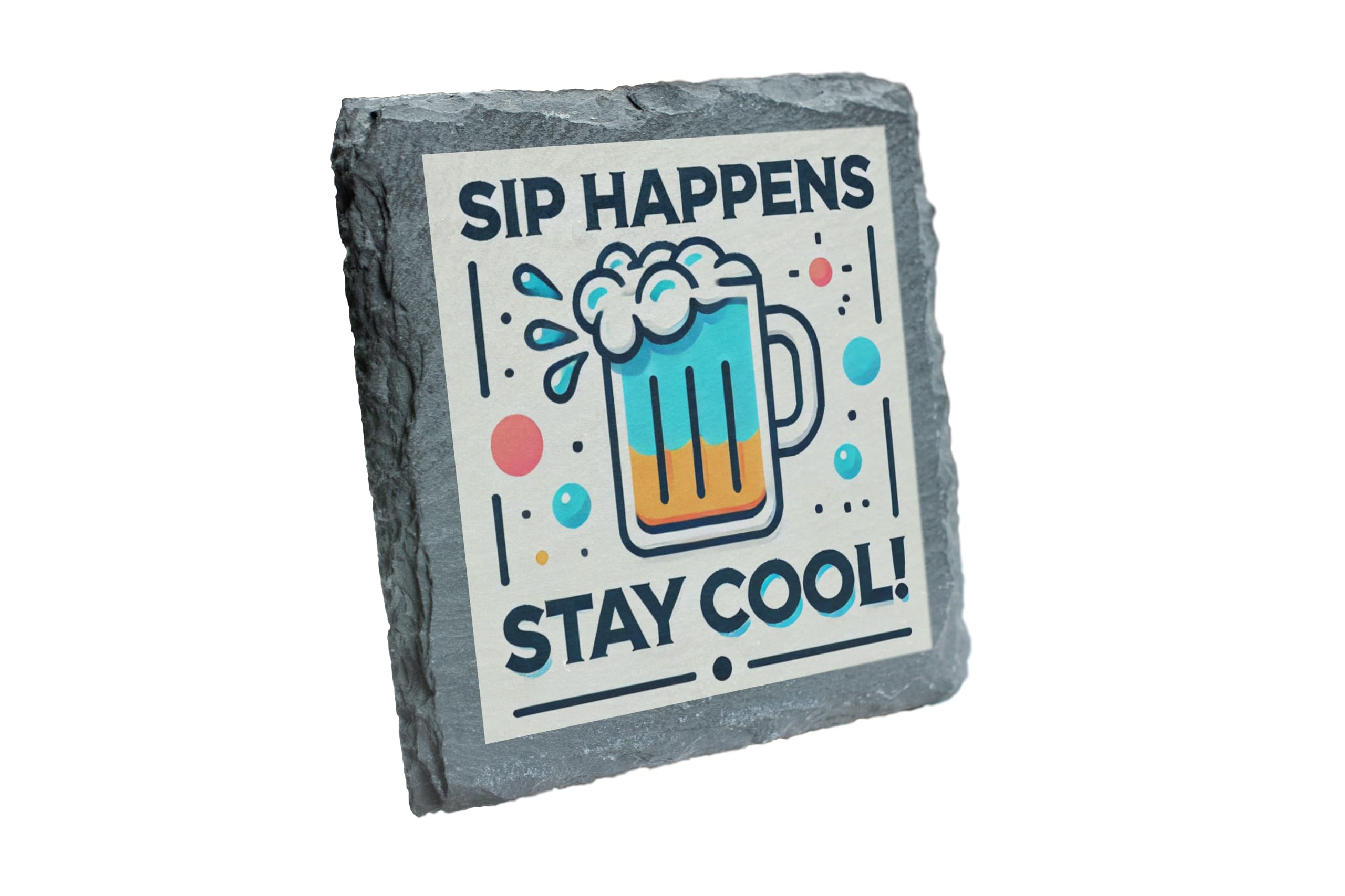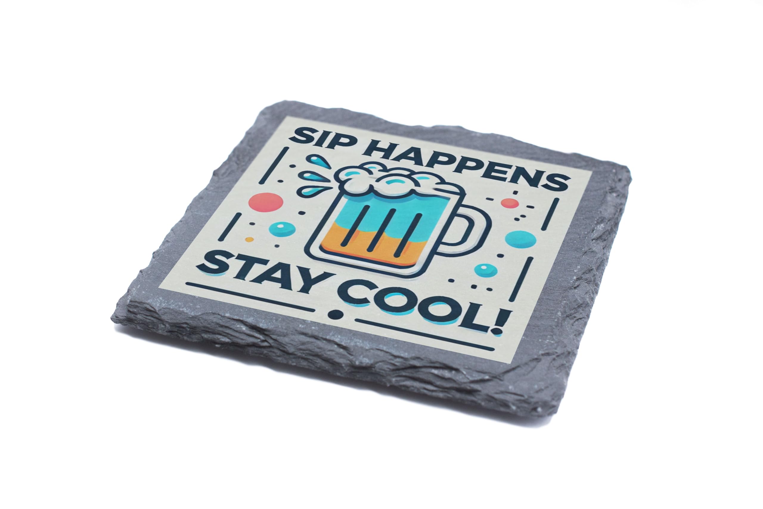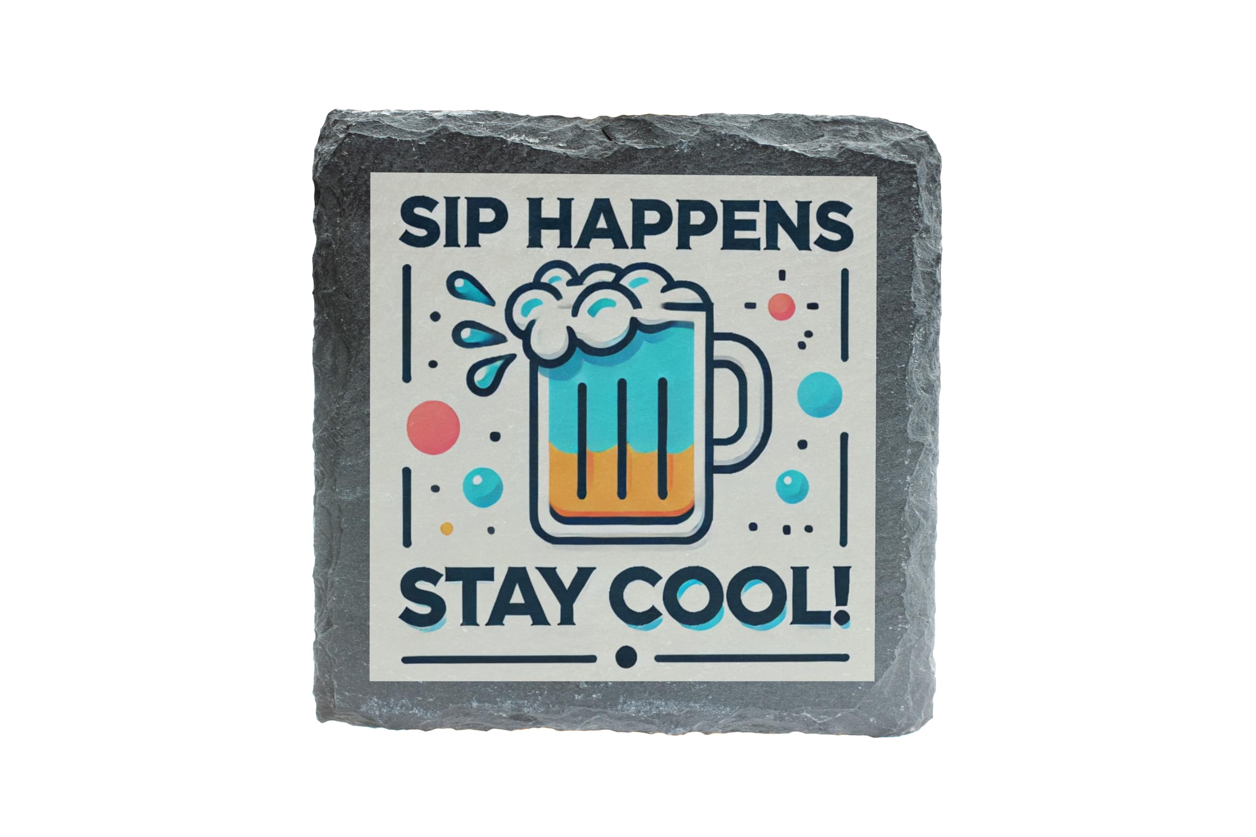 Sip Happens, Stay Cool! Slate Coaster ? Fun Beer Lover's Accessory (slco-ds24-staycoolrg)
