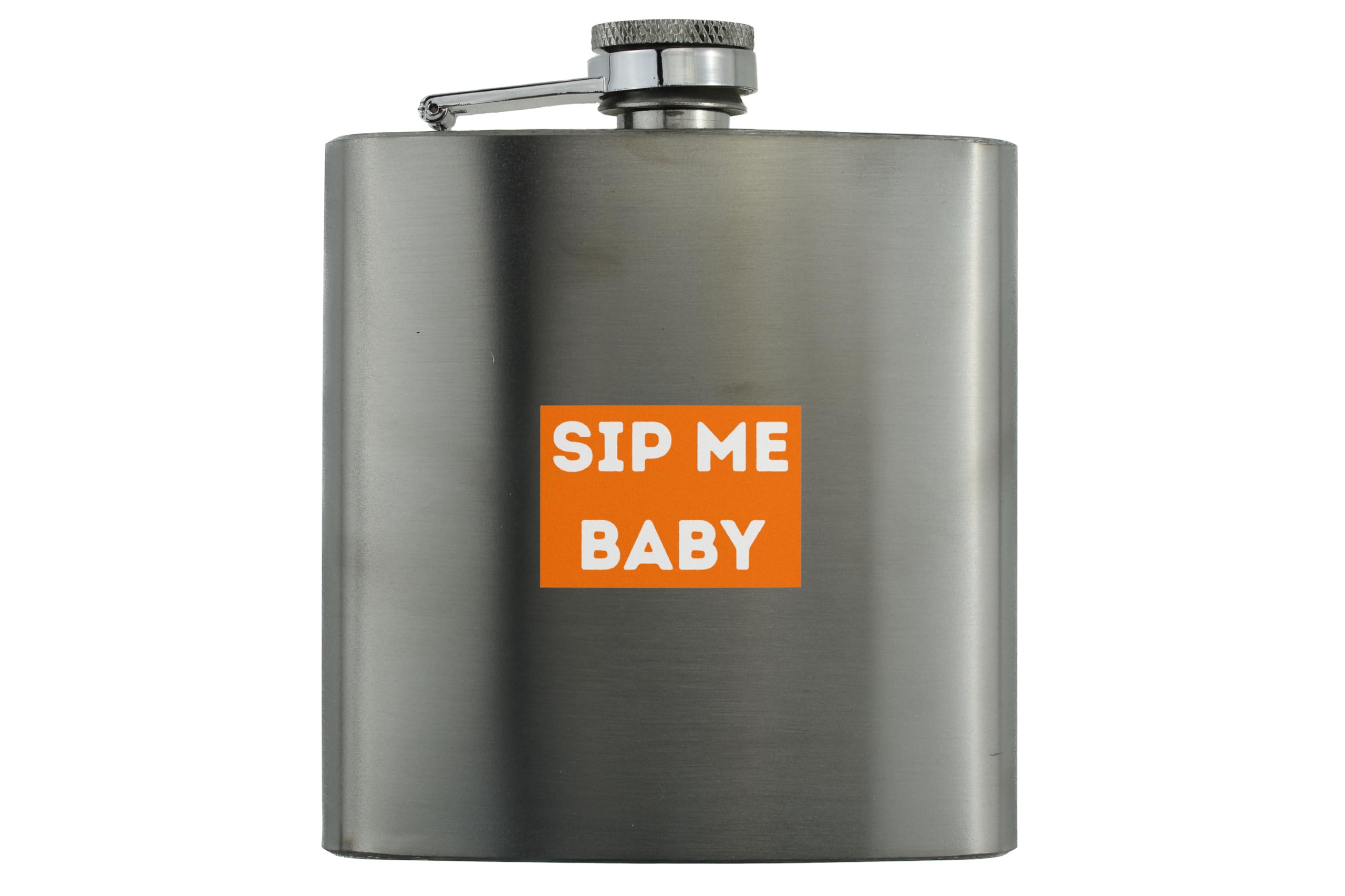 Introducing the Funniest 'Sip Me Baby' Hip Flask - Stainless Steel! This hilarious pun design hip flask is the perfect unique gift for your loved ones. Made with quality stainless steel, it is durable and will keep your favourite drinks like whiskey, rum, gin, and vodka perfectly chilled. The orange rectangular background with white writing adds a vibrant touch to this flask, making it stand out from the rest. Whether it's for your girlfriend, boyfriend, son, daughter, wife, husband, siblings, parents, grandparents, or even friends and family, this hip flask is sure to bring a smile to their faces. So, why wait? Grab one now and surprise your loved ones with this funny and novelty gift!