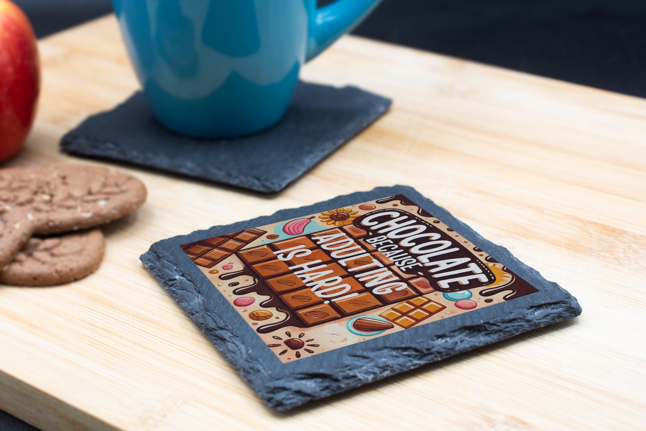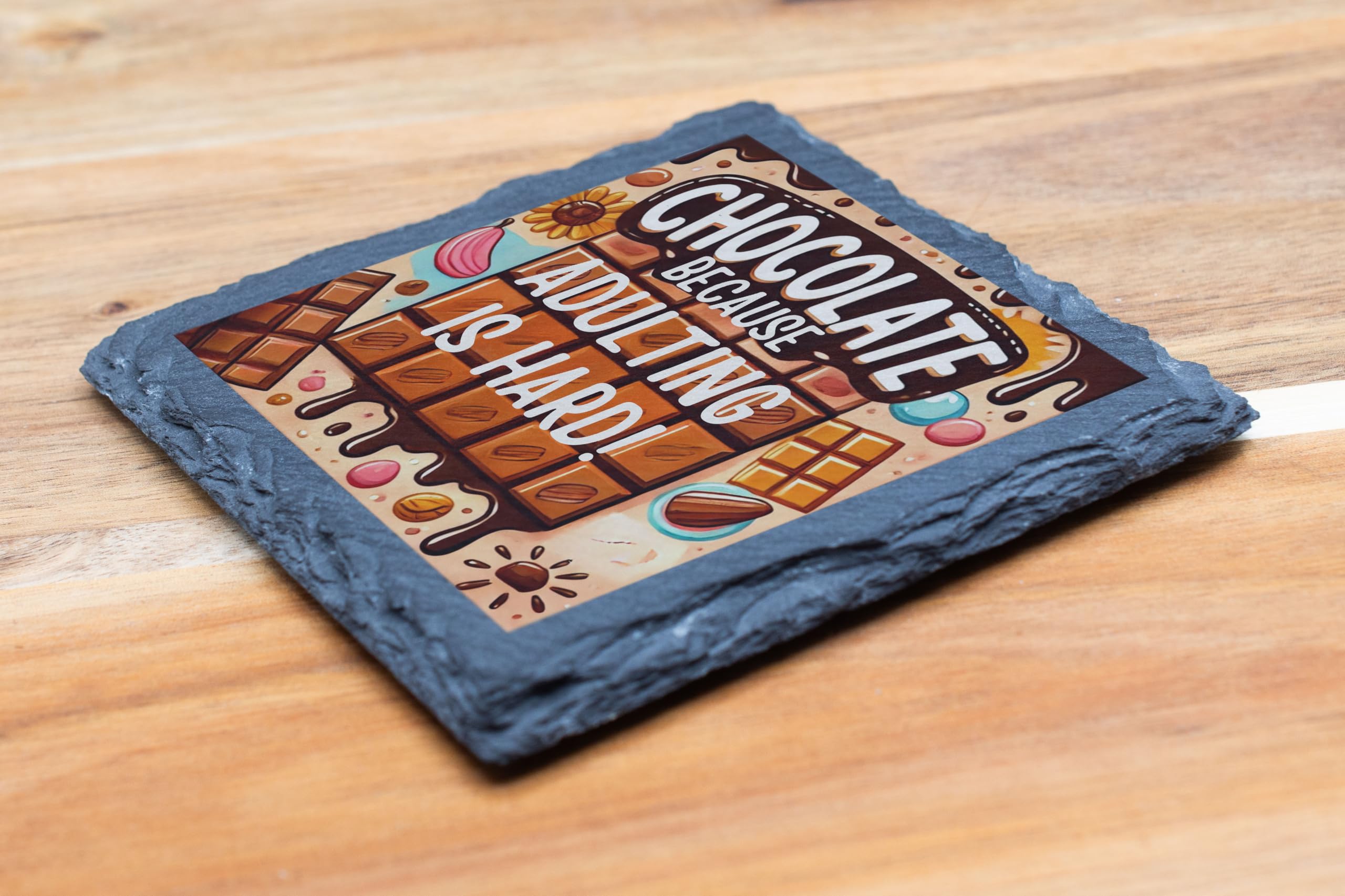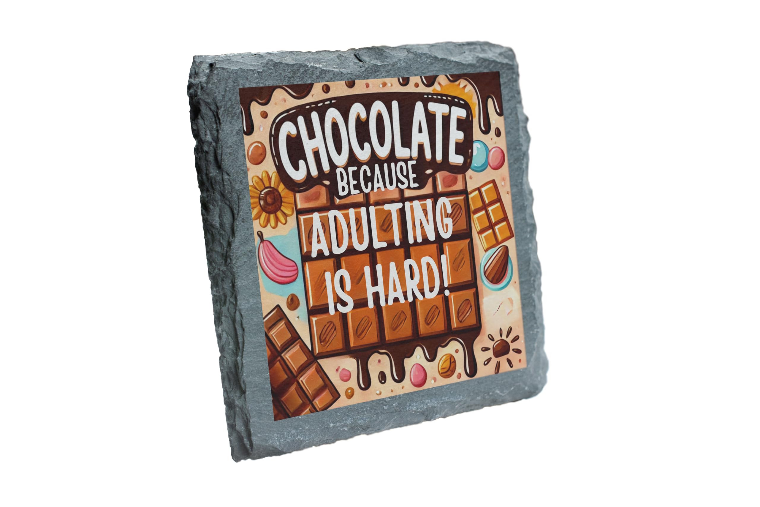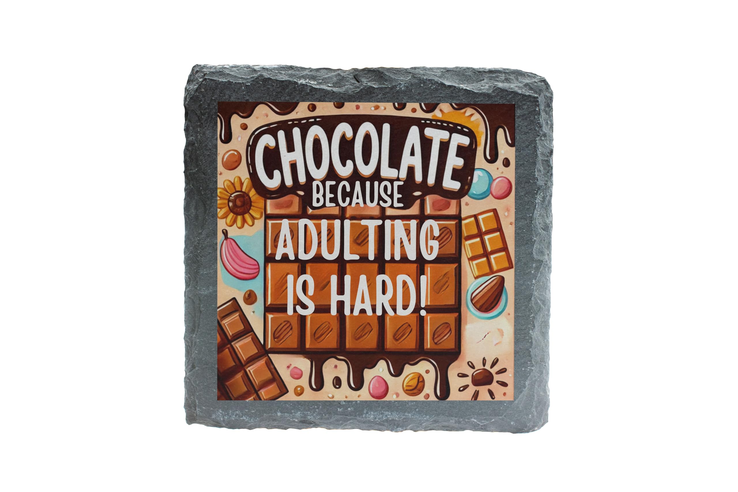 Slate Coaster - 'Chocolate Because Adulting is Hard!' Design (slco-kf25-chocolatehg)