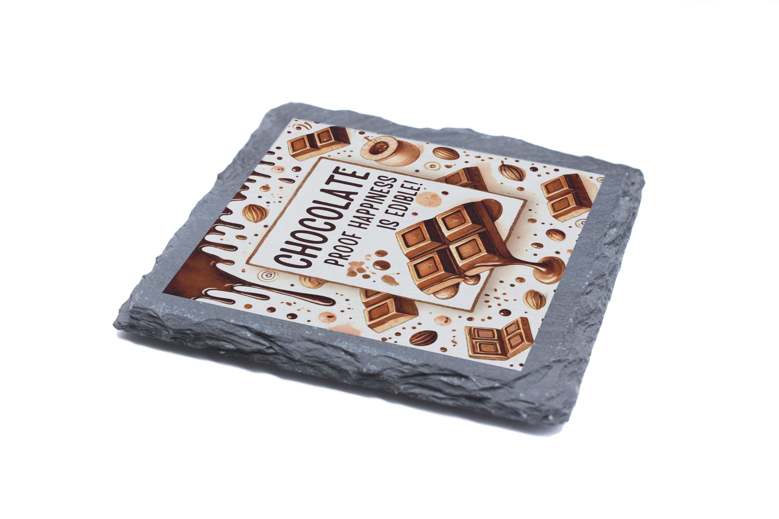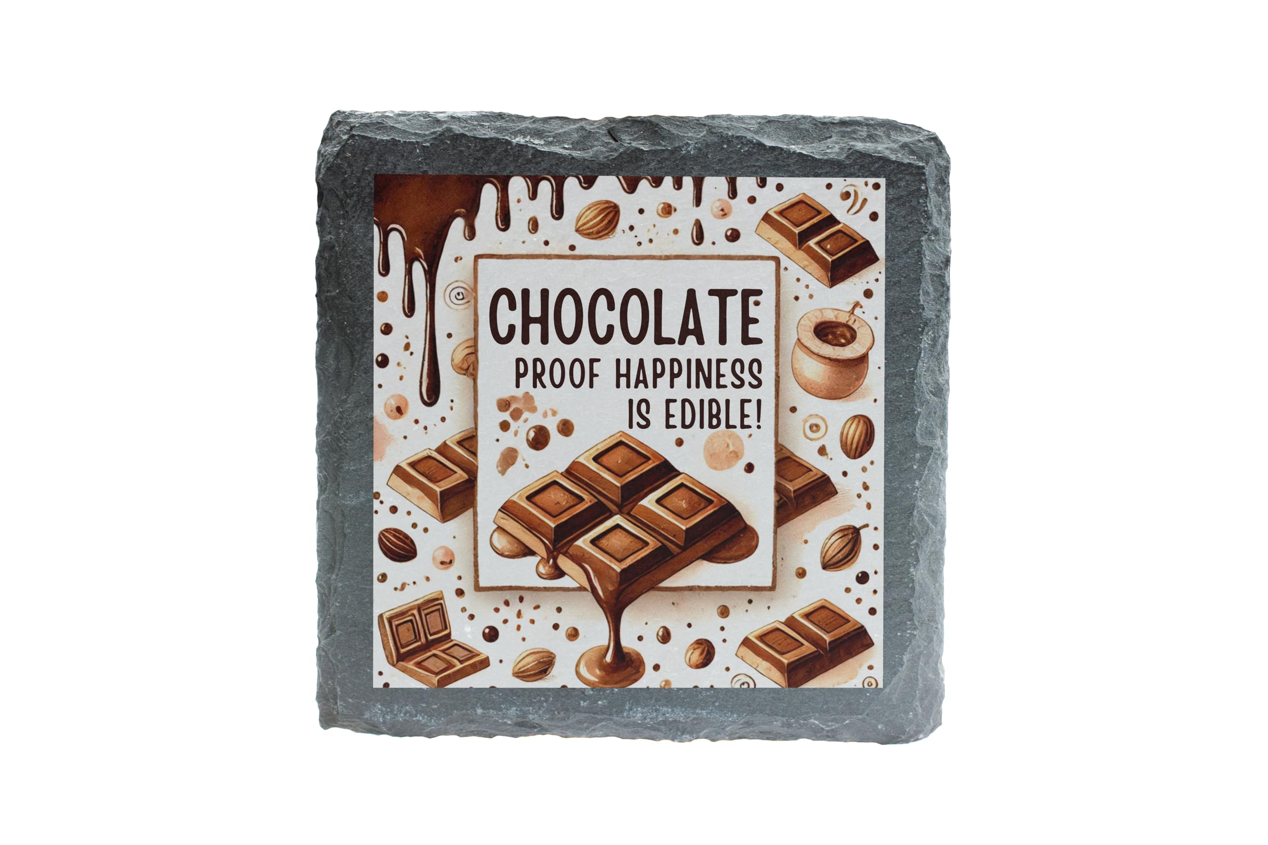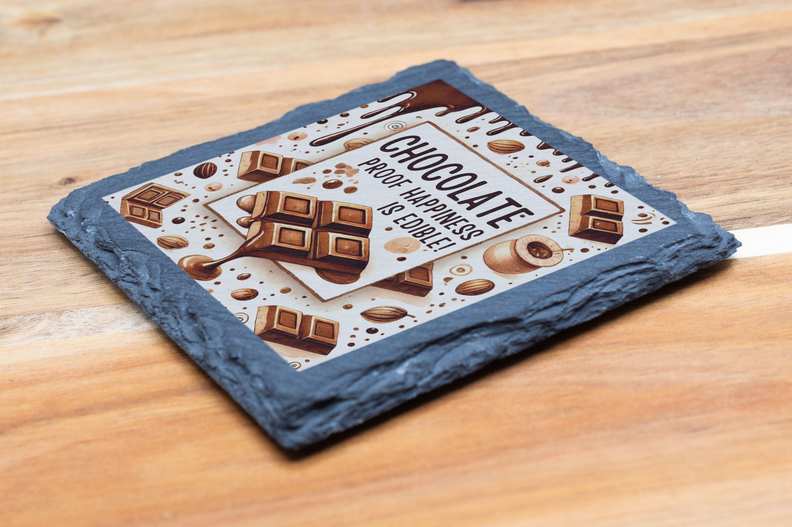 Add a touch of sweetness to your home with this charming slate coaster featuring the quote, "Chocolate: Proof Happiness Is Edible!" Its detailed chocolate-themed artwork is perfect for chocolate lovers who want to display their passion for all things cocoa in a humorous and stylish way. Crafted from premium slate, this coaster is both practical and durable, making it an excellent choice for protecting surfaces from spills and scratches. Whether you're treating yourself or gifting it to a chocolate enthusiast, this delightful coaster will spread smiles and sweet vibes every day.