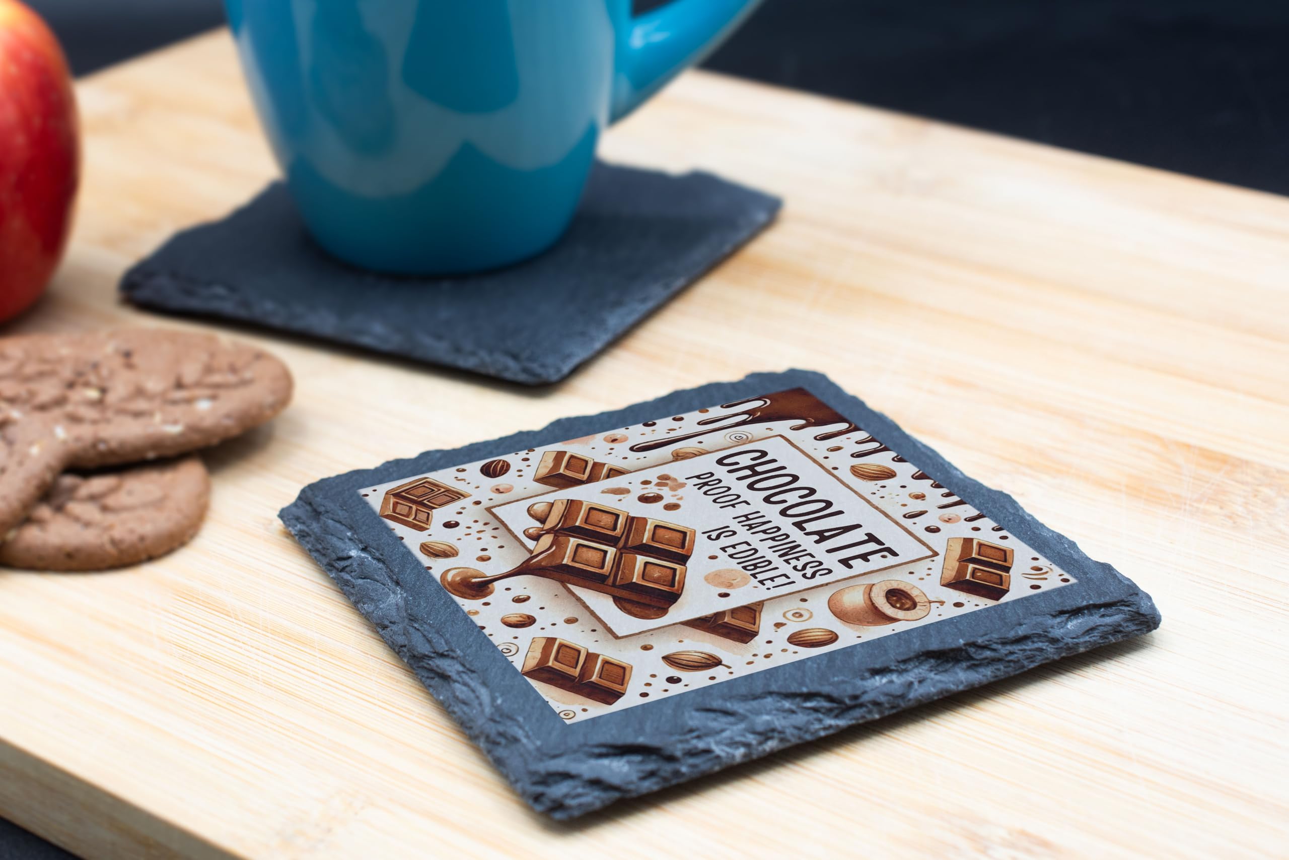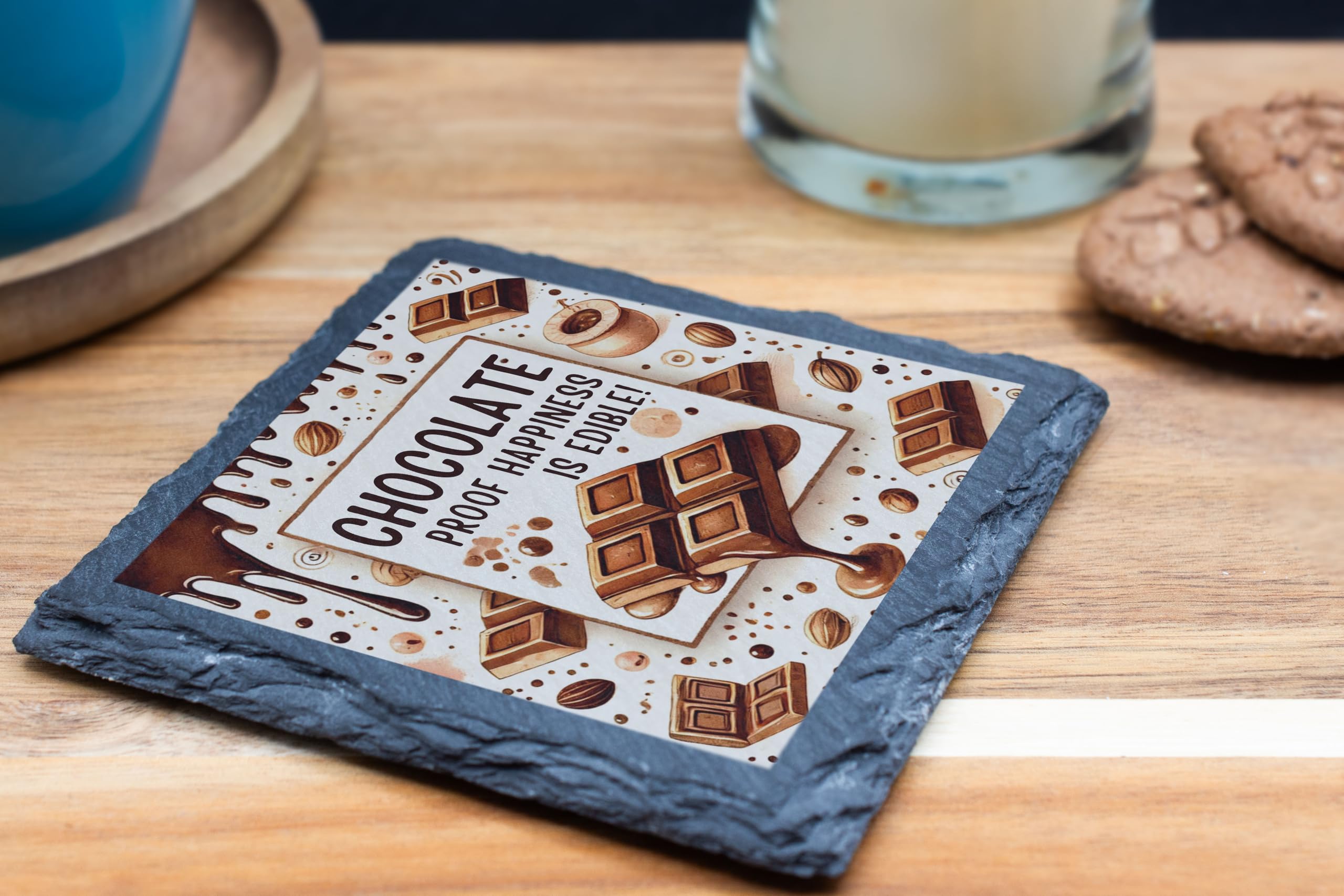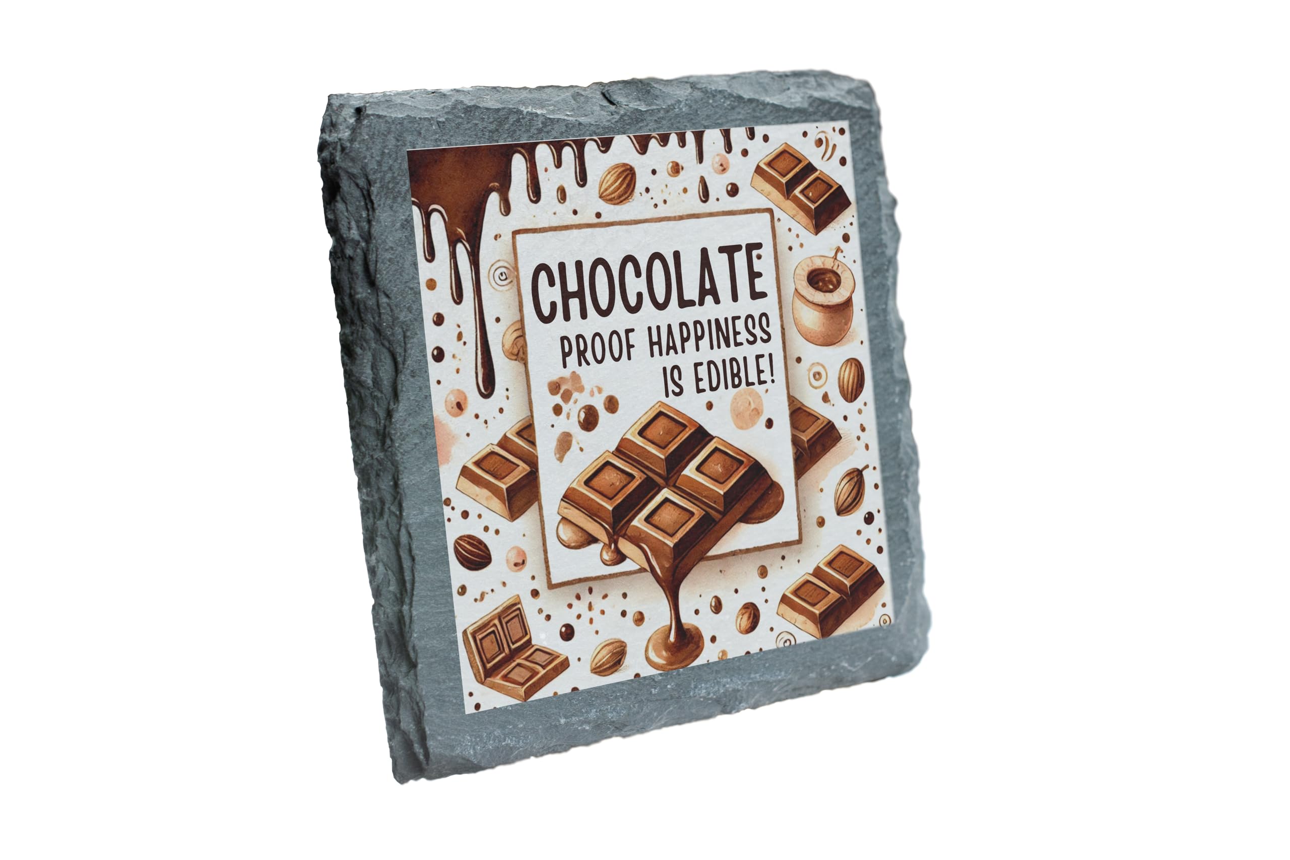 Add a touch of sweetness to your home with this charming slate coaster featuring the quote, "Chocolate: Proof Happiness Is Edible!" Its detailed chocolate-themed artwork is perfect for chocolate lovers who want to display their passion for all things cocoa in a humorous and stylish way. Crafted from premium slate, this coaster is both practical and durable, making it an excellent choice for protecting surfaces from spills and scratches. Whether you're treating yourself or gifting it to a chocolate enthusiast, this delightful coaster will spread smiles and sweet vibes every day.