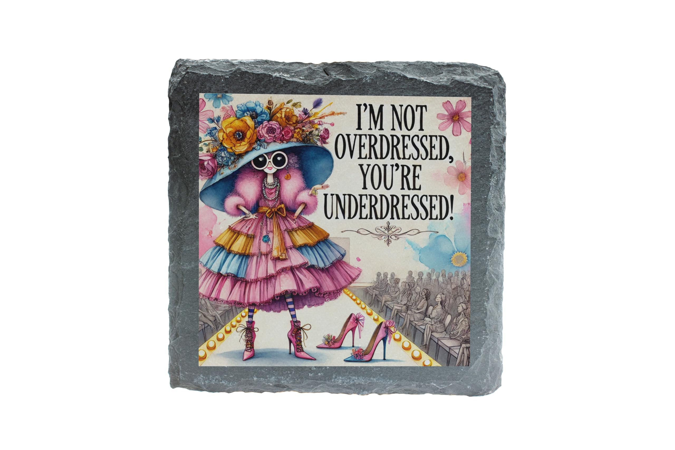 Slate Coaster - 'I'm Not Overdressed, You're Underdressed!' Quirky and Colorful Design (slco-kf25-overdressedhg)