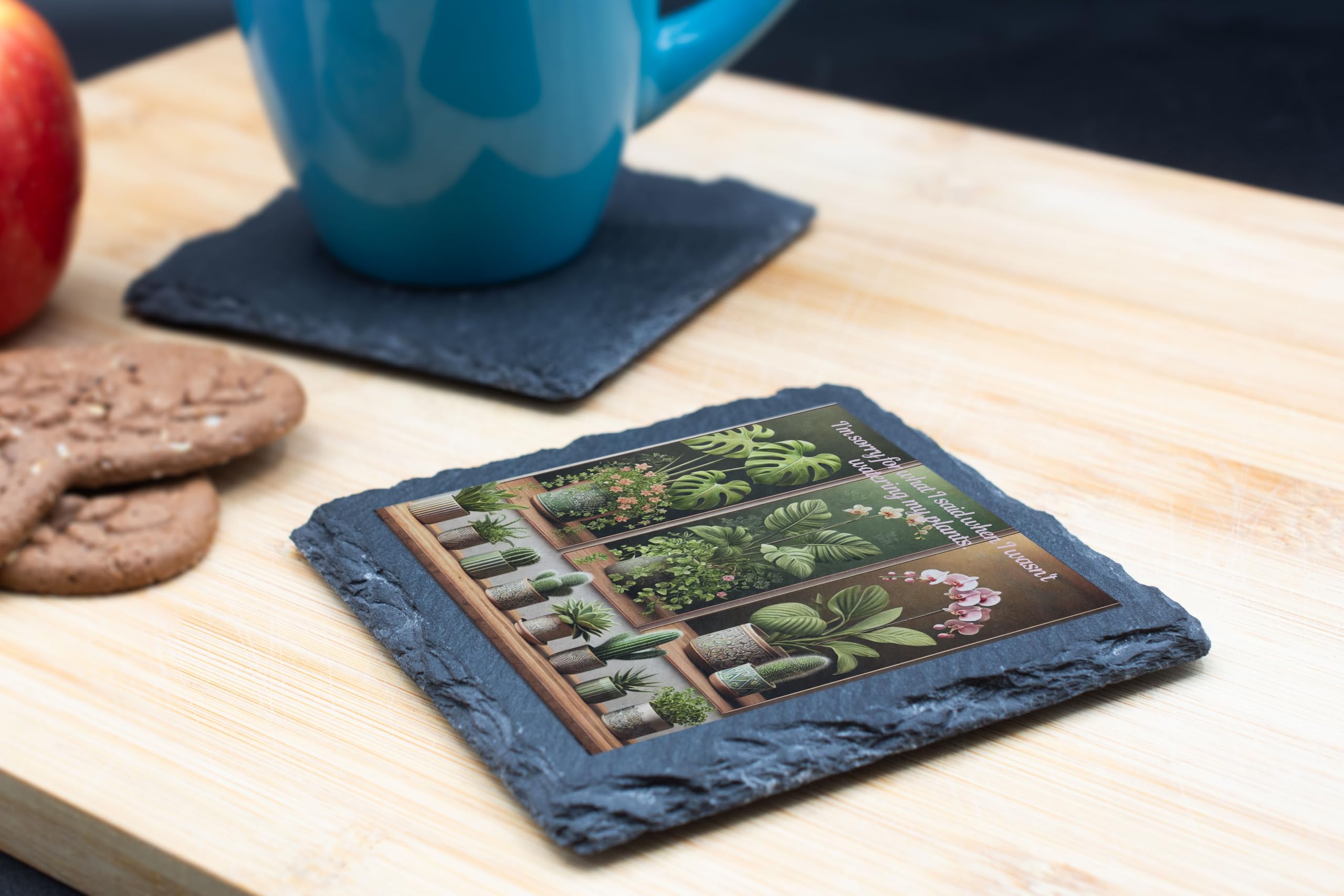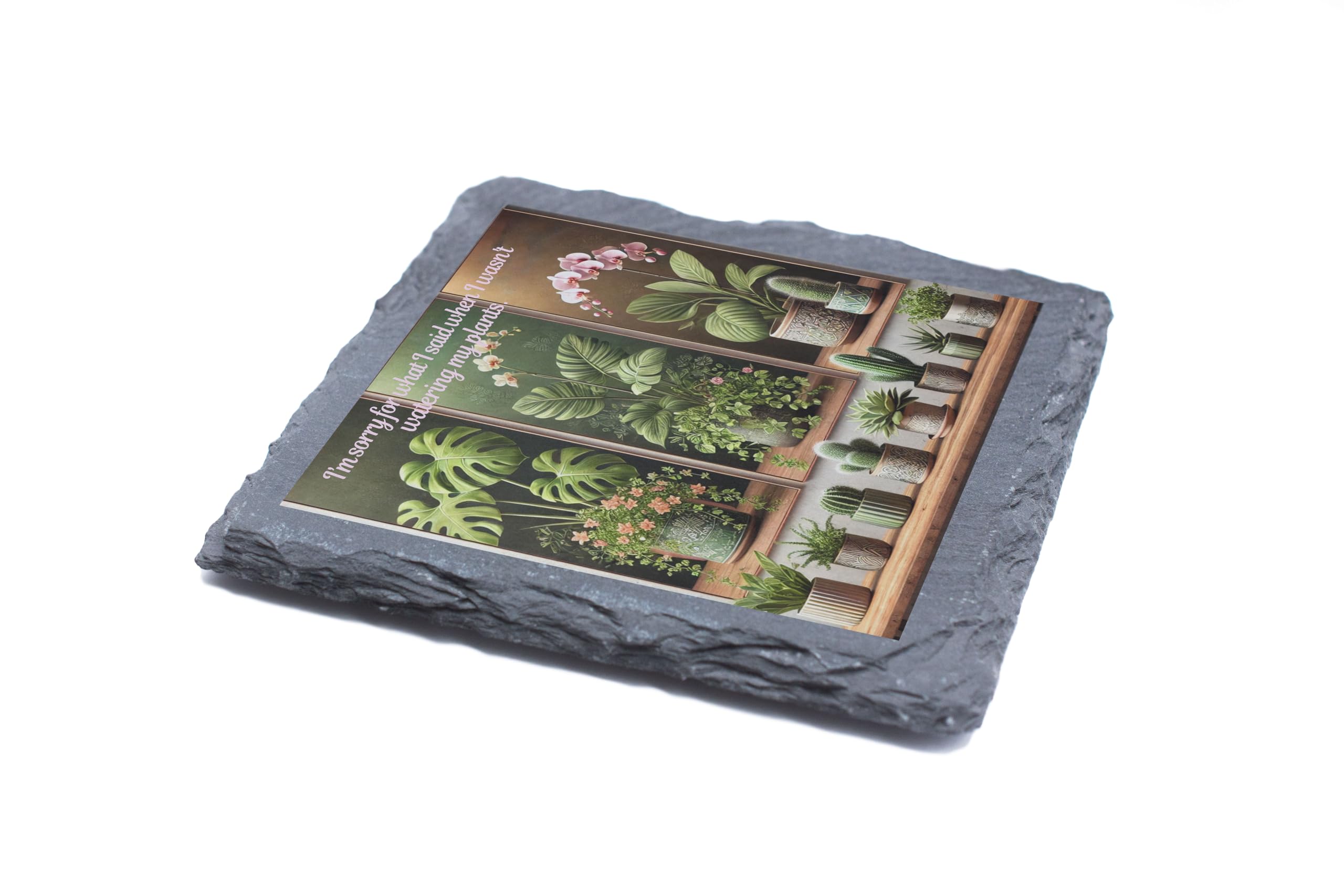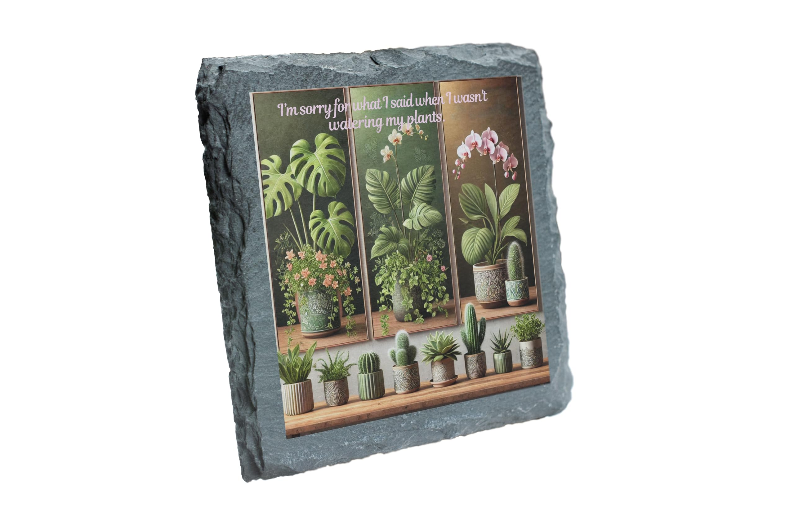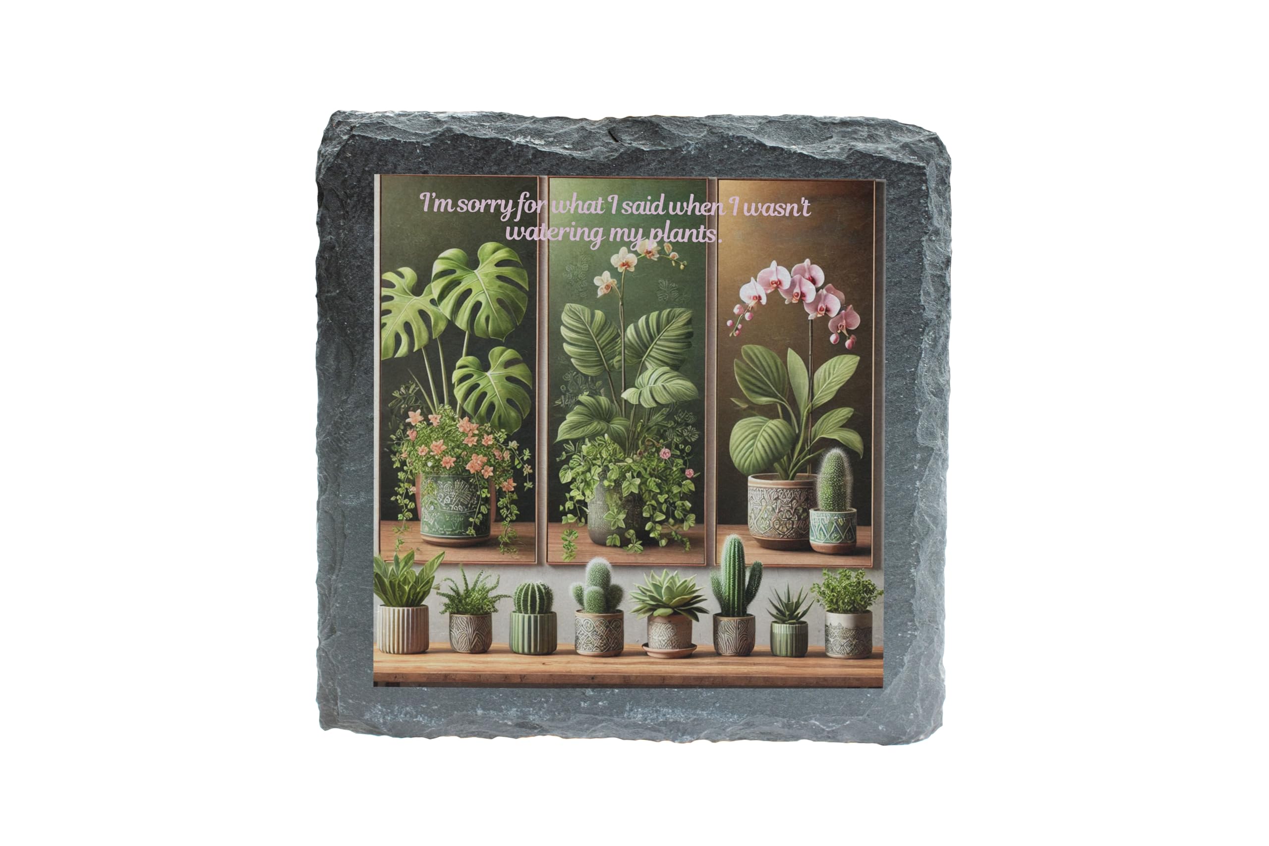 Slate Coaster - 'I'm Sorry for What I Said While Watering My Plants' Botanical Design (slco-kf25-sorryplantshg)