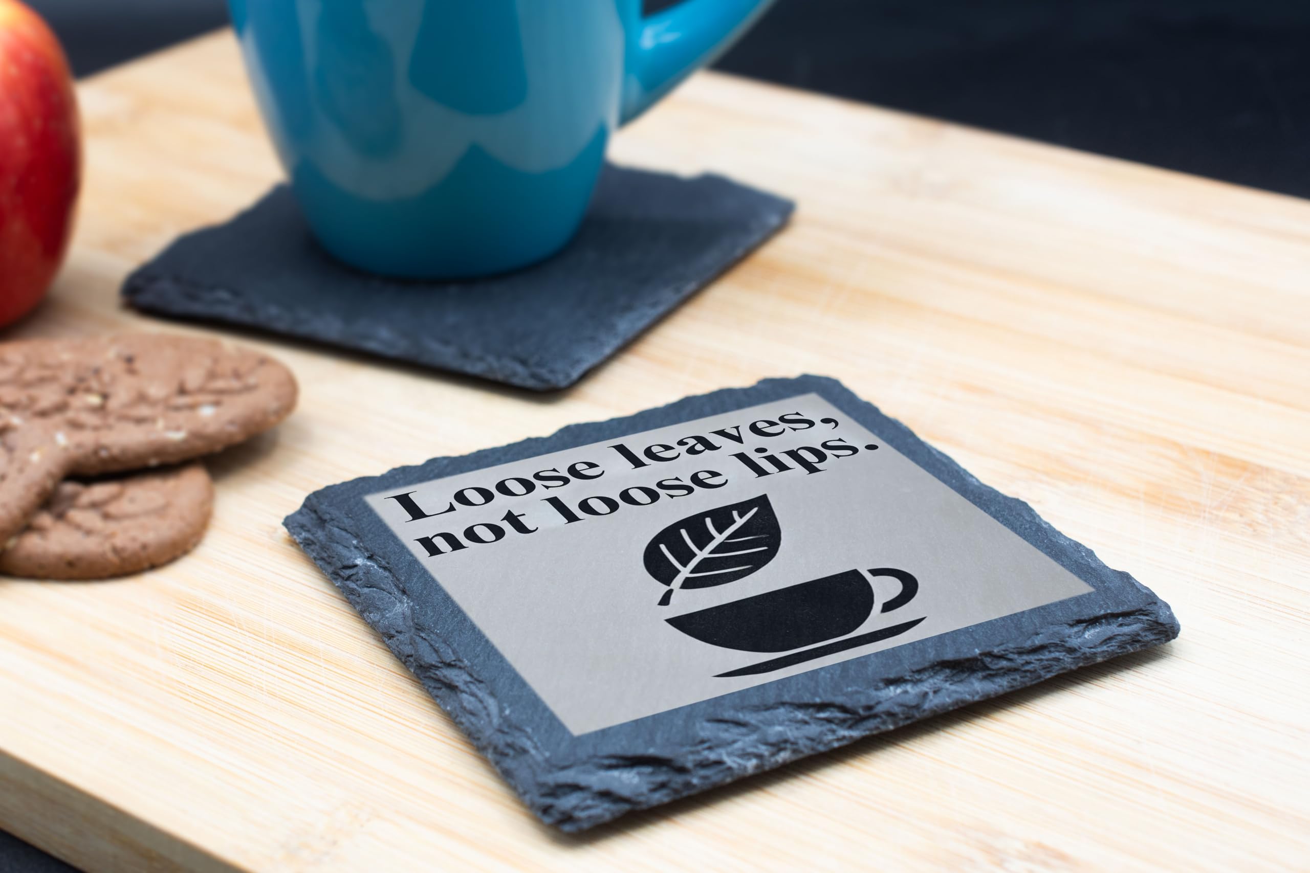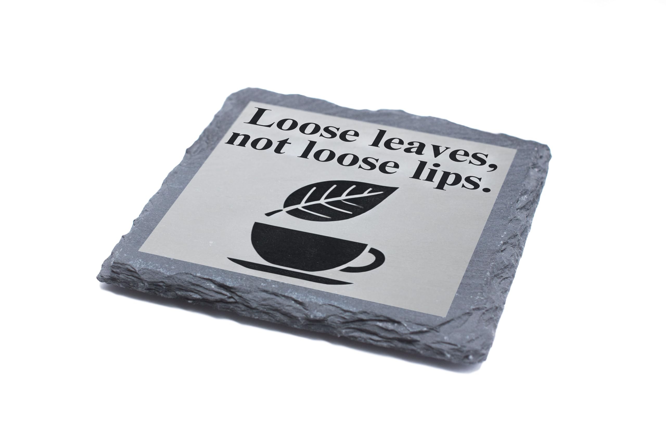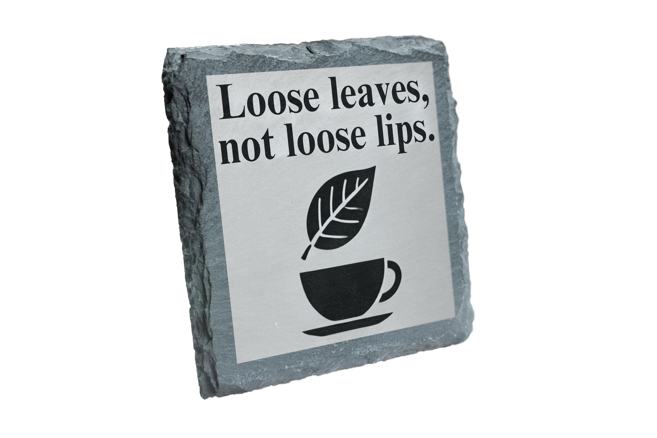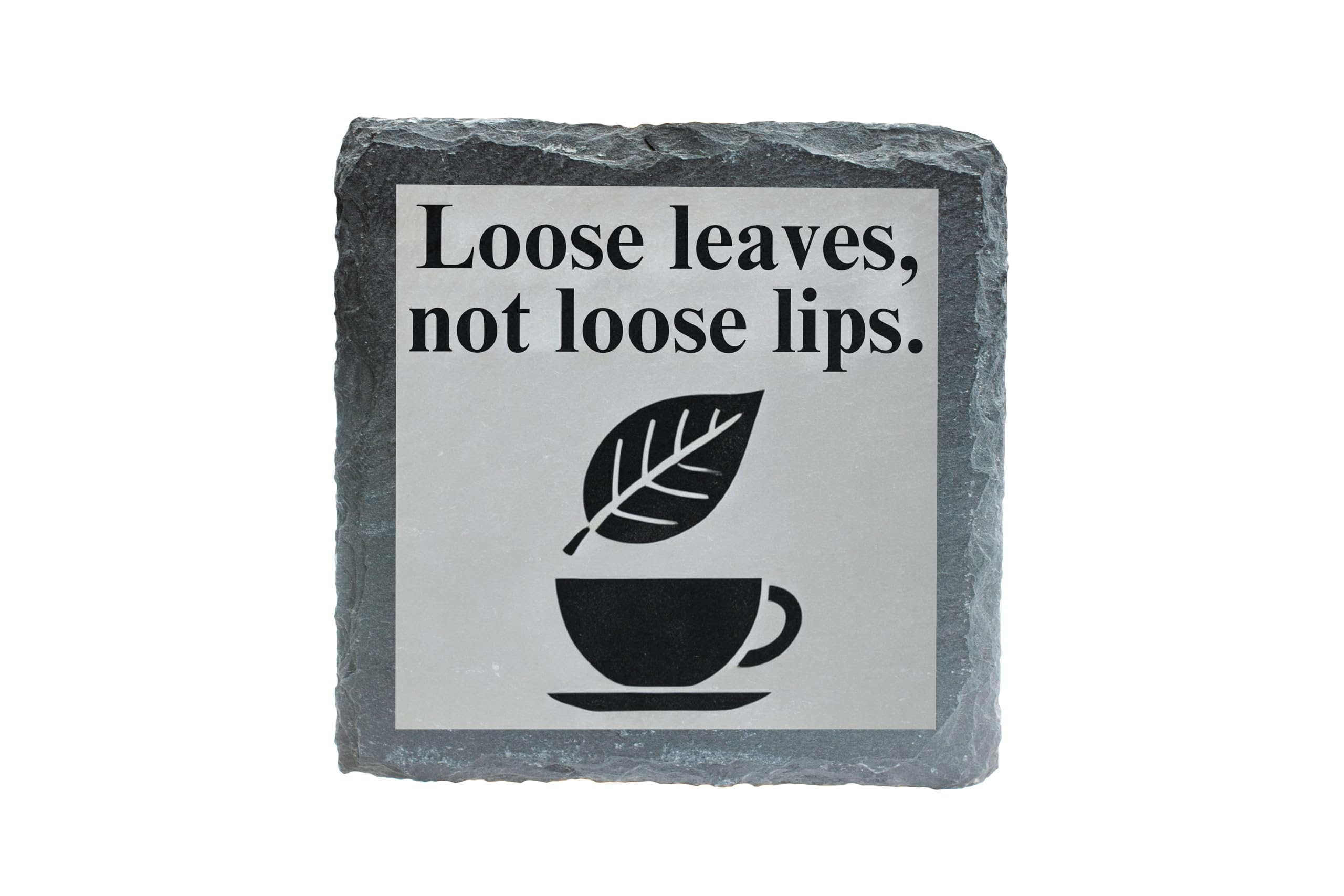 Slate Coaster - 'Loose Leaves, Not Loose Lips' Tea Lover's Design (slco-ds24-looselipsrg)