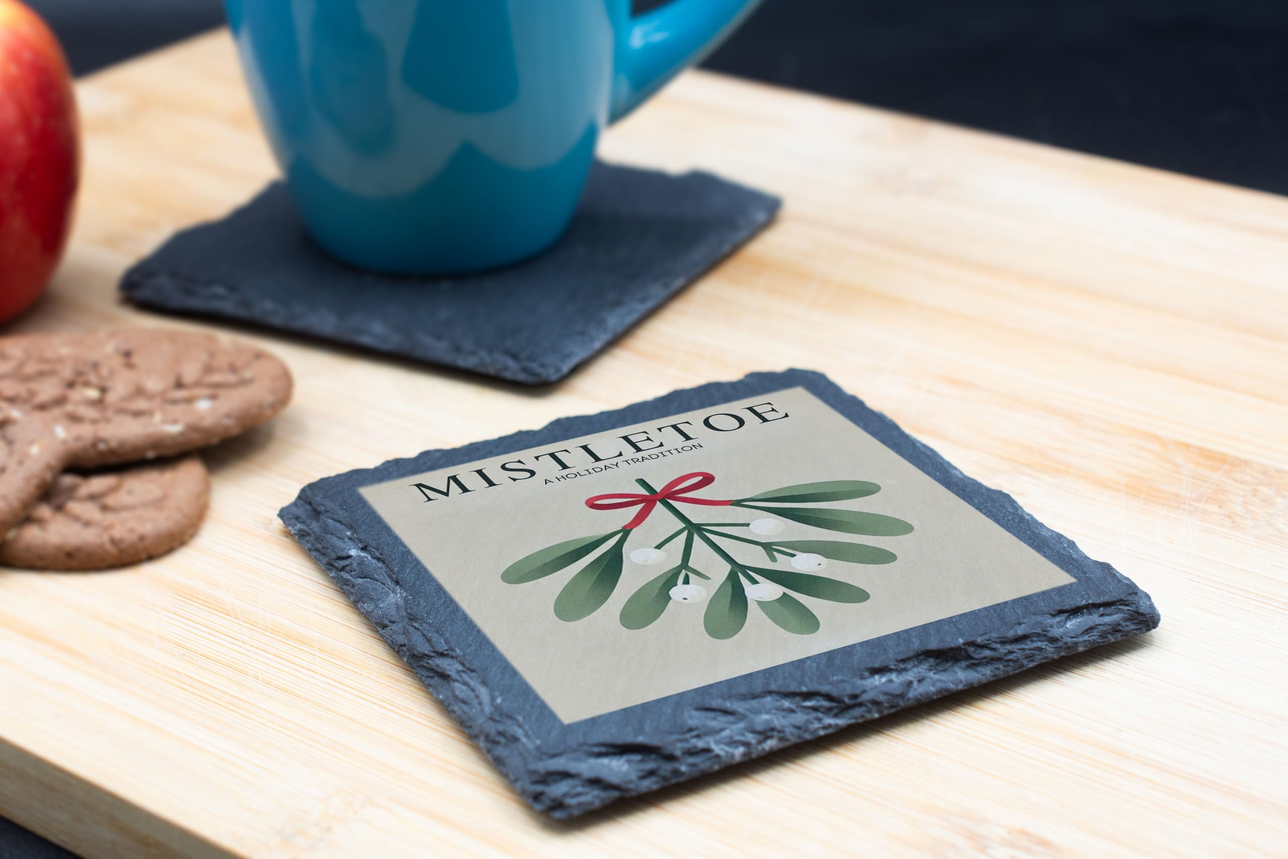 Celebrate the joy of the holiday season with this beautifully designed slate coaster featuring a timeless mistletoe illustration and the phrase "A Holiday Tradition." Its understated elegance adds a touch of festive charm to your home, making it a perfect addition to your seasonal decor. Made from high-quality natural slate, this coaster is not only stylish but also functional. It protects your furniture from spills, heat, and scratches, ensuring your surfaces stay in perfect condition during your holiday gatherings. Its rustic texture pairs wonderfully with the cozy ambiance of Christmas. This slate coaster makes an excellent holiday gift or stocking stuffer for friends, family, or coworkers. Whether used as a decorative piece or a practical item, it?s a festive reminder of the warmth and traditions of the season. Add a touch of holiday cheer to your home or gift list with this unique slate coaster!