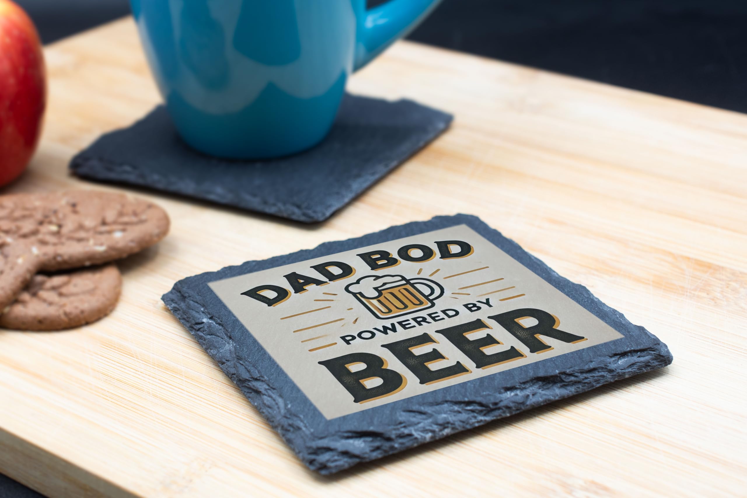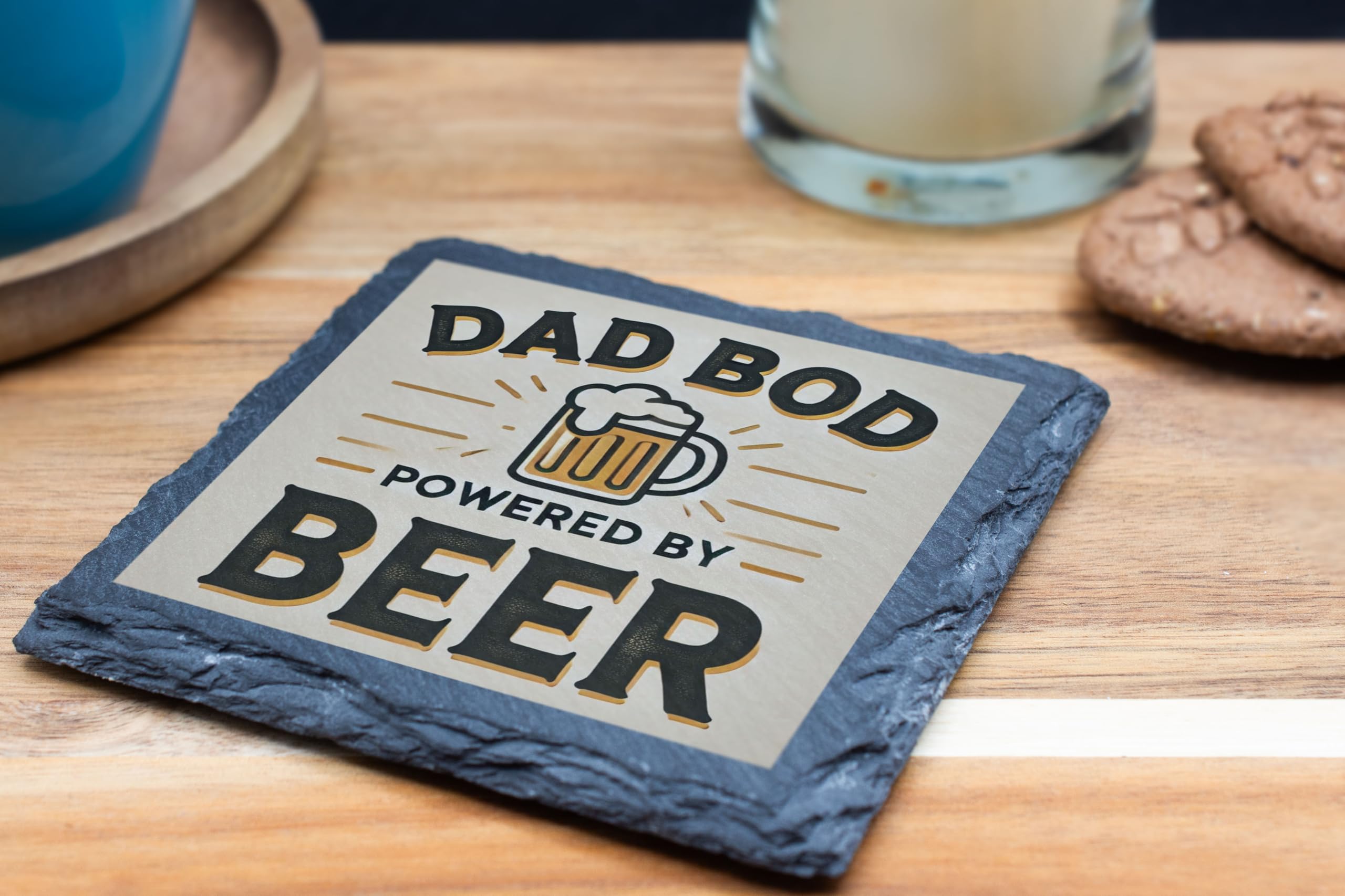 Slate Coaster with 'Dad Bod Powered by Beer' Design ? Fun Gift for Dads (slco-ds24-dadbodrg)