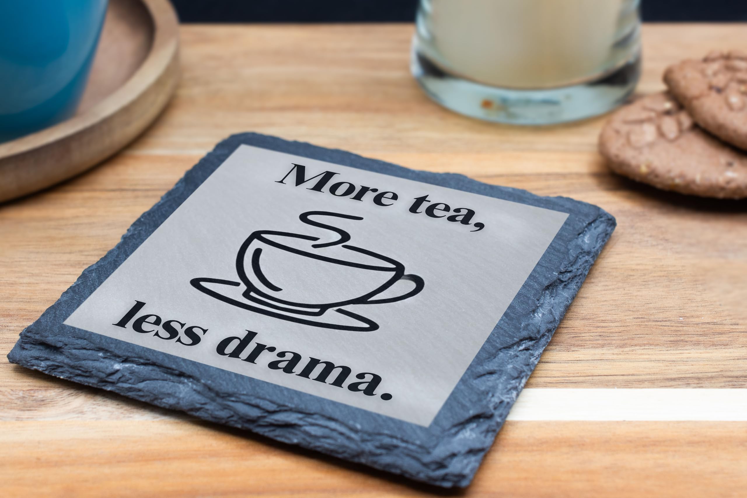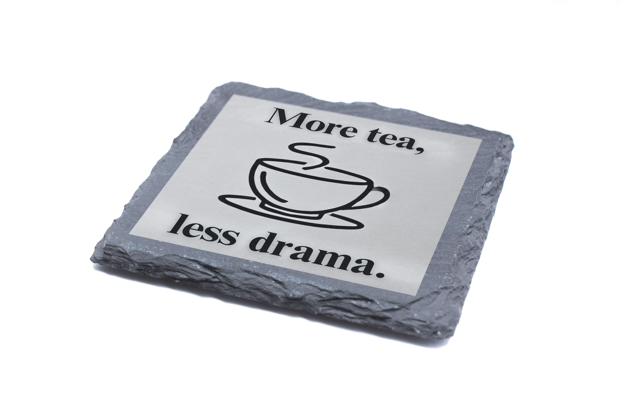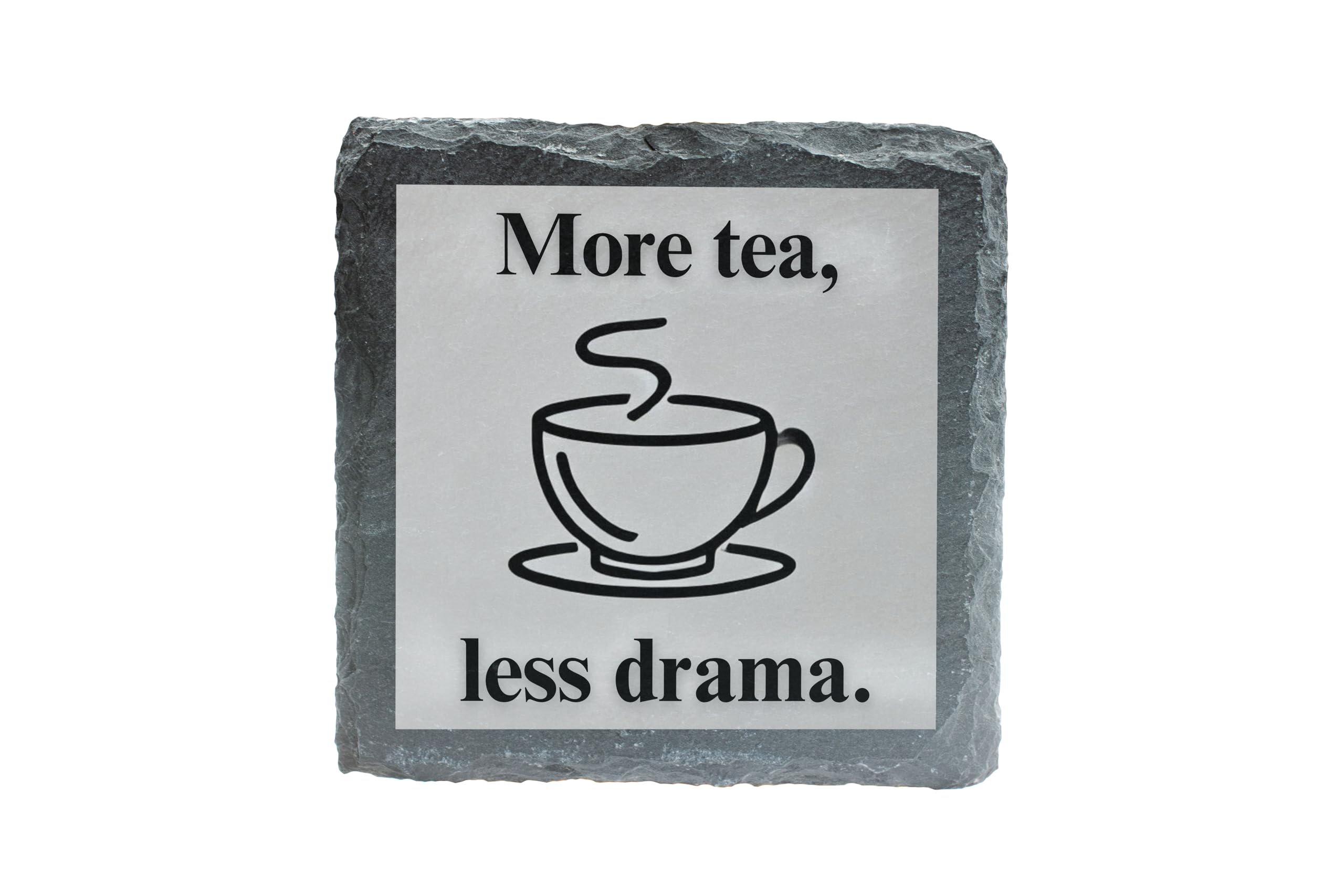 Slate Coaster with 'More Tea, Less Drama' Design ? Fun Tea Lover Gift (slco-ds24-dracmarg)