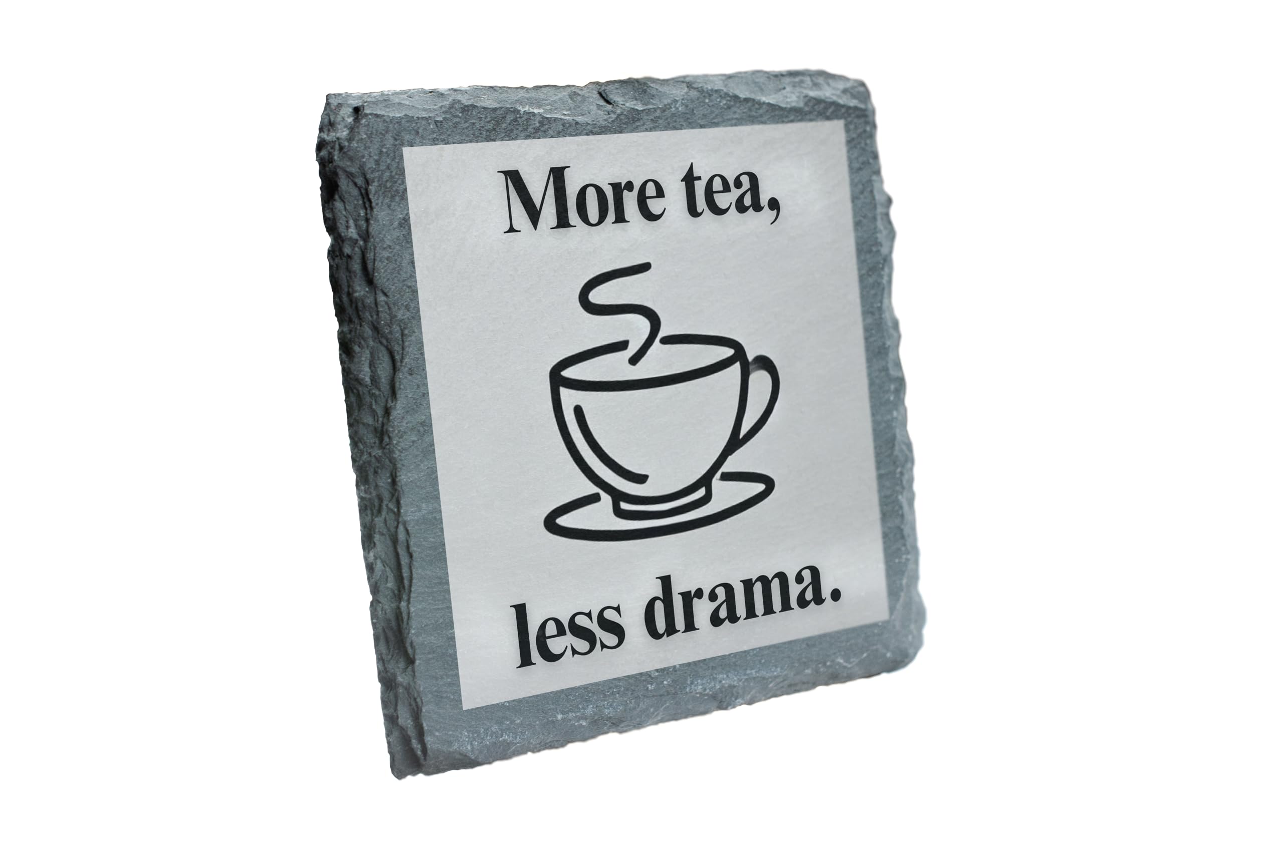 Elevate your tea time with this beautifully crafted slate coaster, showcasing the witty and calming message, "More Tea, Less Drama." Designed for tea lovers who appreciate a touch of humor, this coaster not only protects surfaces but also serves as a charming decorative piece. Crafted from high-quality natural slate, it is durable, easy to clean, and perfect for any setting ? whether at home or in the office. A thoughtful gift for tea enthusiasts, it adds warmth and personality to any space while promoting a serene vibe.