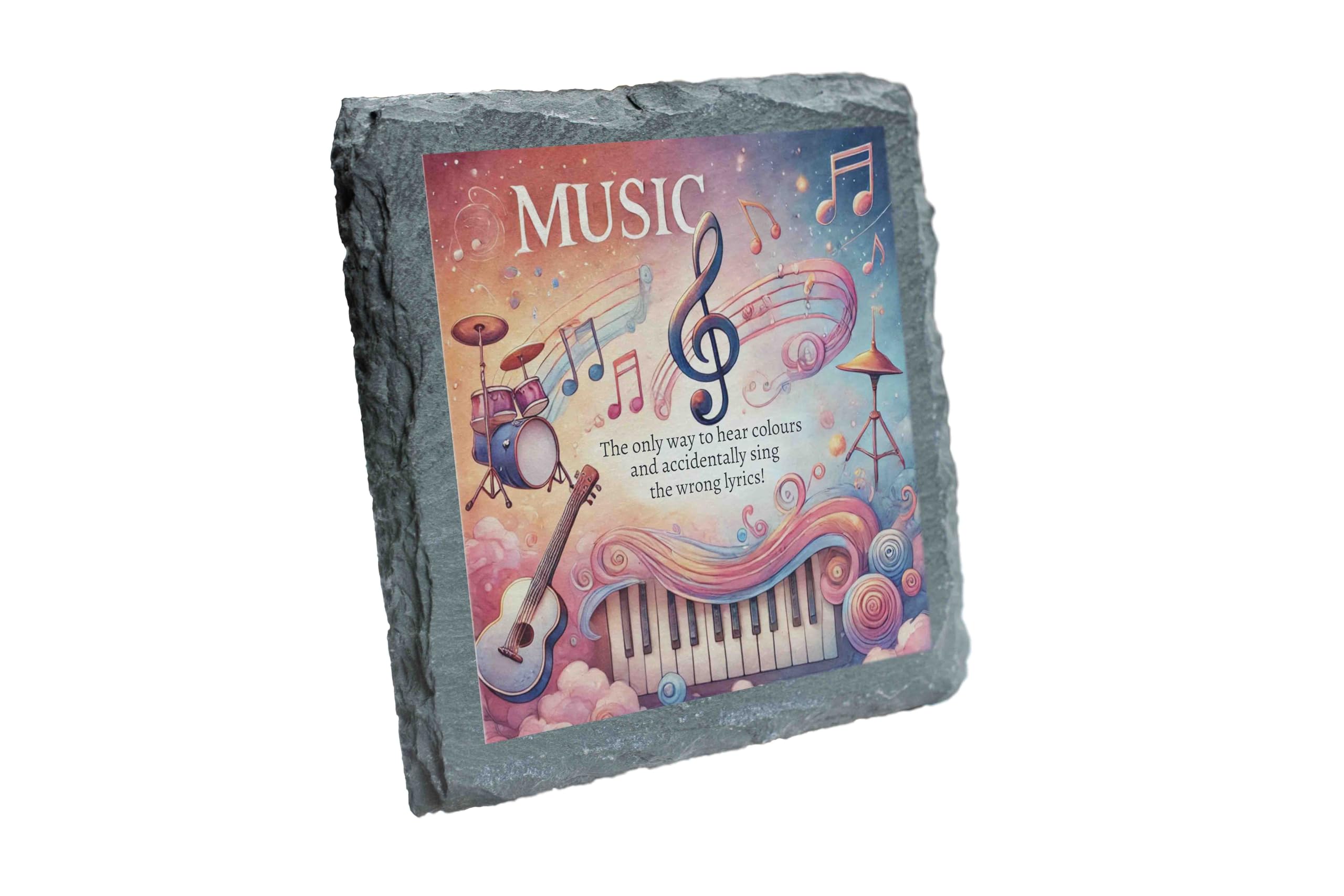 Slate Coaster with Music Design - 'The Only Way to Hear Colours' (slco-kf25-hearcolourshg)
