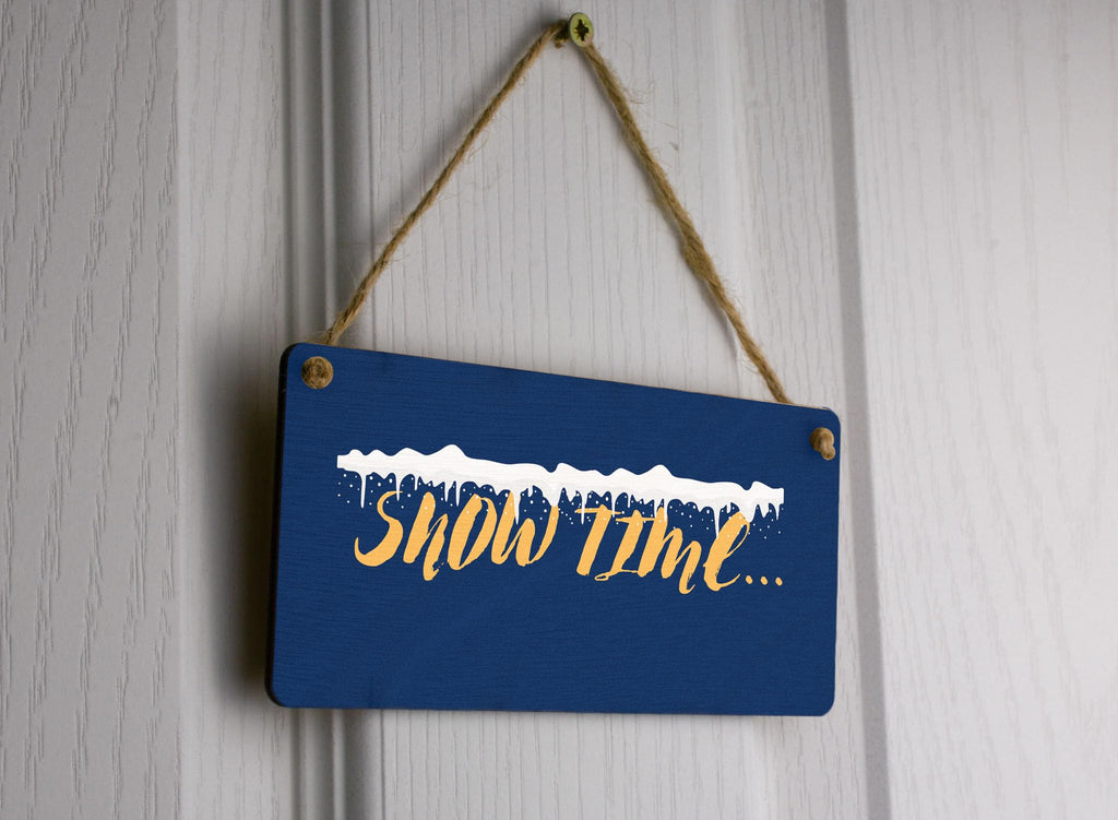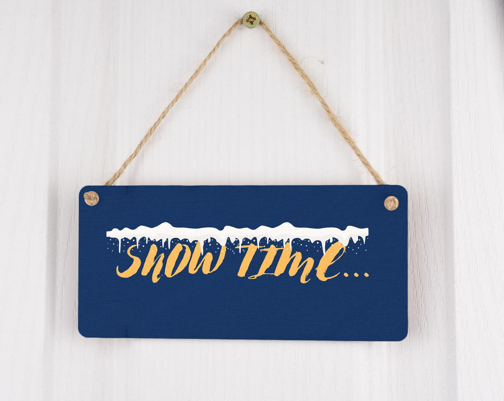 'Snow Time' Plywood Hanging Sign - Festive Christmas Idea for Home and Family (smslgn-ds23-snowtime)