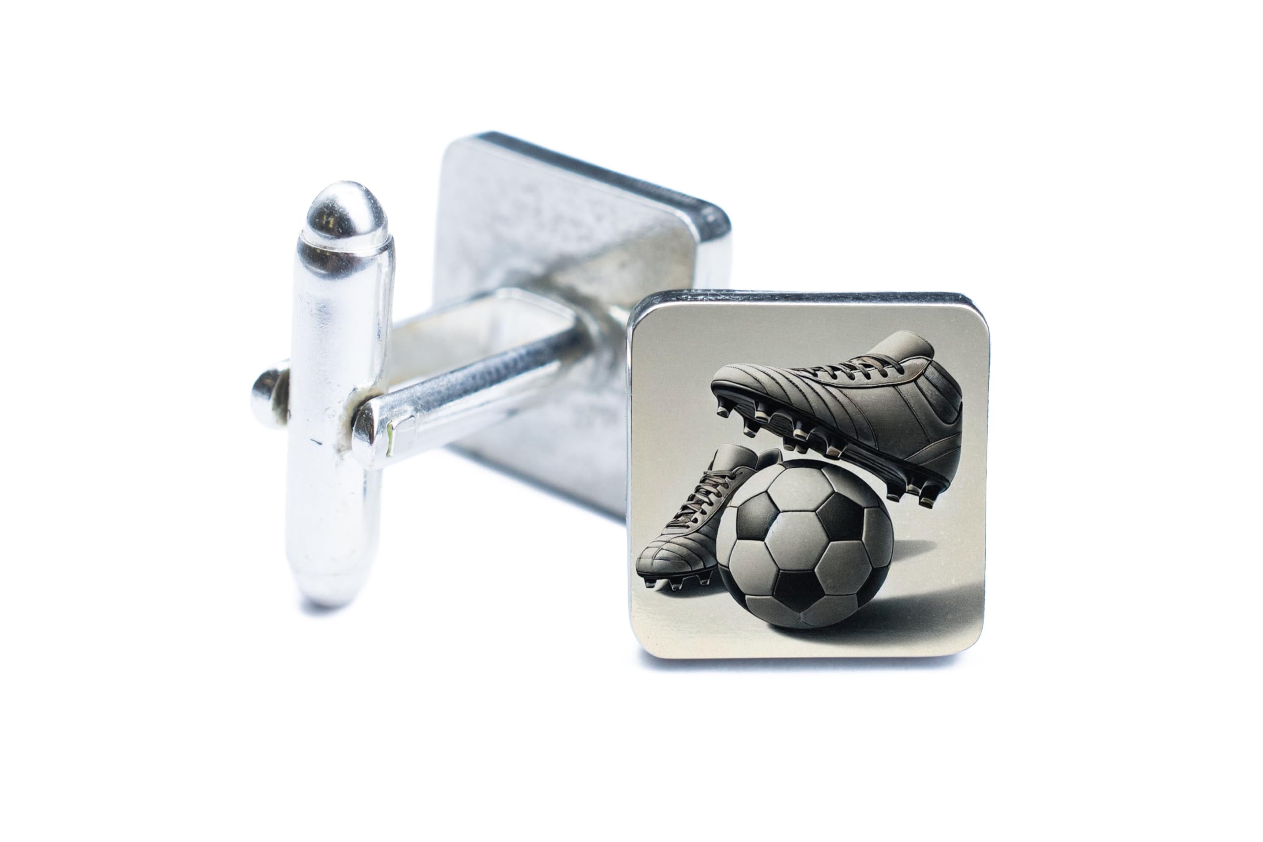 Celebrate your passion for soccer with these stylish cufflinks featuring a football boot and ball design. Crafted with precision and care, these cufflinks are the perfect accessory for any soccer lover looking to showcase their enthusiasm, whether on the field or at a formal event. Made from high-quality materials and designed for durability, these cufflinks are built to last and retain their polished shine. A thoughtful gift for soccer players, fans, and coaches, they come beautifully packaged in a gift box, ready to make any occasion special.