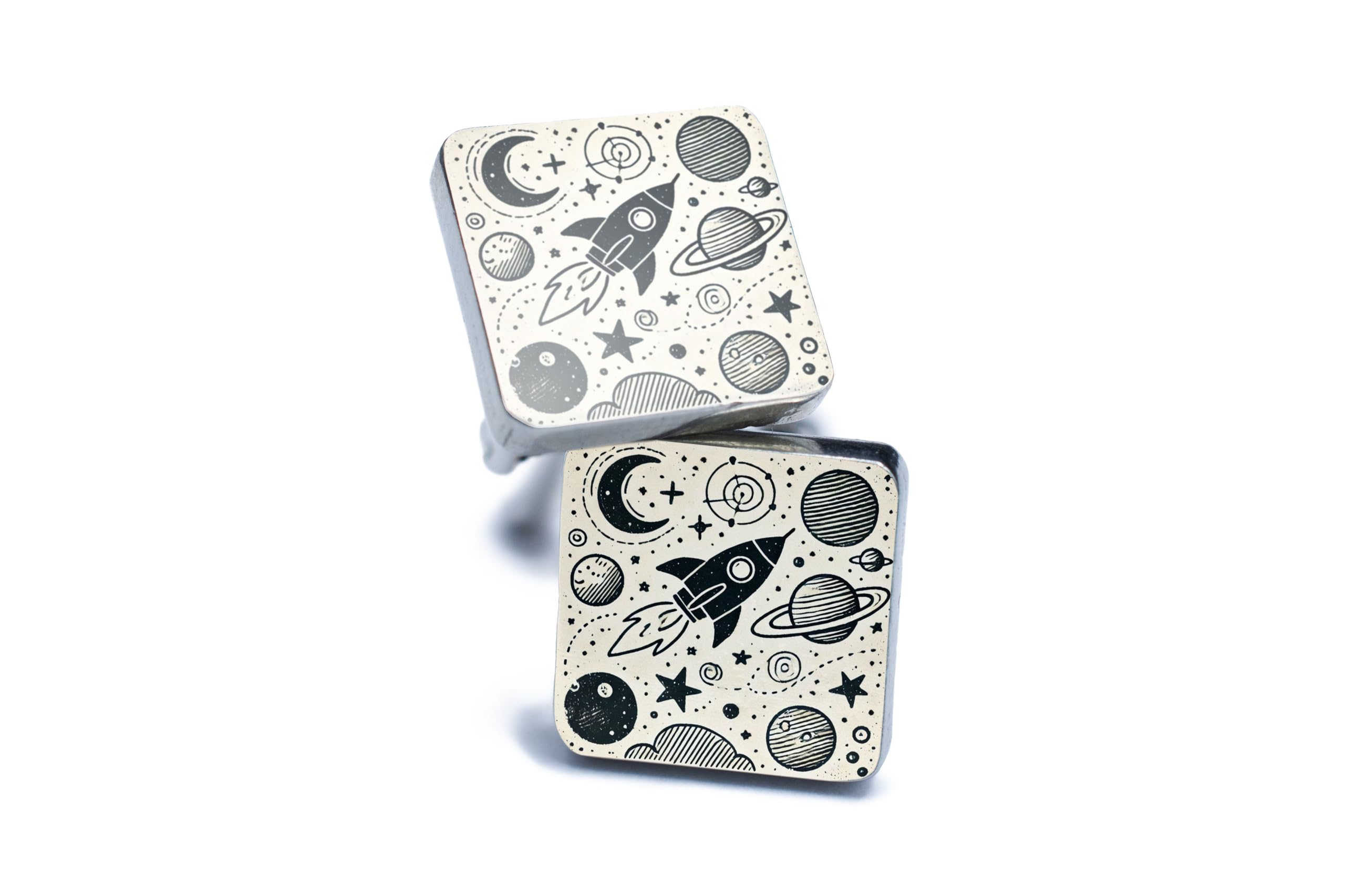 Take your style out of this world with these Space Explorer Cufflinks, a tribute to the infinite wonders of the universe. The design captures a rocket soaring through a detailed galaxy scene, surrounded by planets, stars, and moons. Whether you're an astronomy enthusiast, a sci-fi fan, or simply someone who dreams of the stars, these cufflinks are a perfect way to showcase your love for the cosmos. Ideal for formal events, office wear, or as a thoughtful gift for space lovers, these cufflinks add a bold, celestial charm to your ensemble. Embark on a stylish journey through the universe with this interstellar accessory!