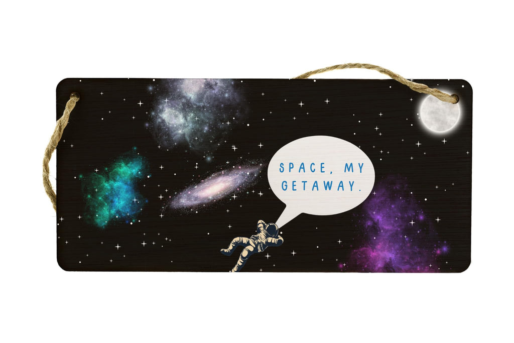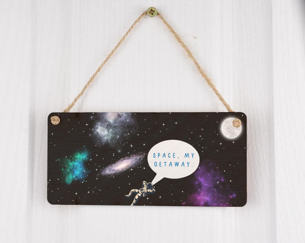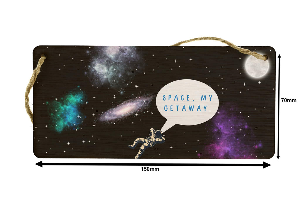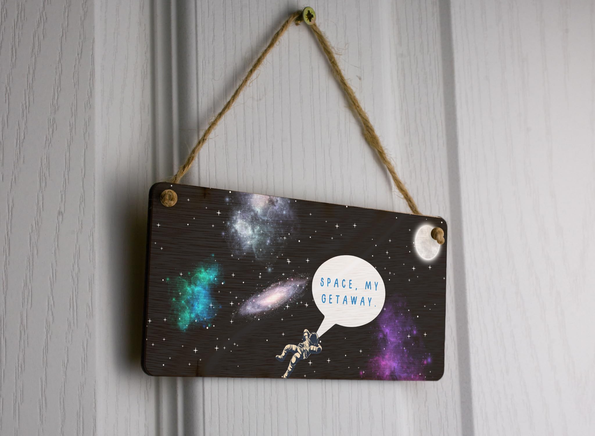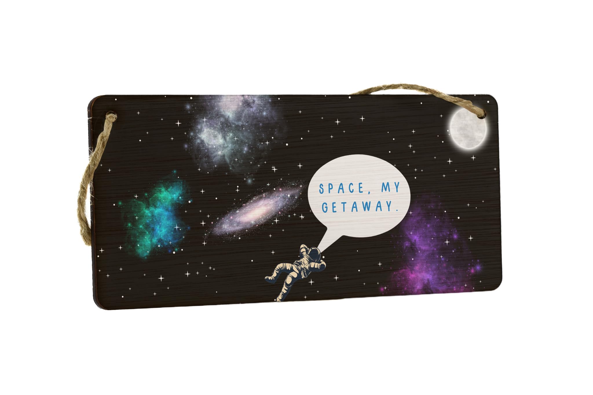Space My Getaway Plywood Hanging Sign - Home Decor Idea for Bedroom, Living Room, Kitchen, Teens, Family - Space Theme Novelty Idea (smlsgn-ds23-spaceget)