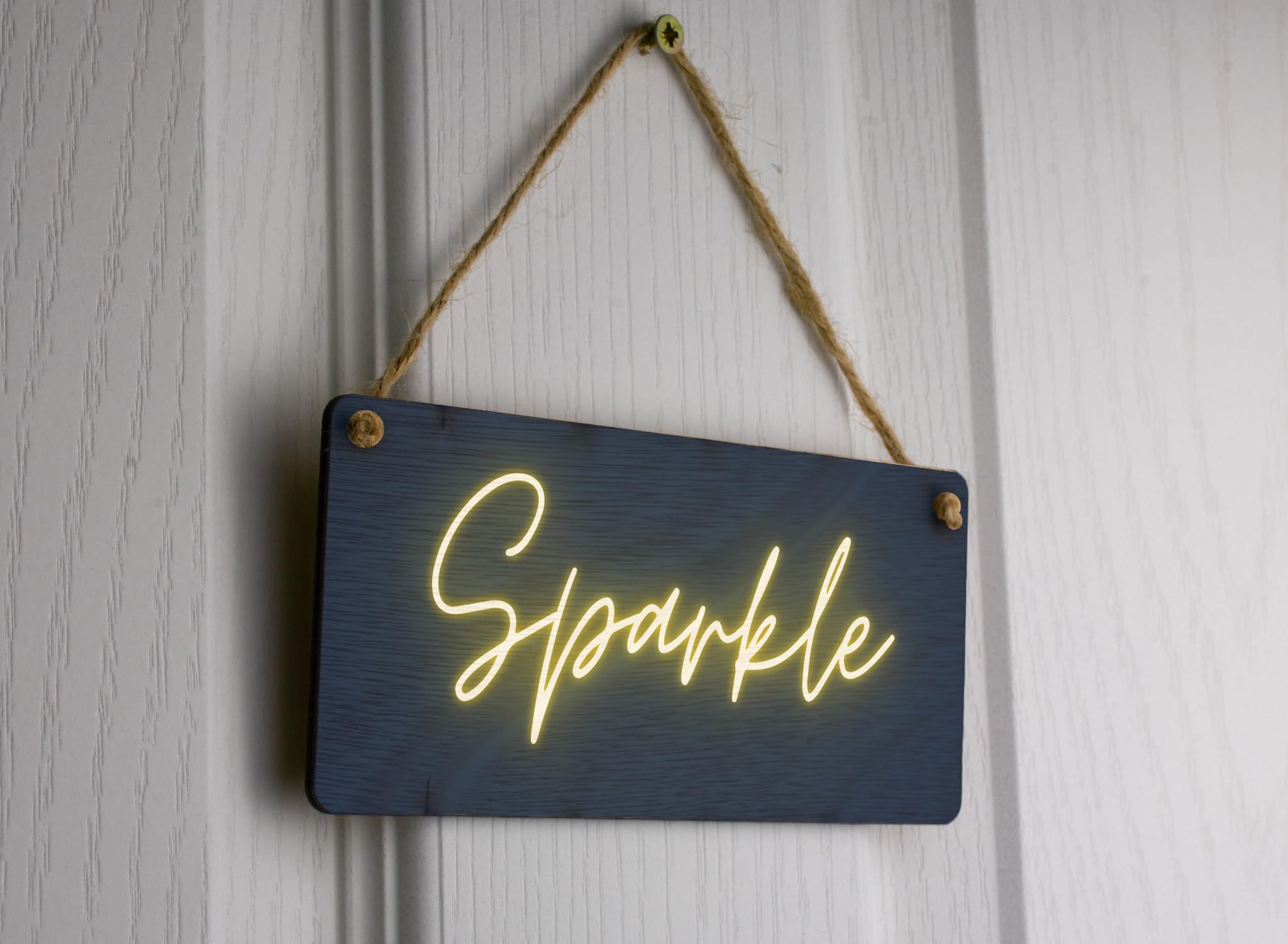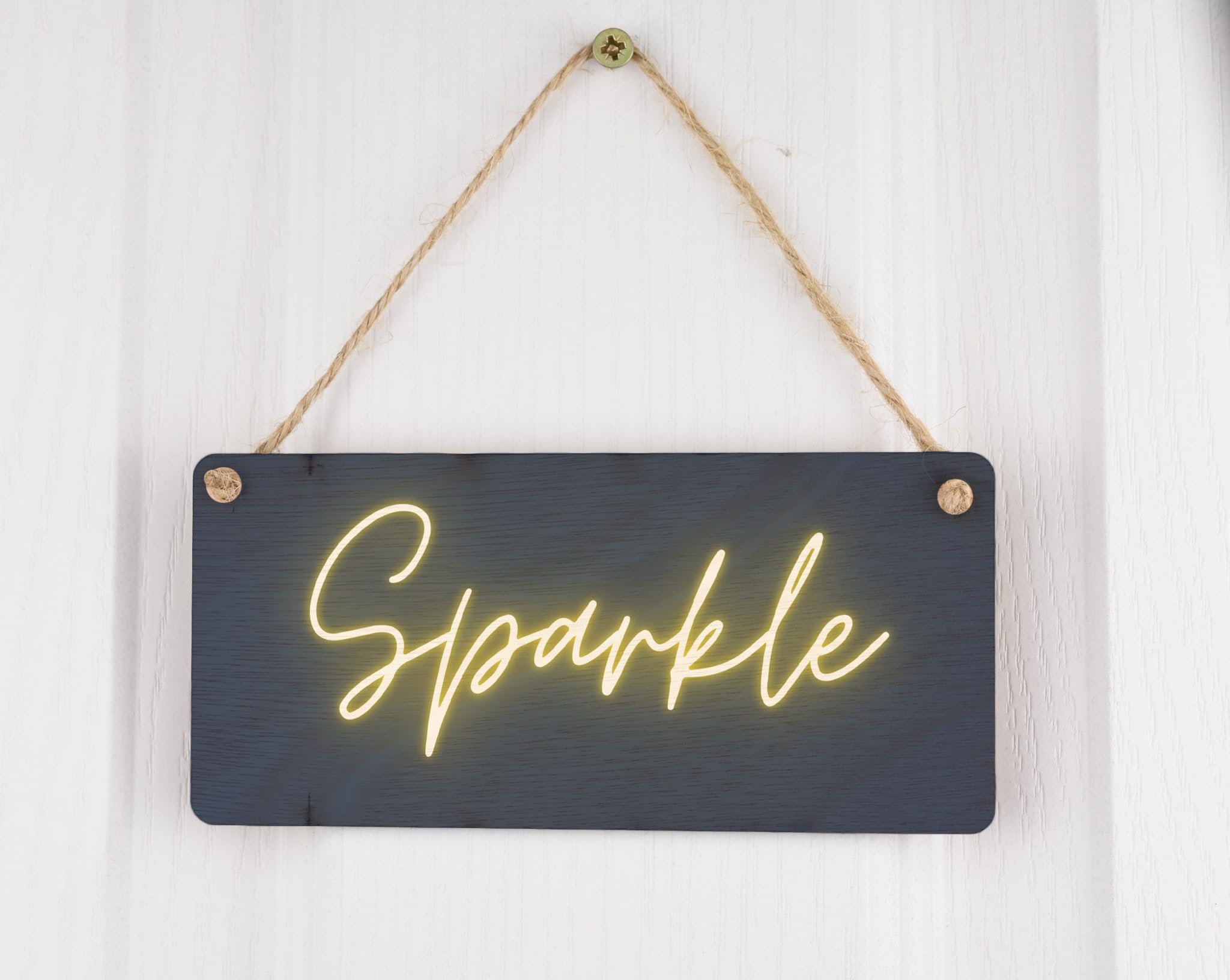 Add a touch of sparkle to your home decor with this stunning Plywood Hanging Sign - Sparkle. Designed with a modern aesthetic, this sign features a full-colour design and neon writing that reads 'Sparkle'. It is the perfect gift for Mum, Teen, Girlfriend, or Wife, and adds a vibrant touch to any party, bedroom, living room, or daughter's room. Made from quality plywood, this hanging sign is durable and long-lasting. Whether you want to uplift the ambiance of your space or surprise your loved ones with a unique gift, this sign is a must-have addition to your home.
