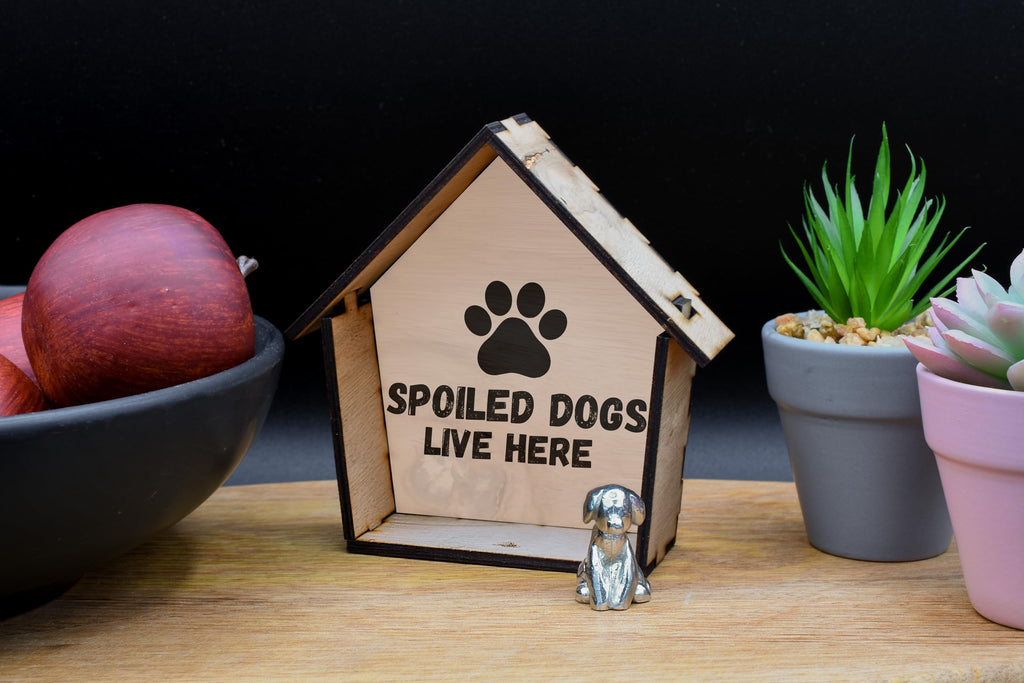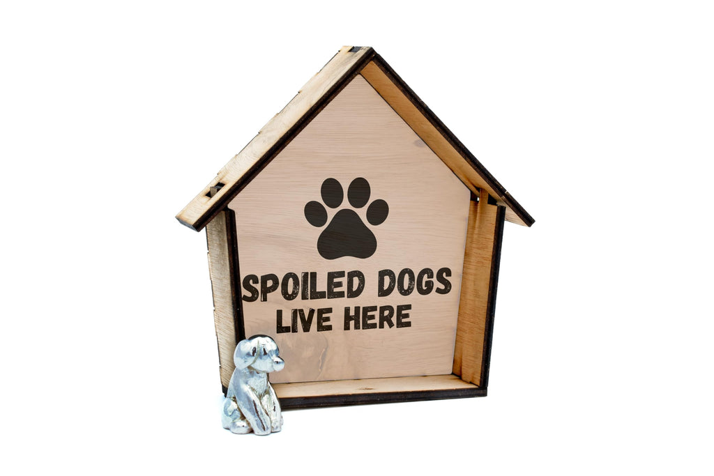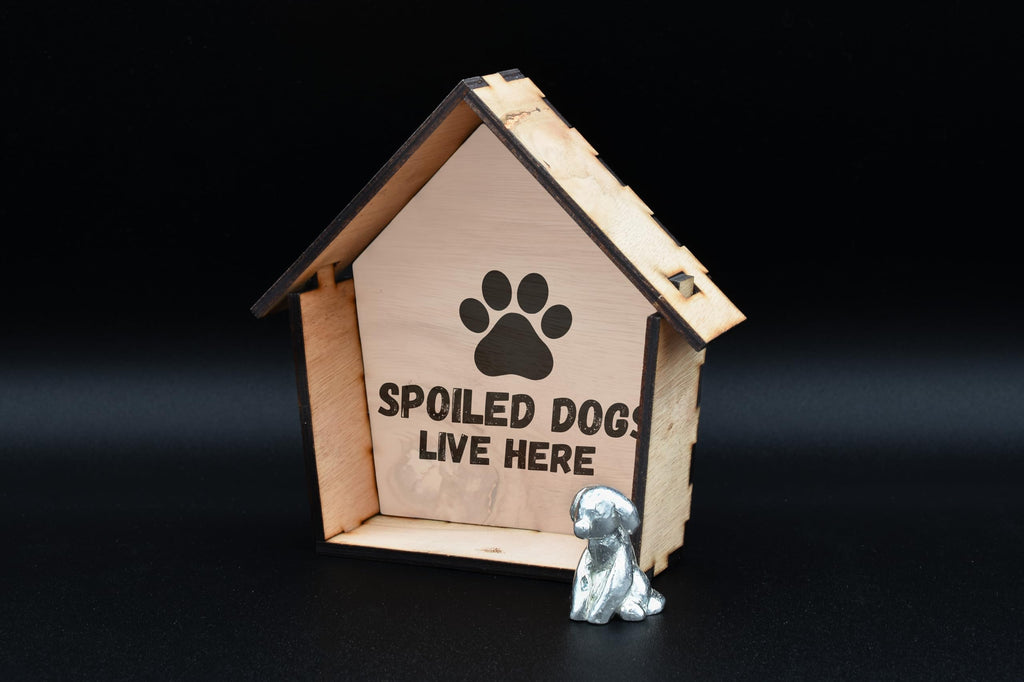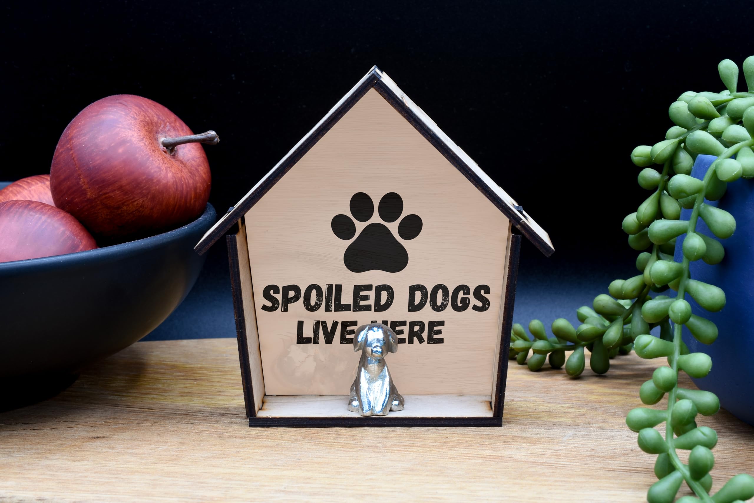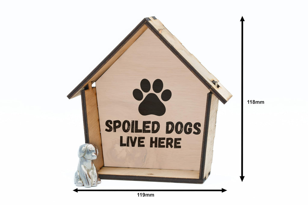 Pampered Pooches' Paradise presents the Spoiled Dogs Live Here Dog Gift, a delightful and charming addition to any dog lover's collection. Made with quality materials, this full-colour, cute and funny novelty item is perfect as a gift for Mum, Dad, dog owners, and even rescue dog owners. The Plywood Dog House Ornament and Bespoke Metal Dog Figurine showcase the love and dedication we have for our furry friends, adding warmth and character to any space. Treat yourself or someone special to this unique accessory that celebrates the joy and love of dogs.