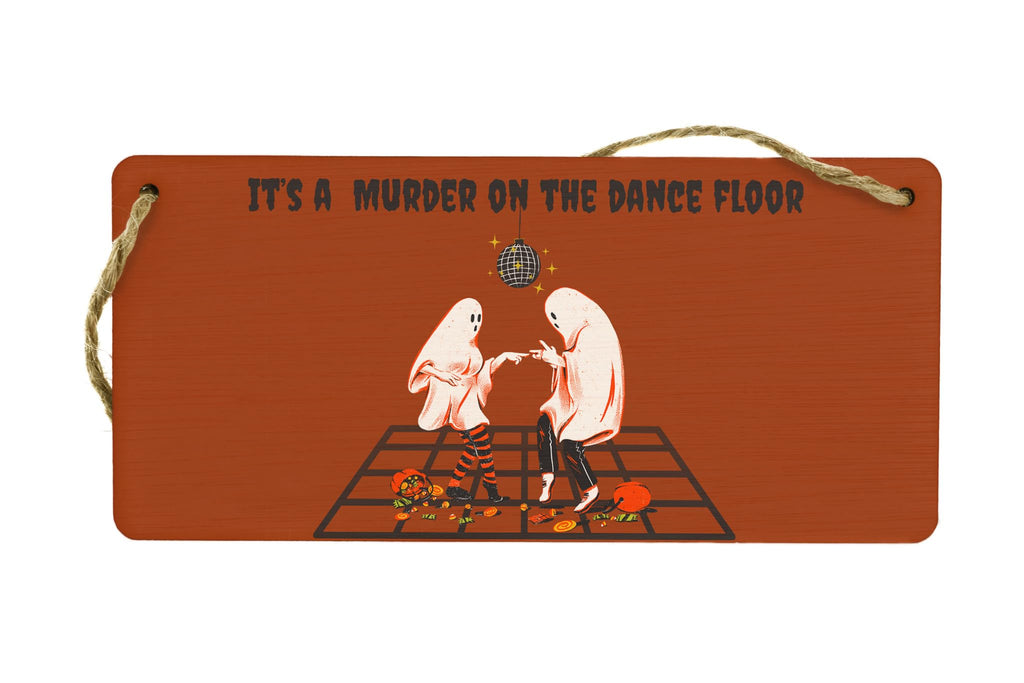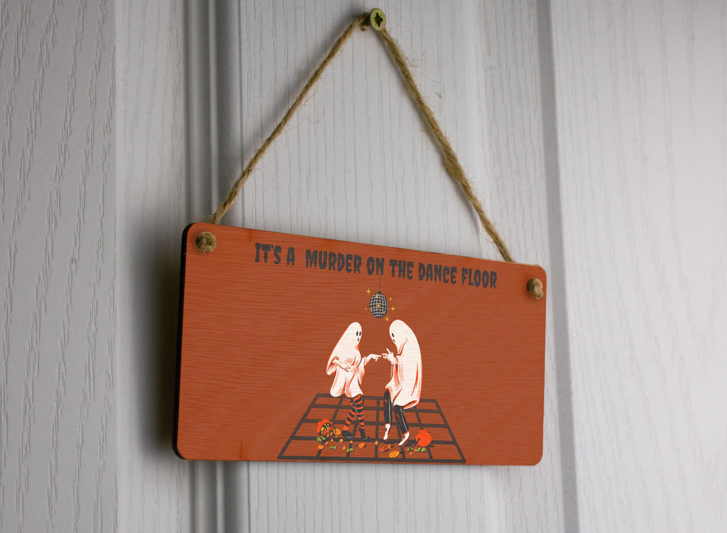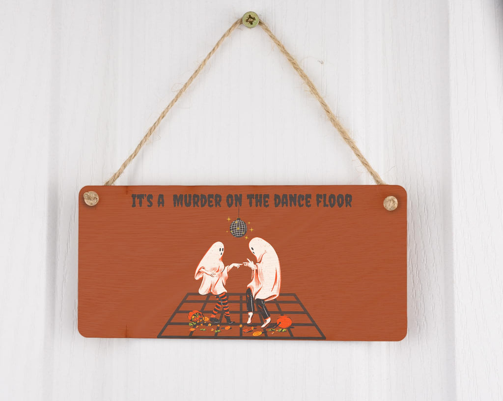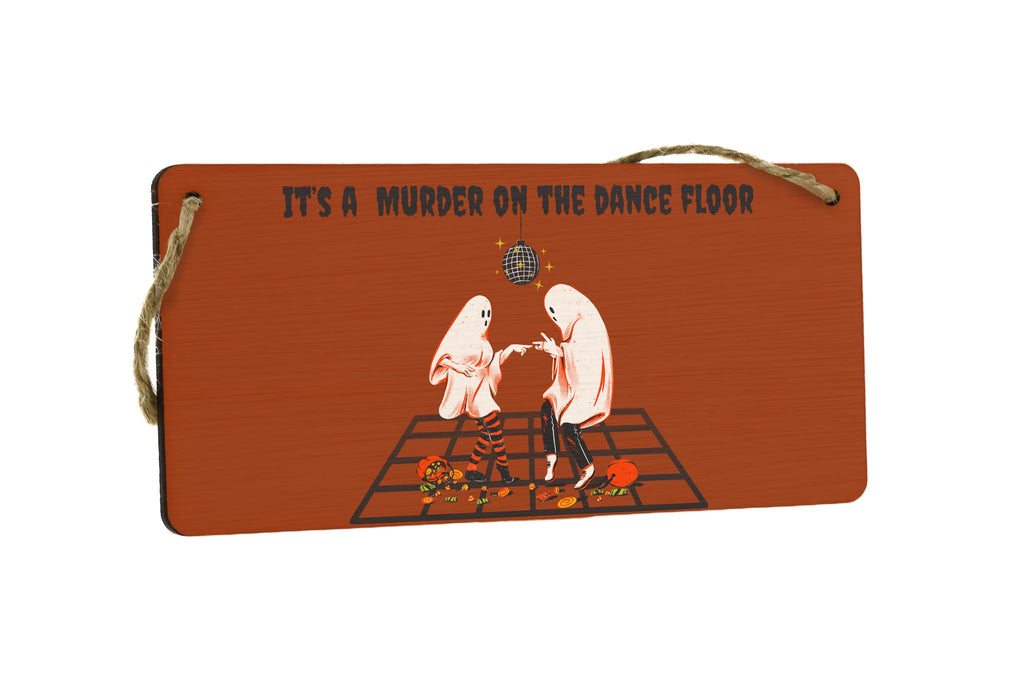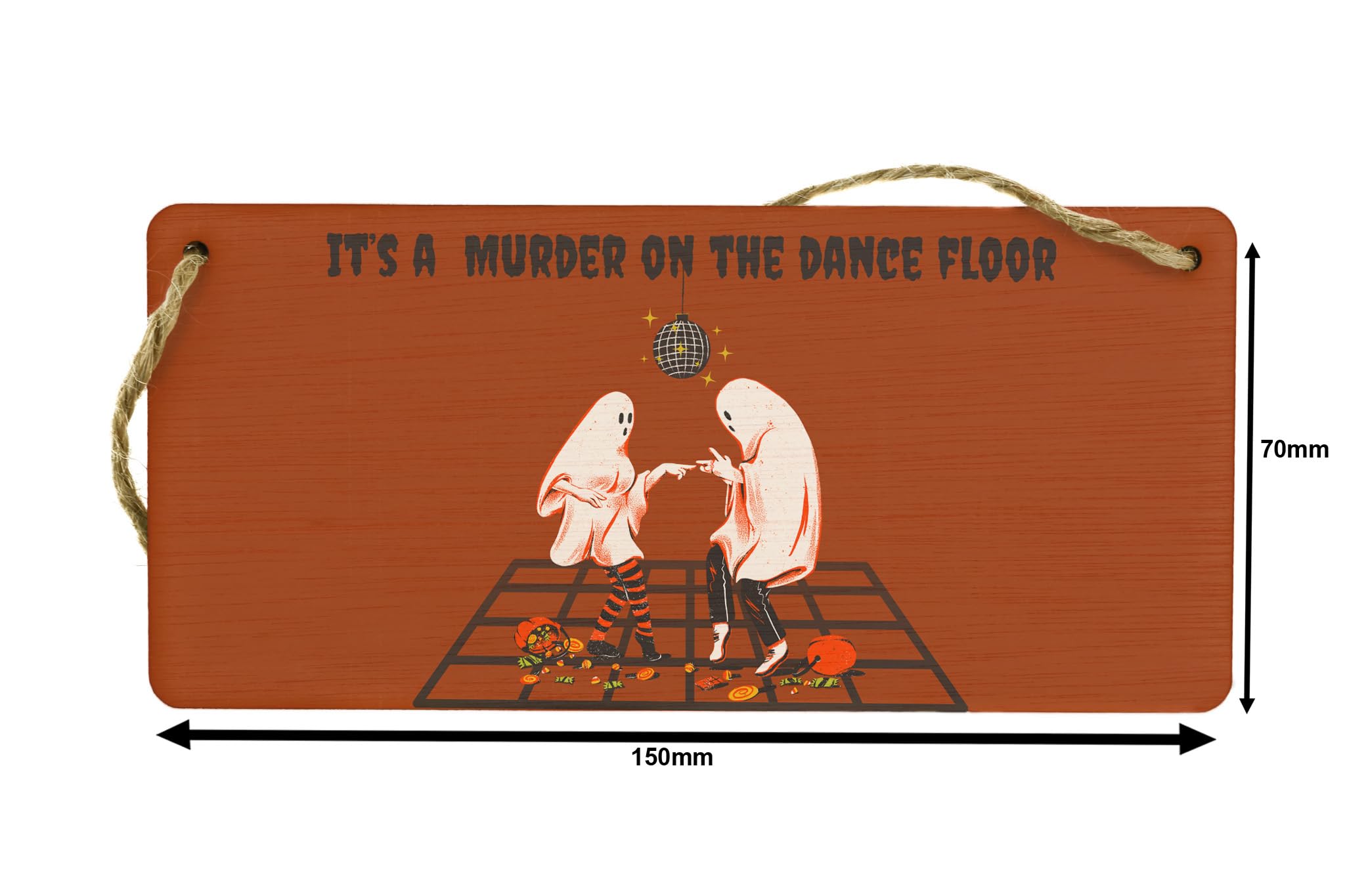 Add a spooky touch to your Halloween decor with our Plywood Hanging Halloween Sign. This full-colour sign features a ghost design and reads 'Murder on the Dance Floor', making it a funny and eye-catching addition to any Halloween party or haunted house. The sign is made of plywood and can easily be hung on doors, walls, or anywhere else you want to add a touch of spookiness. It's the perfect Halloween decoration for anyone looking to create a spooky atmosphere and entertain their guests.