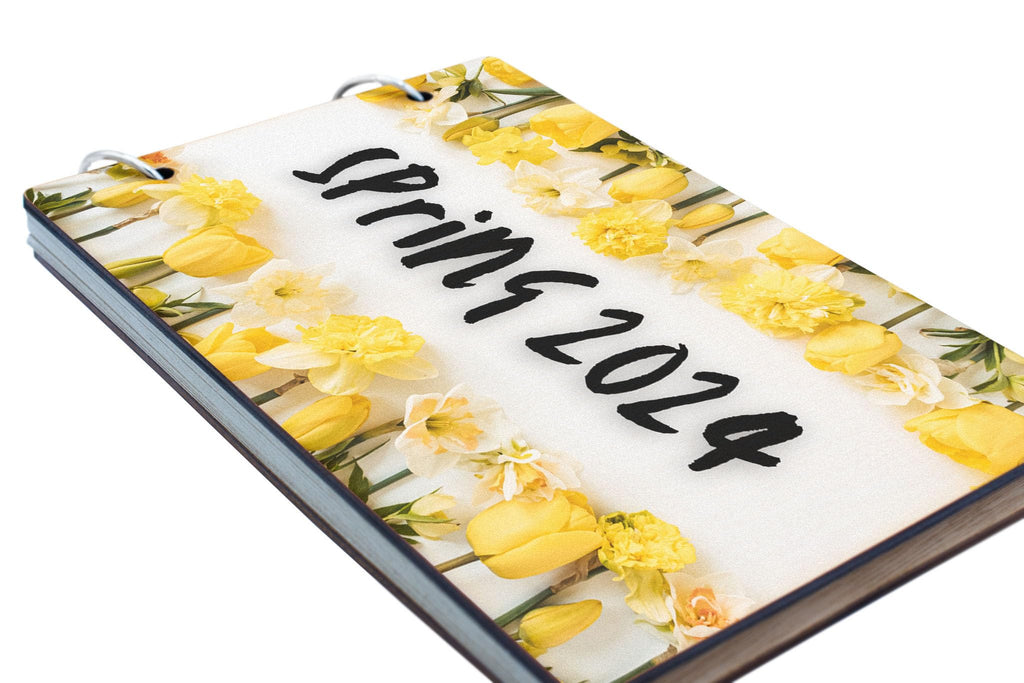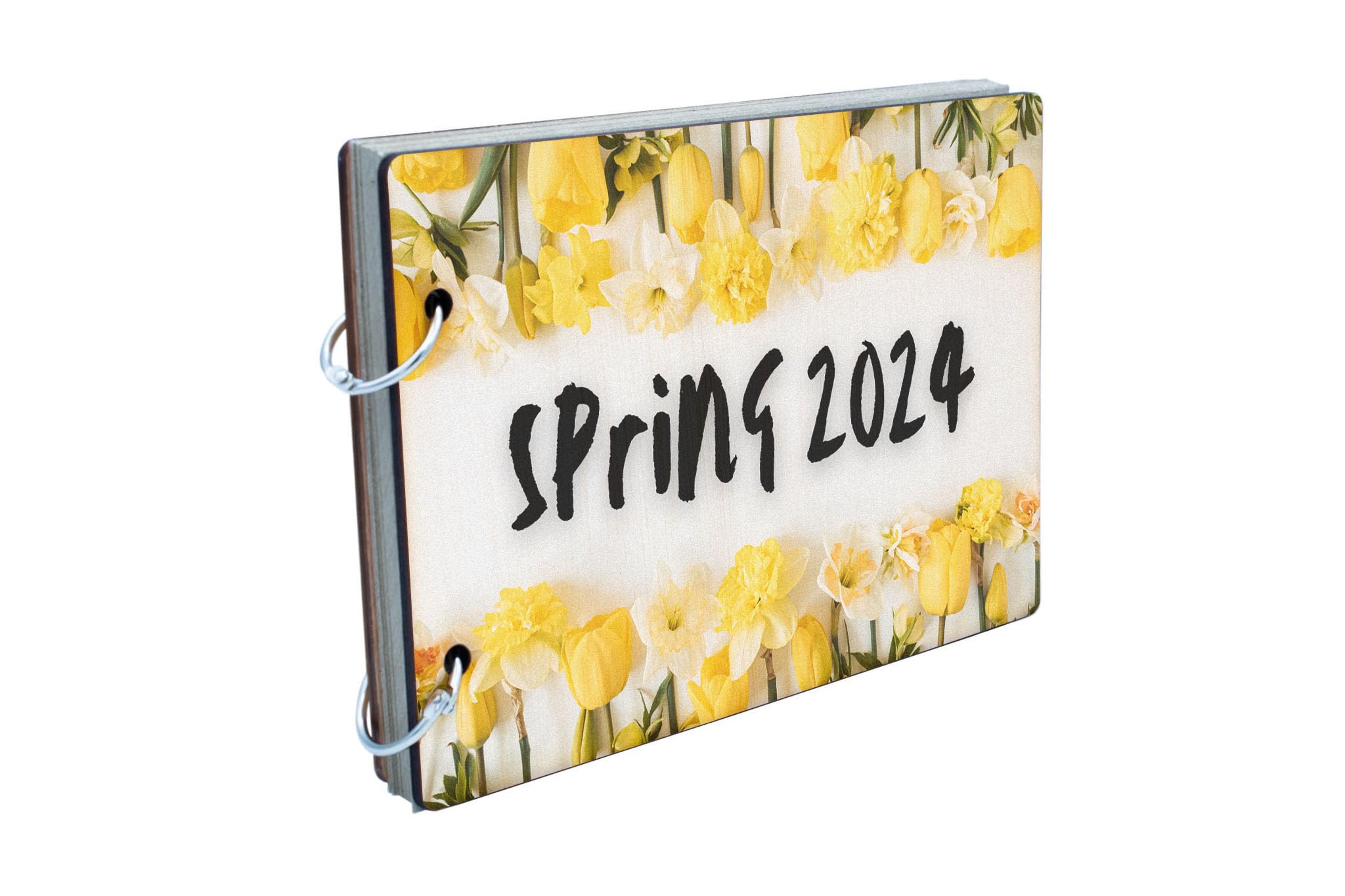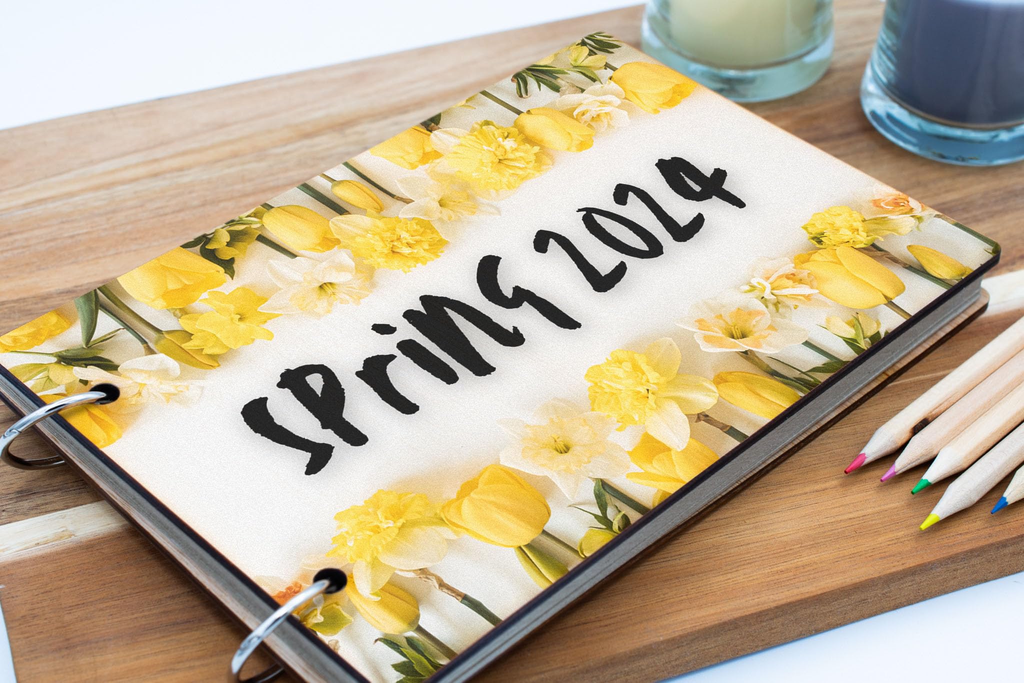 Capture the essence of Spring 2024 with our beautiful 'Spring Blooms' Memory Album. This stylish album features a floral cover with a wooden cover reading 'Spring 2024', making it the perfect seasonal keepsake for all your springtime events and memories. The nature-inspired botanical theme throughout the album includes yellow flowers and flower illustrations, creating a delightful backdrop for your photos and mementos. With 25 recycled pages, this decorative album is ideal for creating a yearly scrapbook filled with cherished moments. The full-colour front cover showcases a bright summery image of daffodils and tulips, setting the tone for your springtime memories.