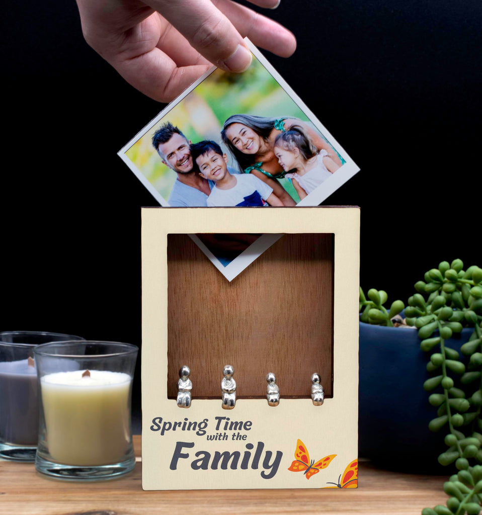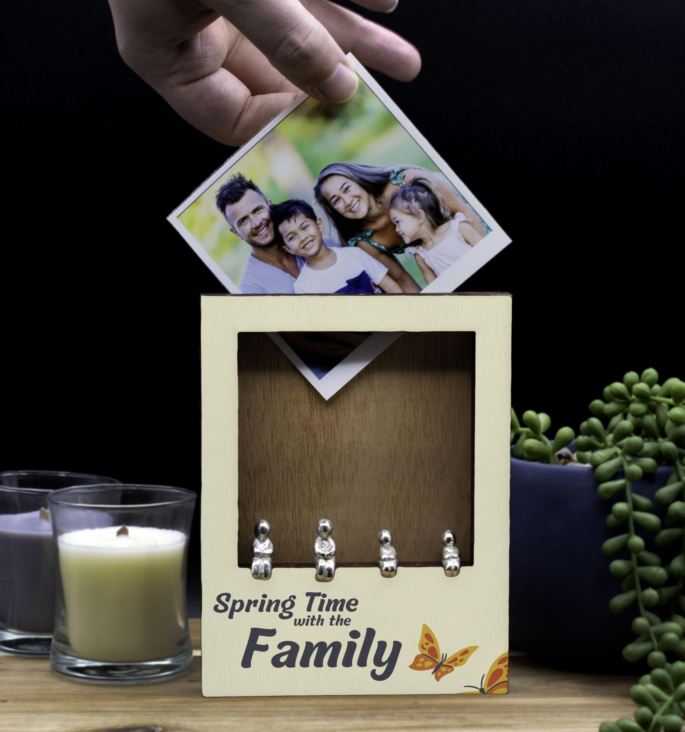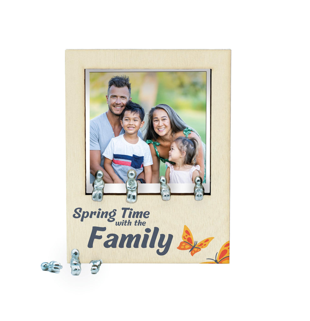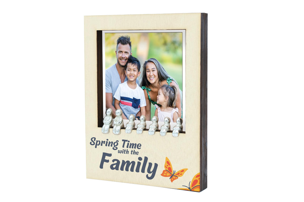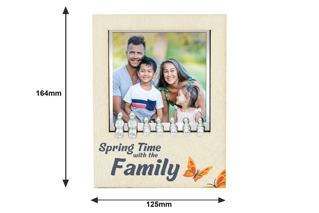 Bring the colours and cheer of the spring season into your home with our Springtime Family Memories Wooden Photo Frame with Butterfly Design. This charming rustic home decor item is the perfect way to display your family photos in a nature-inspired and sentimental way. The handcrafted laser cut plywood photo frame features a delightful butterfly design and floral accents, adding a touch of warmth and joy to any room. The UV printed design reads 'spring time with the family', making it a perfect keepsake holder for holiday memories. This full colour printed frame comes with cute tin figurines included, adding an extra element of whimsy to your decor.
