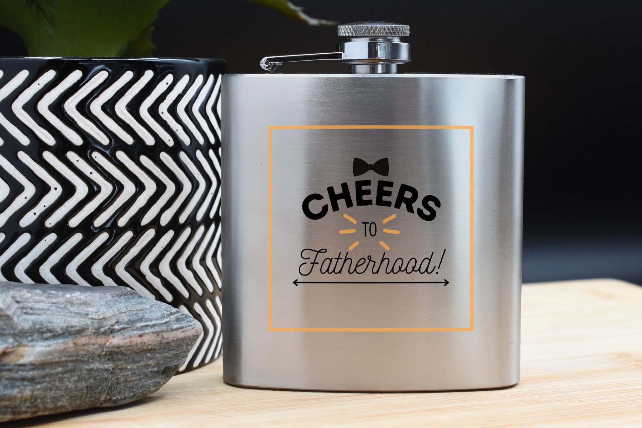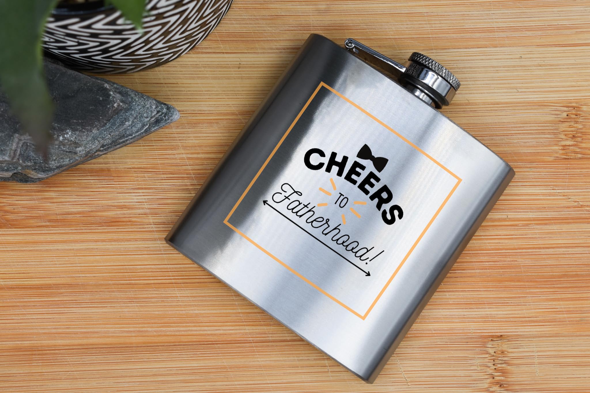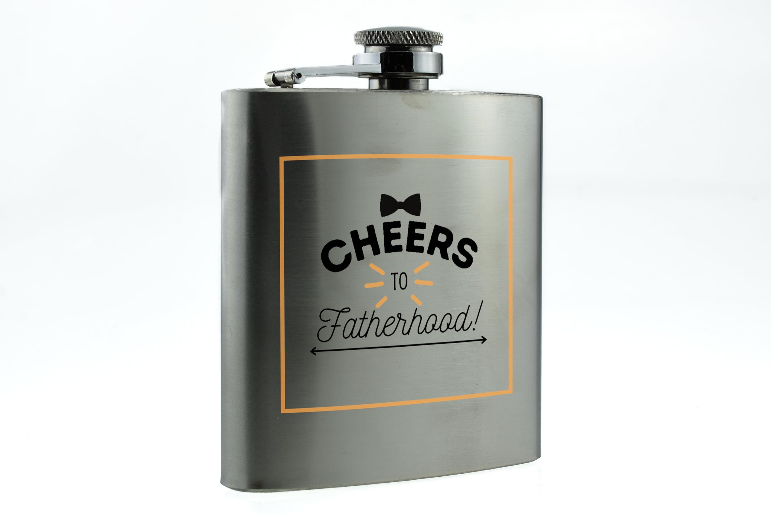 Introducing our Stainless Steel Alcohol Flask - Cheers to Fatherhood! This sleek and stylish stainless steel flask is the perfect gift for any new dad. The flask features a vibrant full colour design that reads 'Cheers to Fatherhood', making it a great Fathers Day gift or present for any special occasion. Made from quality stainless steel, this hip flask is durable and will keep your favourite spirits perfectly chilled. Whether you prefer whiskey, vodka or rum, this alcohol flask is a must-have accessory for any bar or man cave. Make a toast to the joys of fatherhood with this unique and thoughtful gift for men and fathers. Order yours today and raise a glass to the new dad in your life!