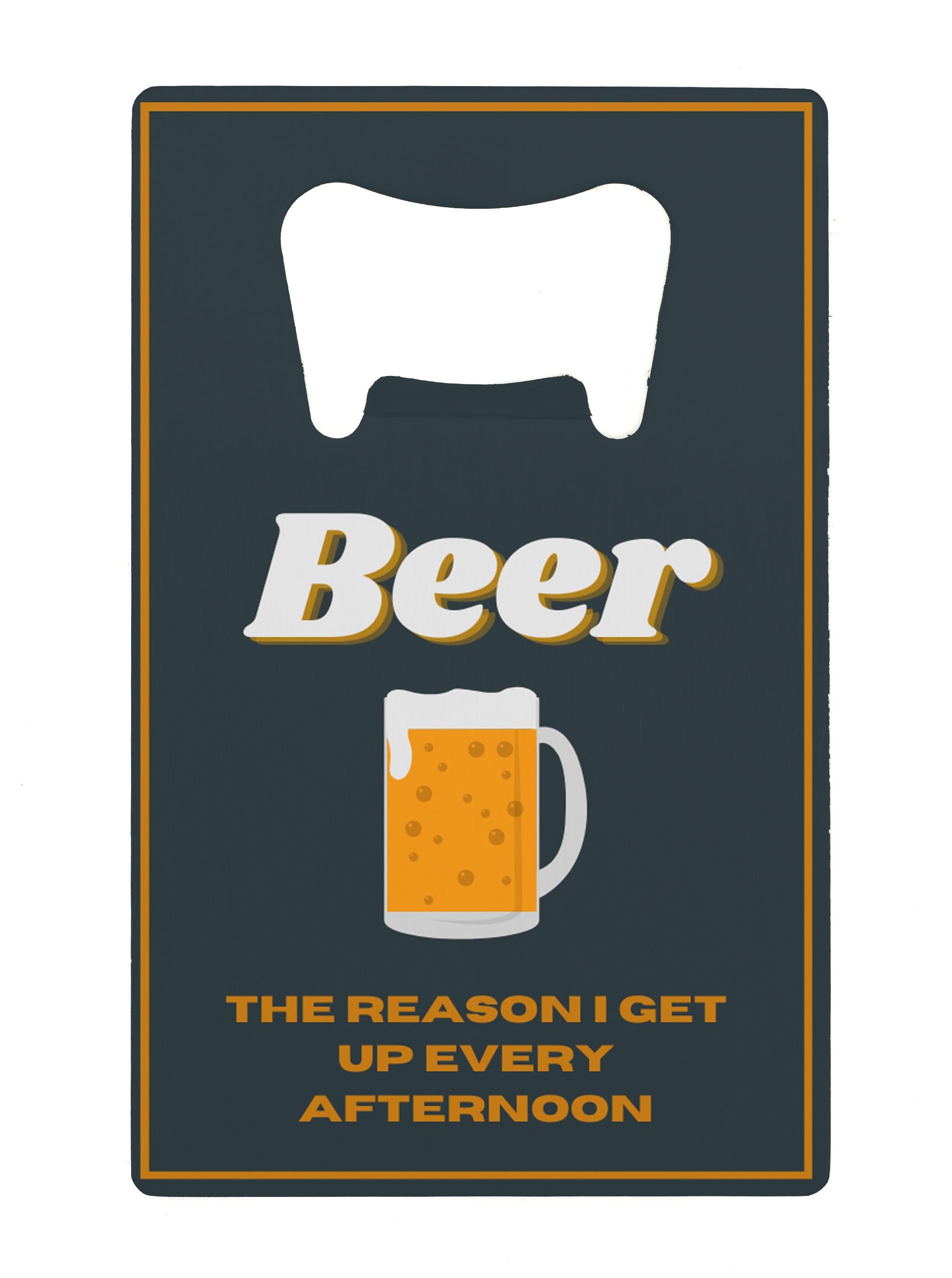Introducing the Stainless Steel Full Colour Beer Opener - the perfect funny novelty gift for Dad or Grandad. This quality bottle opener is made from durable stainless steel, ensuring it will last for years to come. With its full colour design, it adds a touch of fun and personality to any bar or kitchen. The compact size also makes it perfect to keep in your wallet, so you can always have it on hand when you need it. Whether it's Father's Day, Christmas, or a birthday, this beer opener makes an ideal present that is sure to put a smile on their face. Order yours today and discover why 'I Get Up Every Afternoon!' with a refreshing beer in hand.