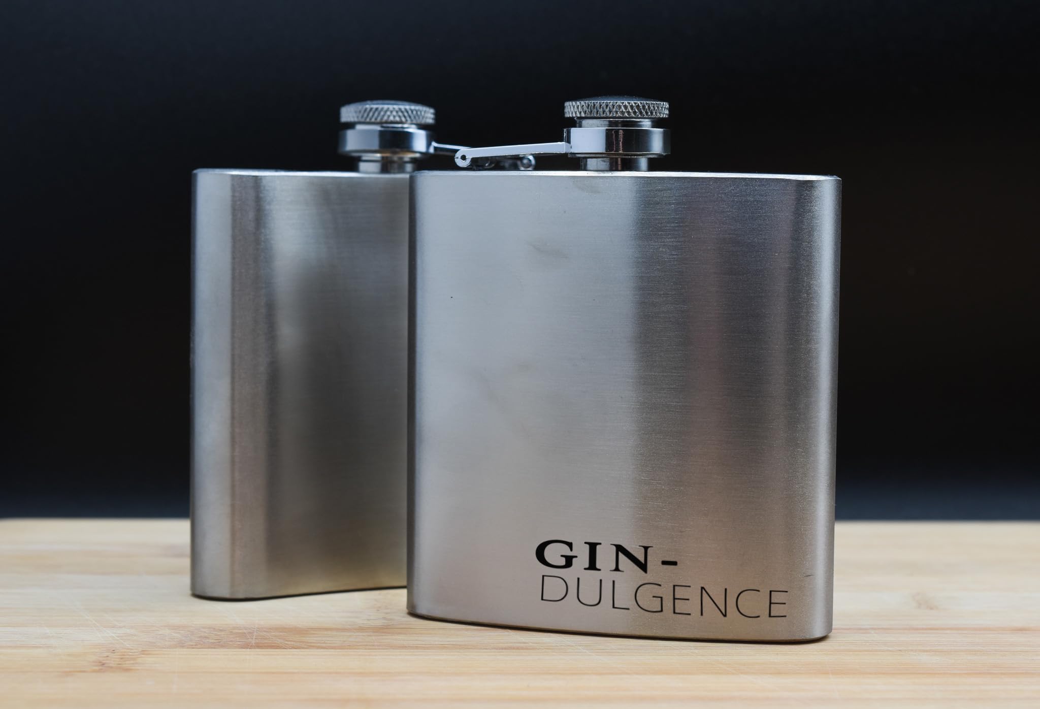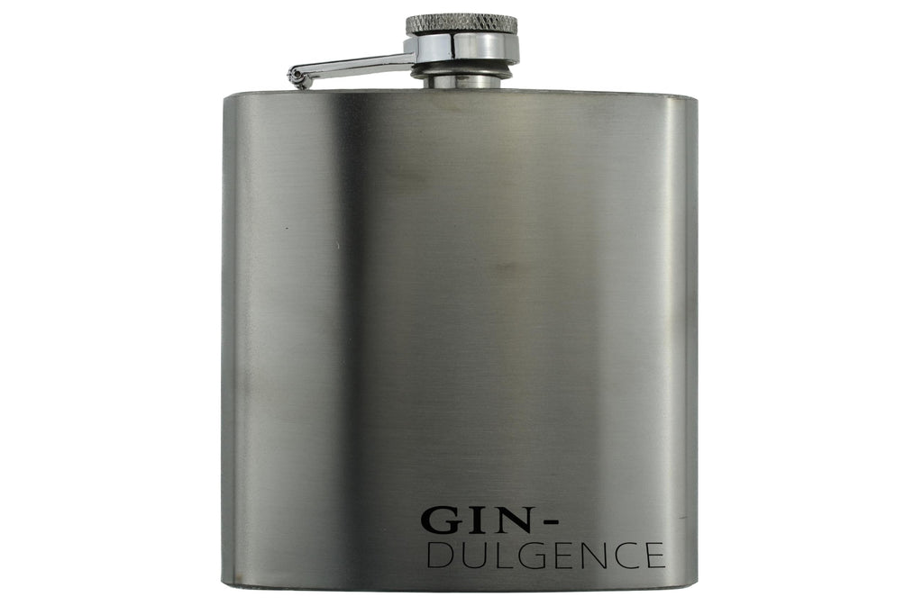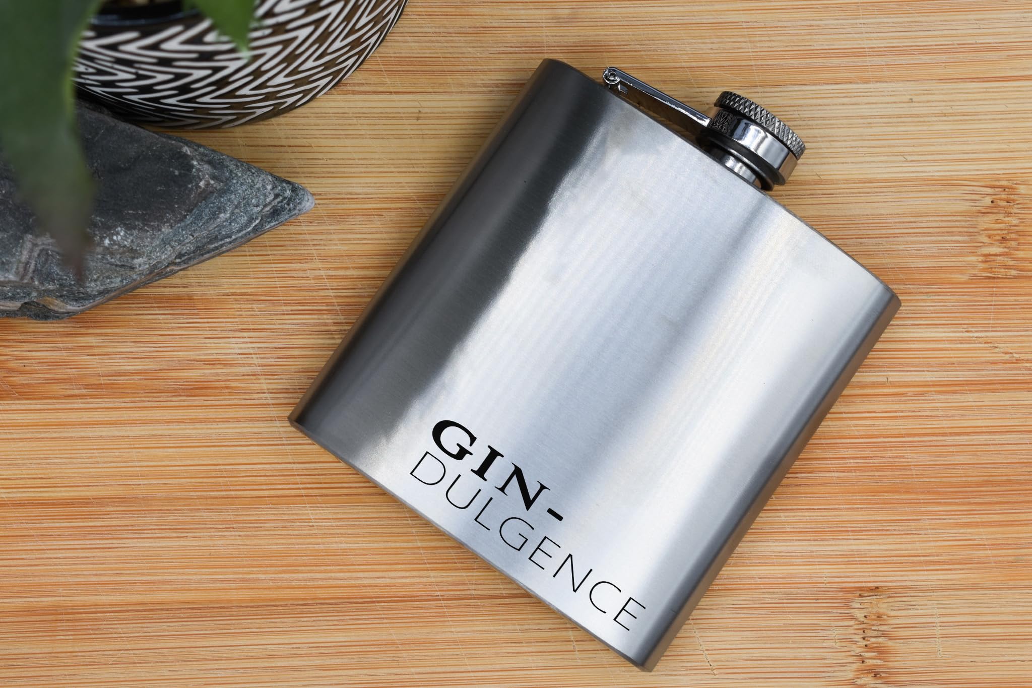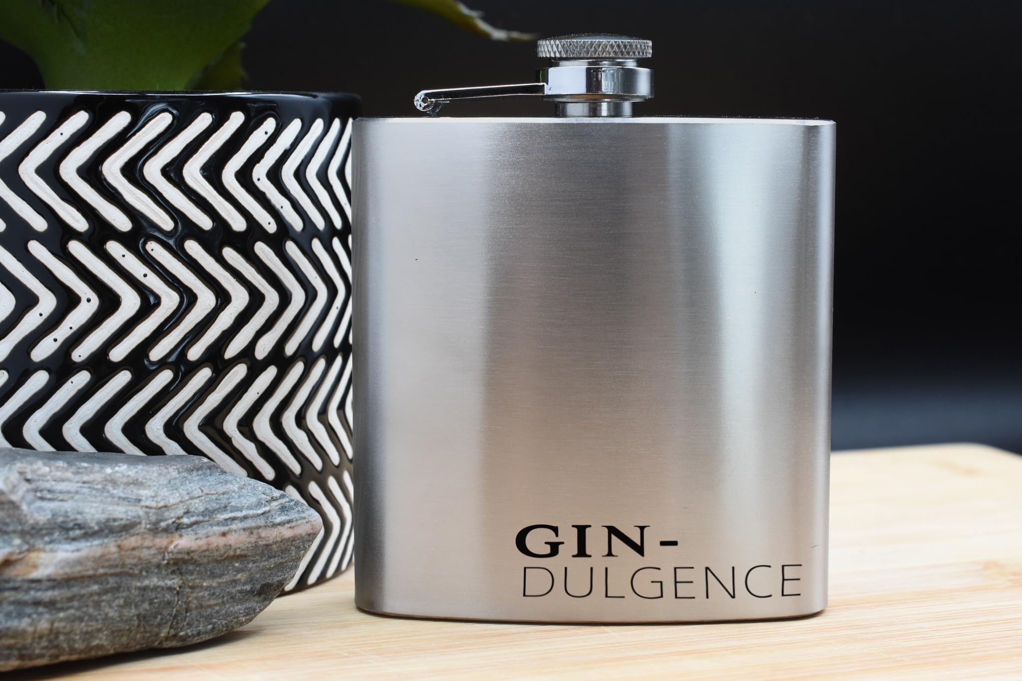 Stainless Steel Funny Hip Flask - Gin-Dulgence Design - Ideal Gin Lover Gift - Full Colour - Perfect Christmas, Birthday, or Secret Santa Present for Her
