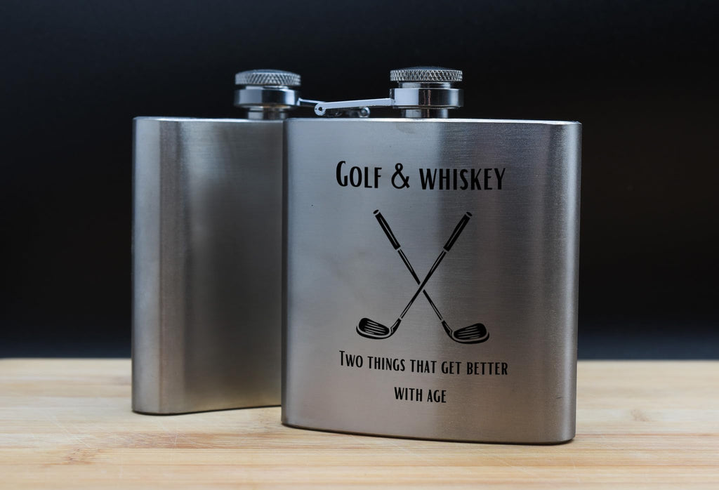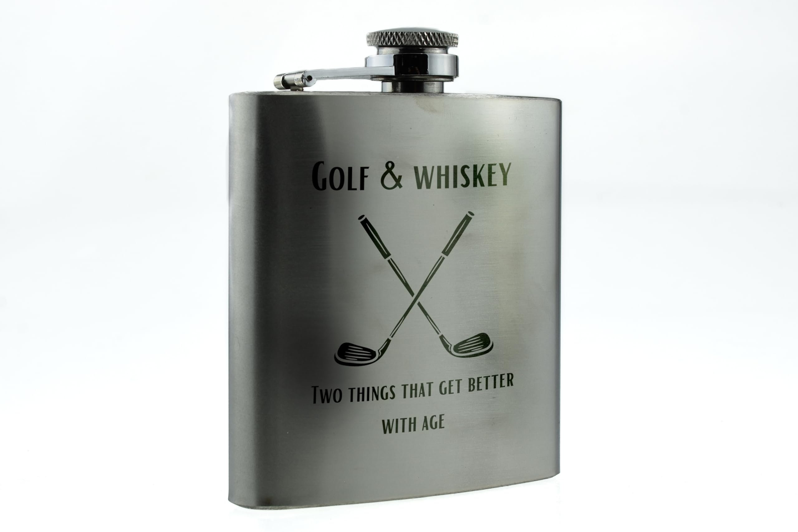 - Engraved with the message 'Golf and Whiskey: Two Things That Get Better with Age'