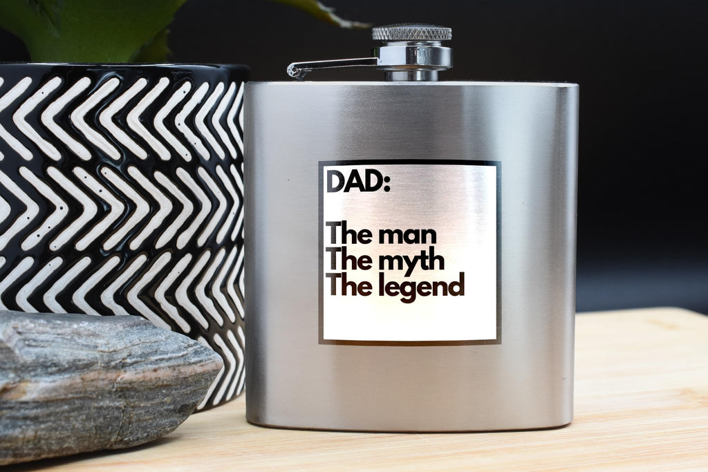 This Stainless Steel Hip Flask is the perfect gift for any dad, grandad, or father figure in your life. Made from quality stainless steel, this flask is designed to last and will keep your favourite whisky, vodka, or rum at the perfect temperature. The flask features a sleek and stylish design, with the phrase 'Dad: The Man, The Myth, The Legend' on the front, making it a sentimental and thoughtful gift. It is an ideal present for Father's Day, birthdays, Christmas, or any special occasion. Surprise your dad with this unique and meaningful gift that he will cherish for years to come.