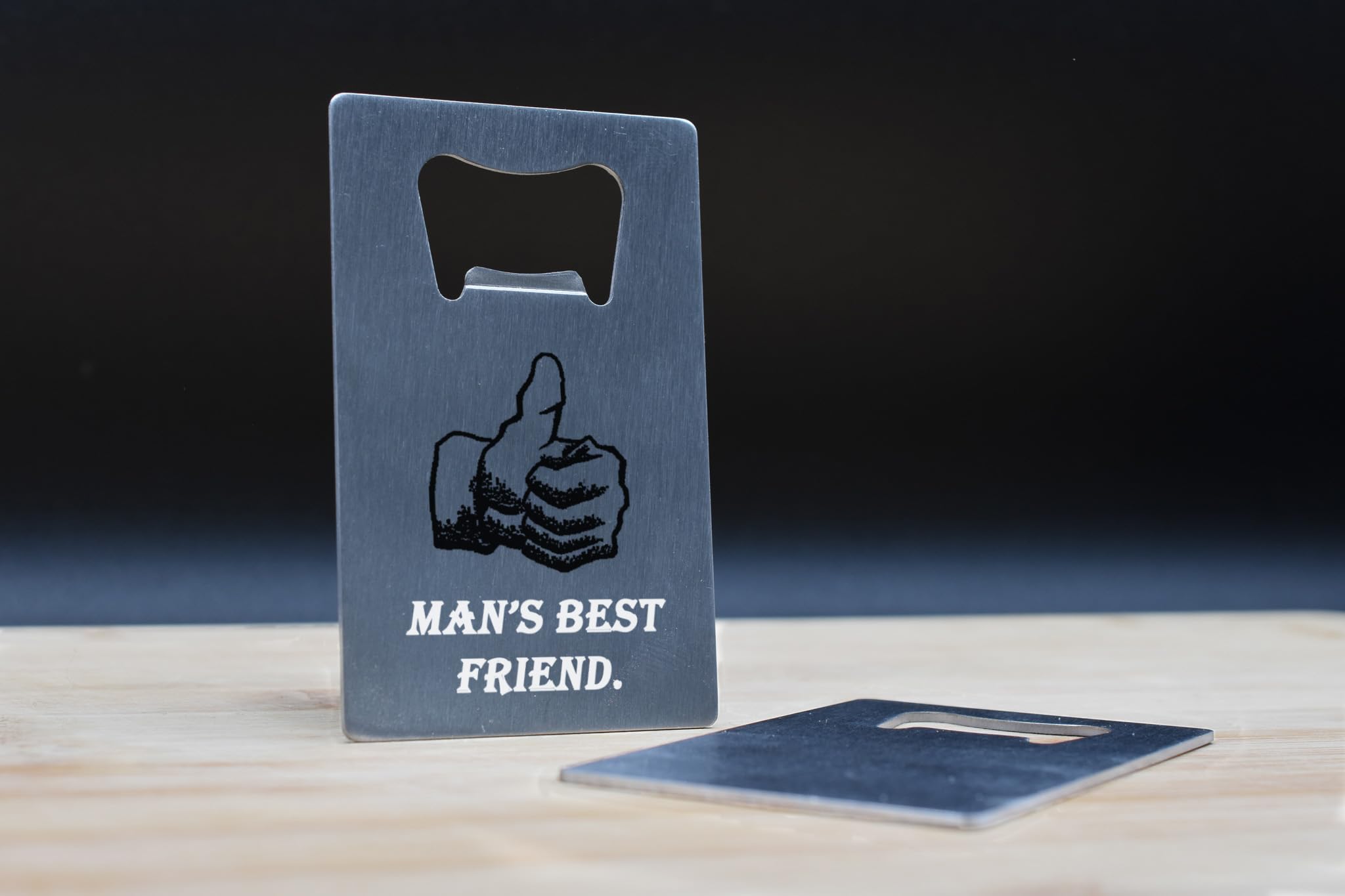 Introducing our Stainless Steel Wallet Bottle Opener, a compact and convenient accessory for any kitchen or bar. Made from quality stainless steel, this bottle opener is durable and built to last. Its card size design allows you to easily tuck it into your wallet, ensuring you always have a bottle opener on hand. With the phrase 'Man's Best Friend' elegantly engraved on it, this bottle opener adds a touch of charm to your drinking experience. It also makes a thoughtful and practical gift for men and fathers. Whether you're hosting a party or enjoying a quiet drink at home, our Stainless Steel Wallet Bottle Opener is the perfect tool to open your favourite beer bottles with ease.