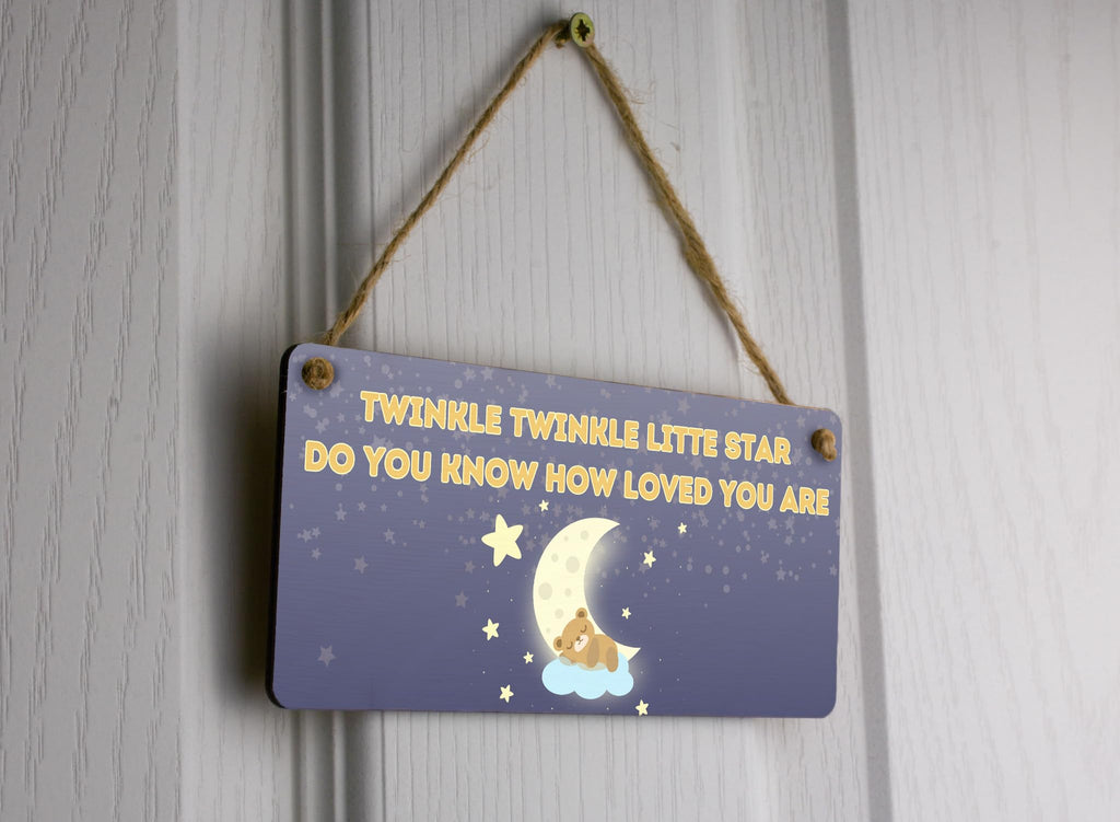Add a touch of beauty and love to your baby's room with our Starry Night Design Plywood Hanging Sign. This adorable sign is the perfect gift for mums who want to remind their little ones just how loved they are. Featuring a stunning Starry Night design, this sign will create a whimsical and enchanting atmosphere in any baby's room. Made from quality plywood, it is durable and long-lasting. Hang it on the wall or the door and let it bring joy and love to your baby's space. It is an ideal baby gift for mums who want to create a warm and loving atmosphere for their little one.