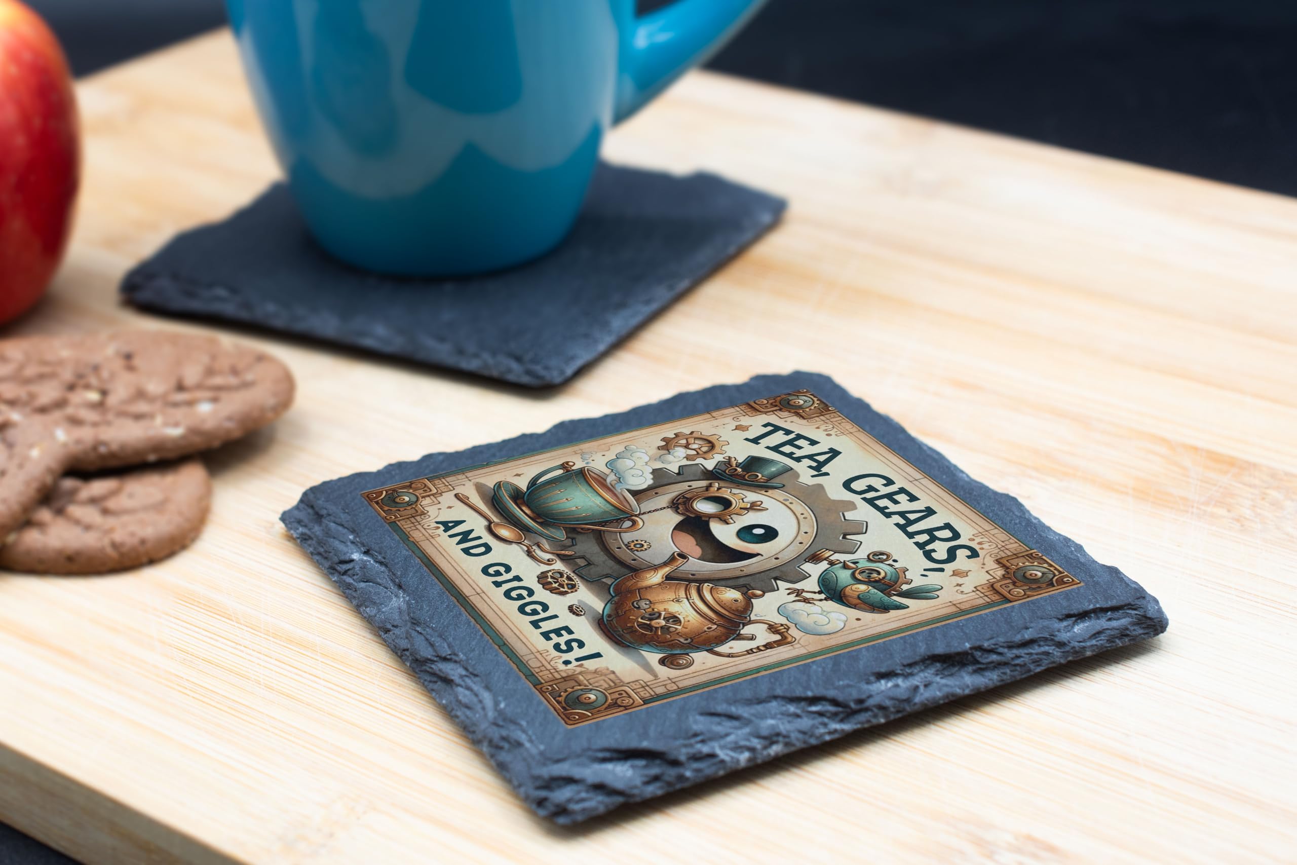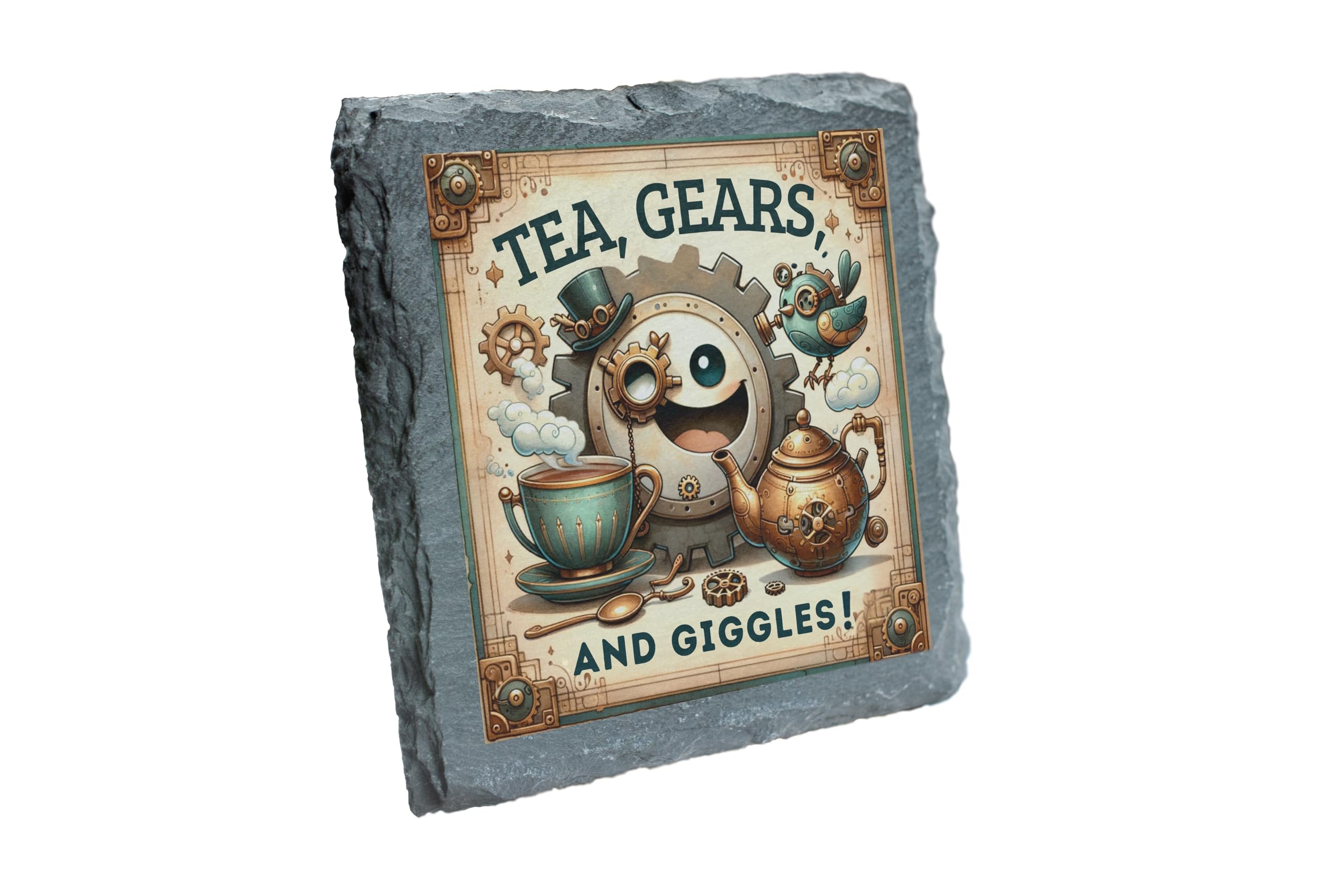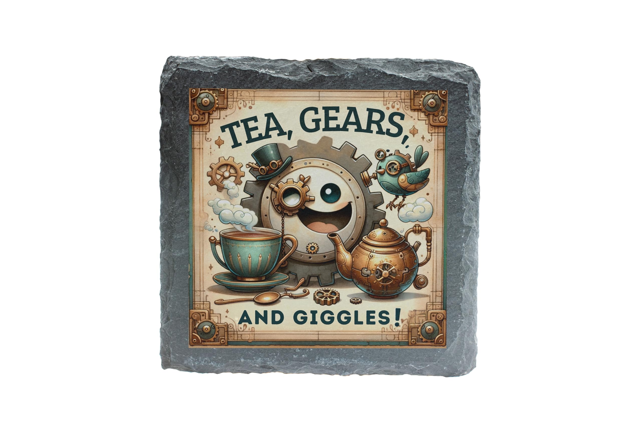 Add a touch of playful industrial charm to your space with the Steampunk Slate Coaster, "Tea, Gears, and Giggles." This intricately designed coaster captures the whimsy of steampunk culture, combining vintage teapots, gears, and lighthearted artistry. Crafted from premium slate, this coaster is as durable as it is delightful, providing heat resistance and surface protection. Whether you?re sipping tea or enjoying a steampunk-inspired gathering, this coaster is the perfect blend of functionality and decoration. It also makes a unique gift for fans of creative designs and steampunk aesthetics. Bring joy, style, and giggles to your home today!