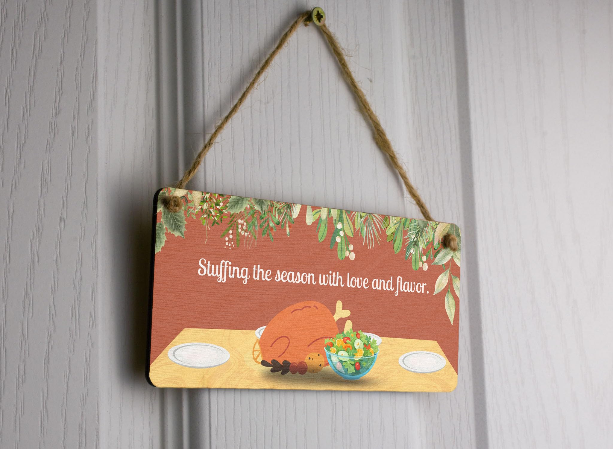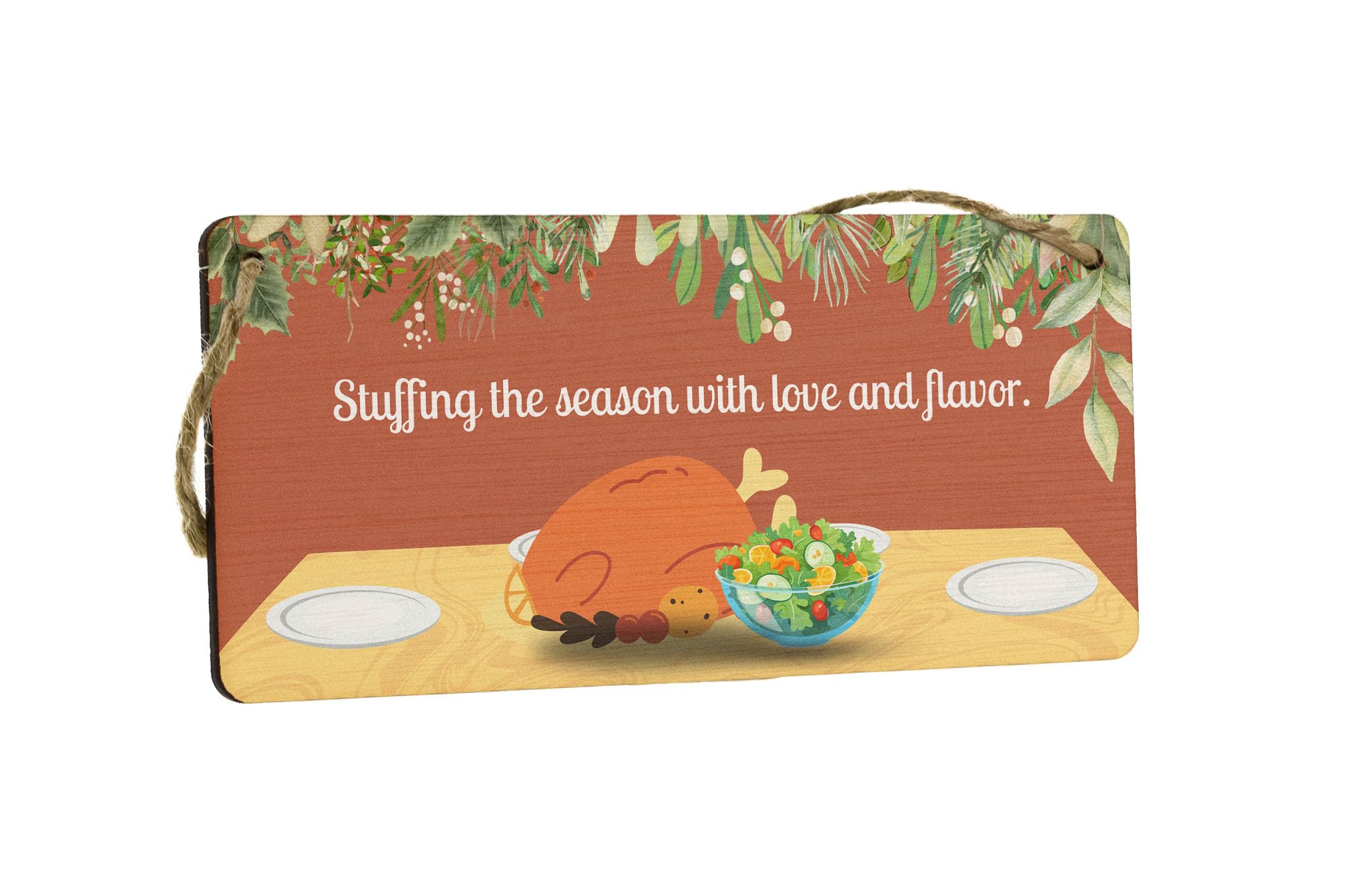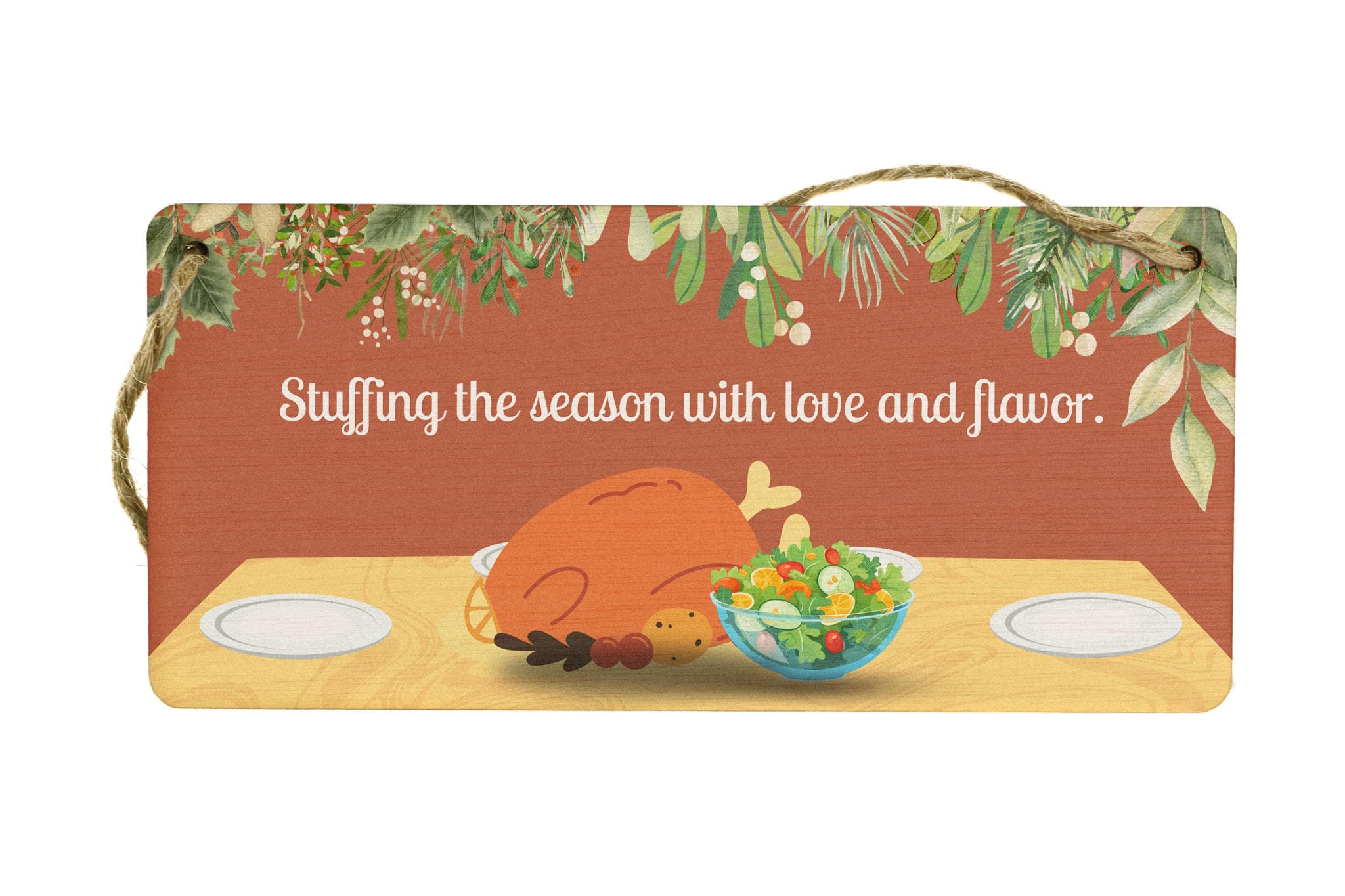 - Reads 'Stuffing the Season with Love and Flavour' to add a touch of humour to your holiday decor